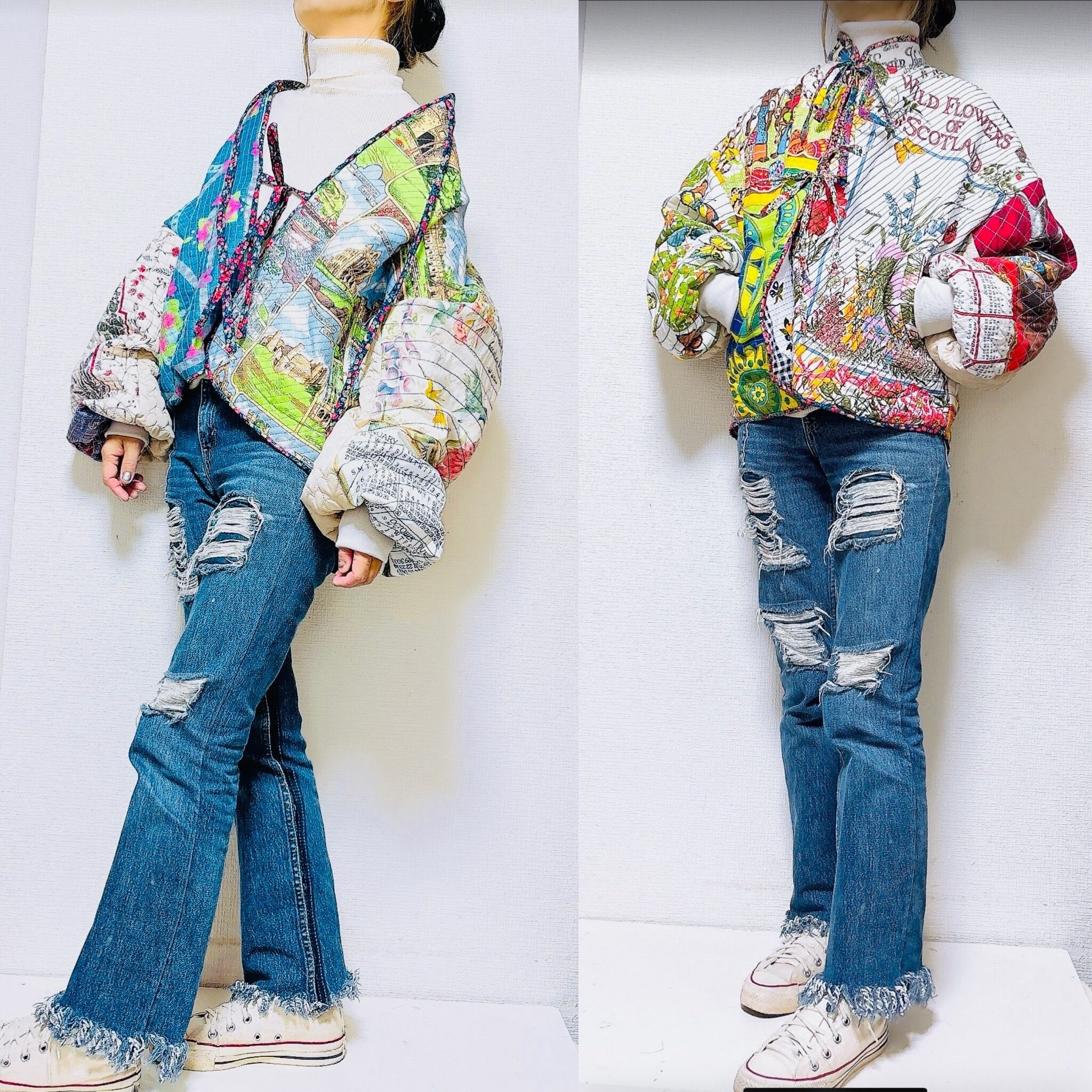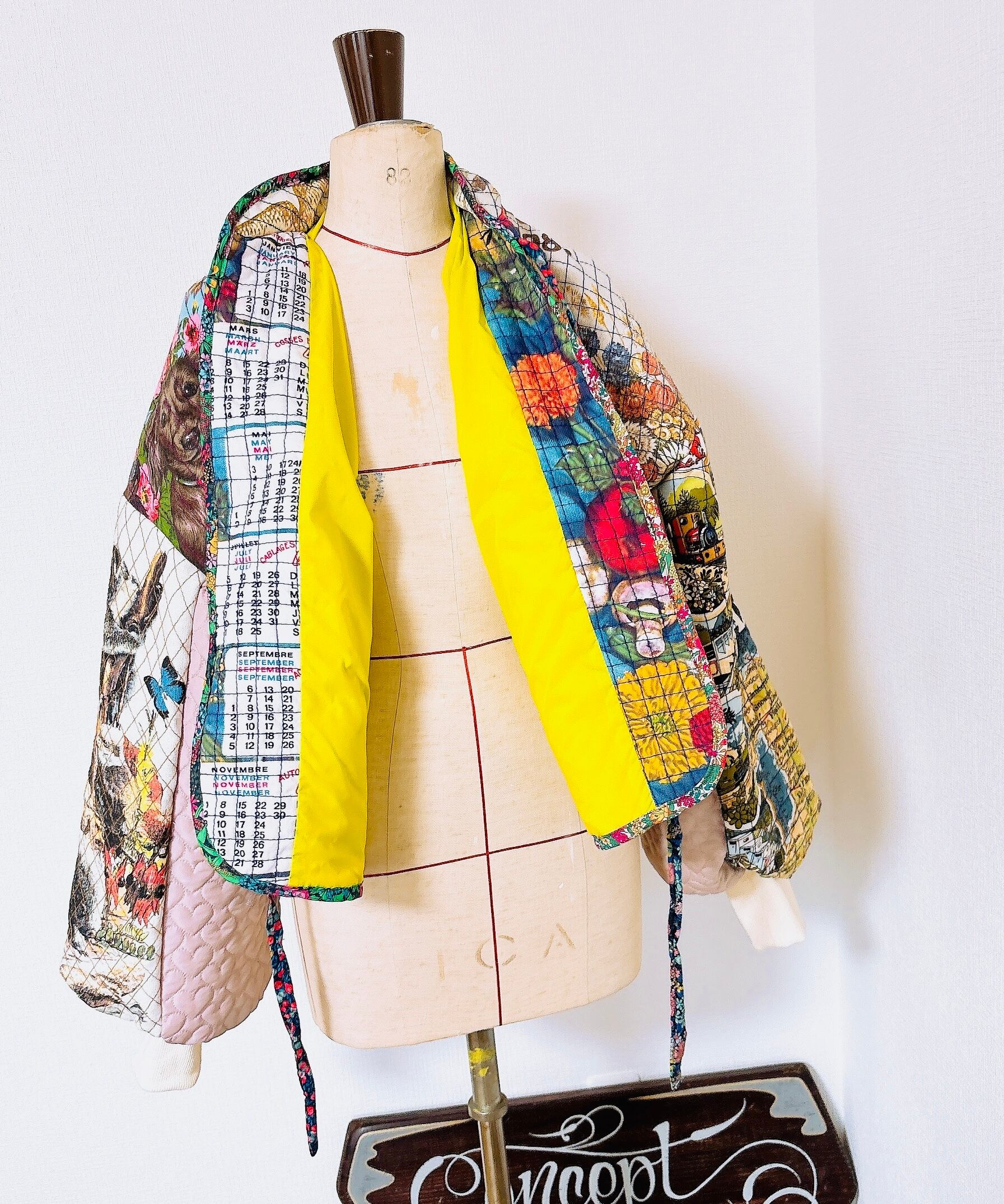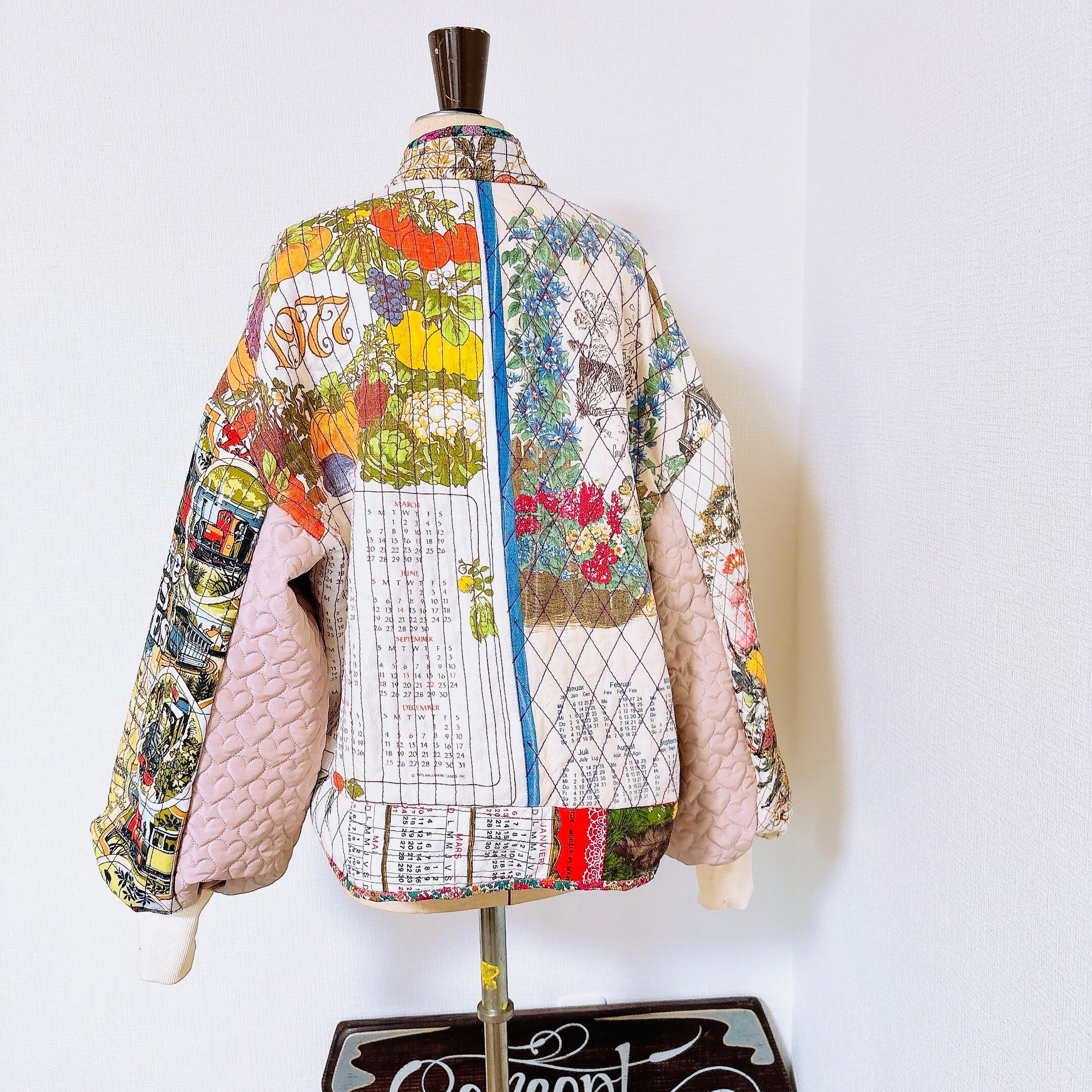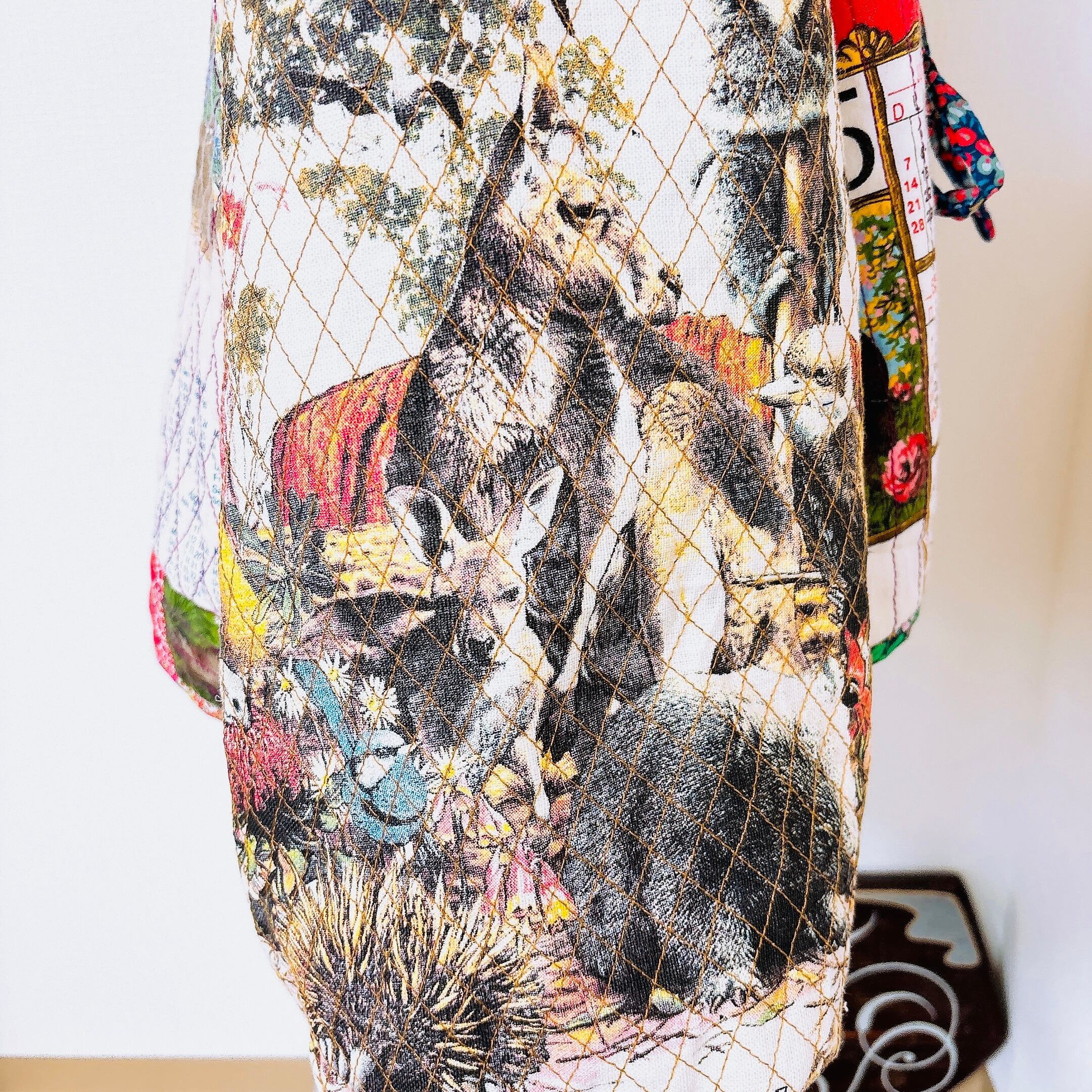 珍しいヴィンテージタペストリーをキルティングにして、