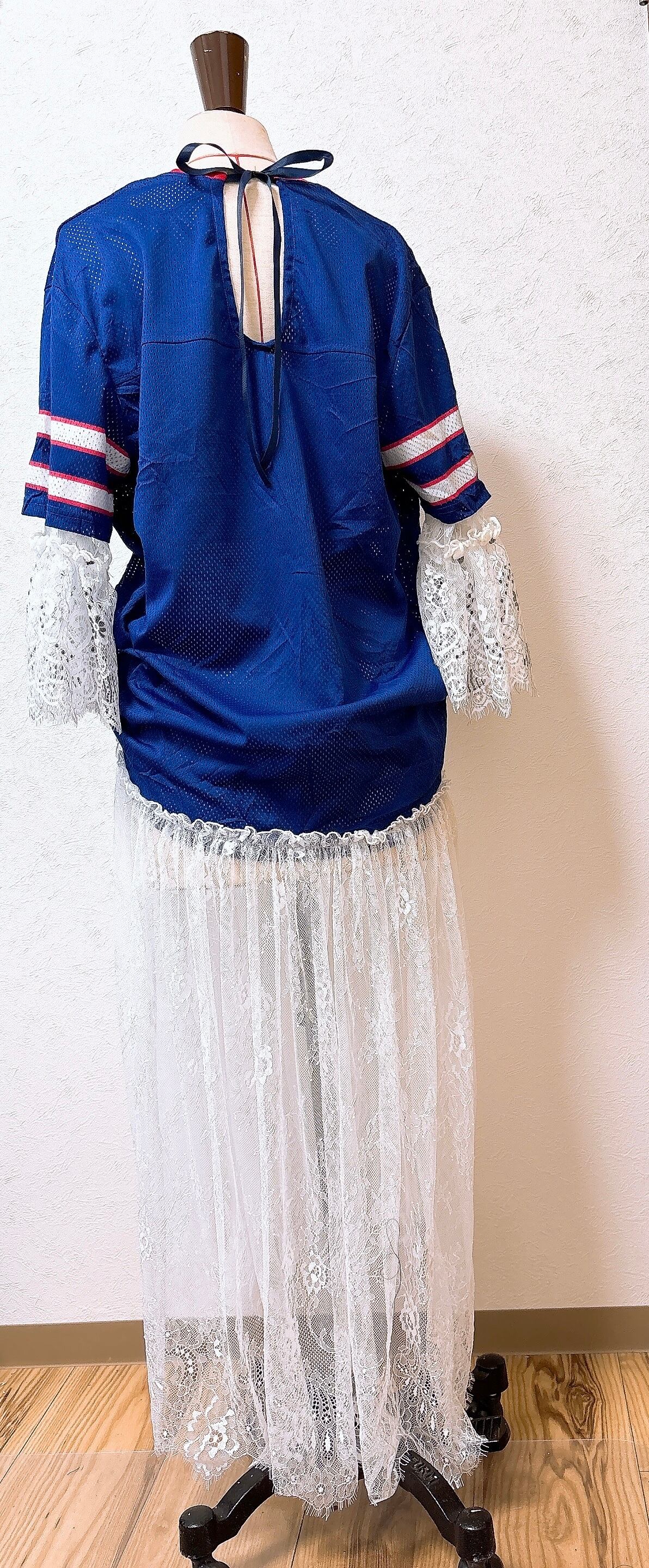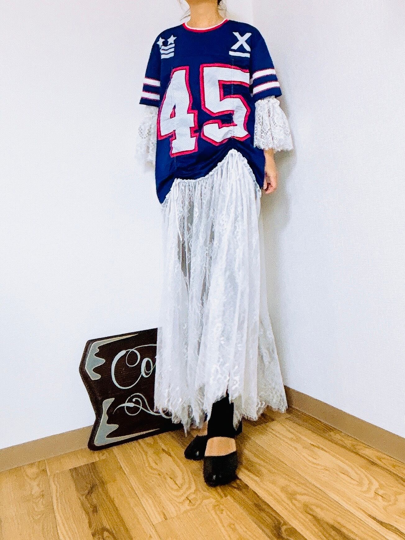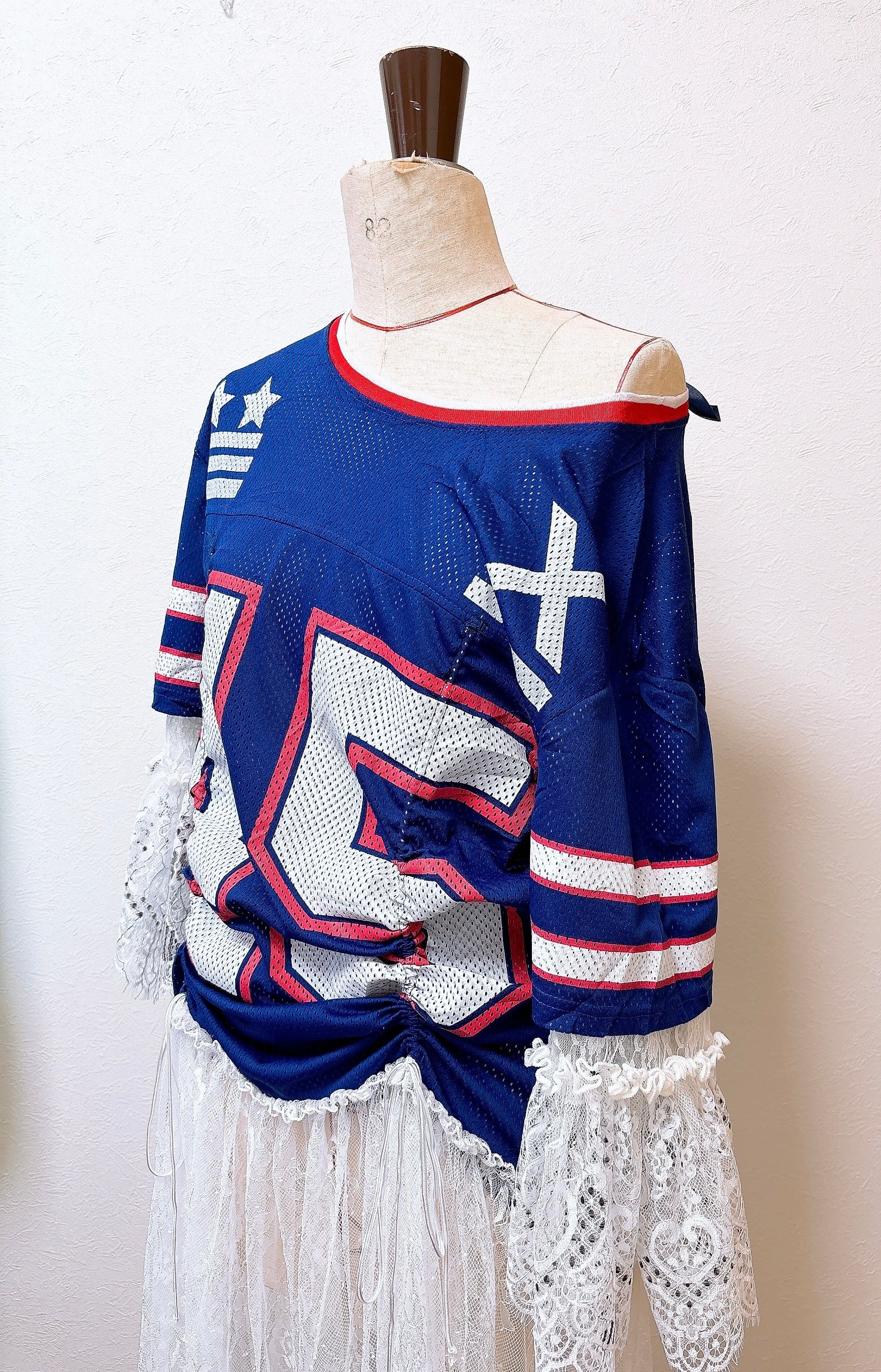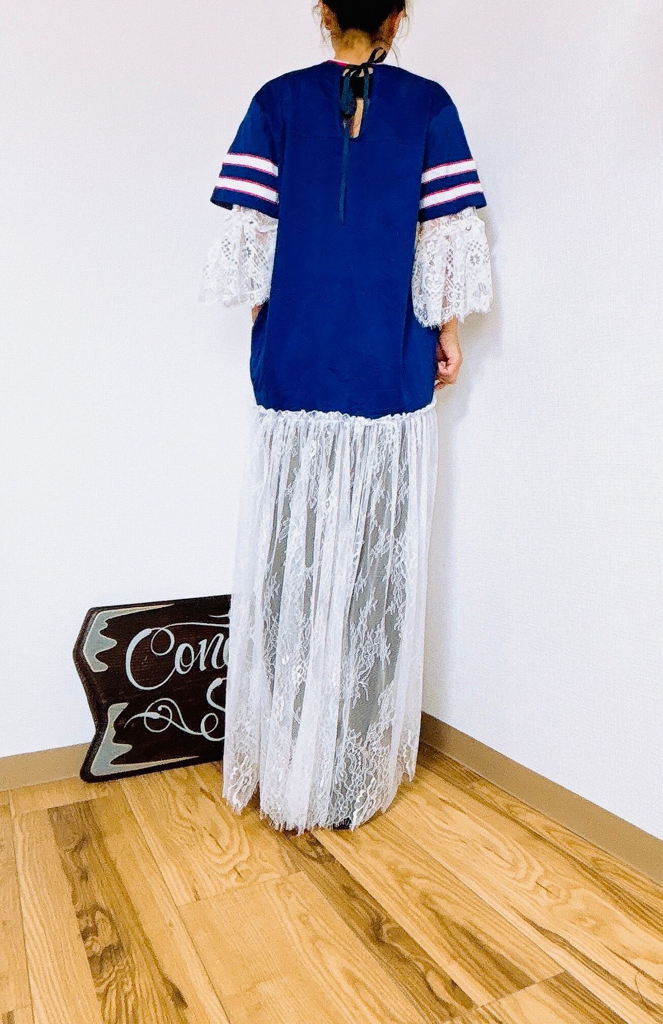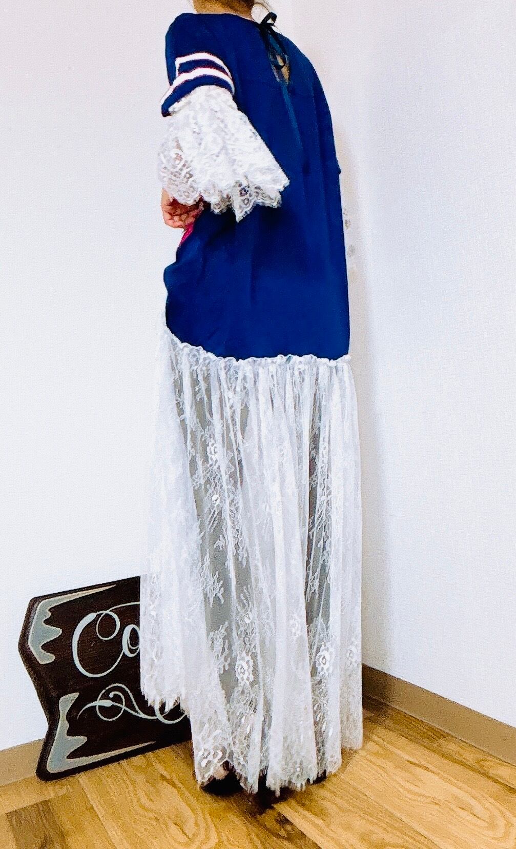 襟ぐりは後ろで調整できるから、レイヤードしたい場合にはゆるくしたりできます。