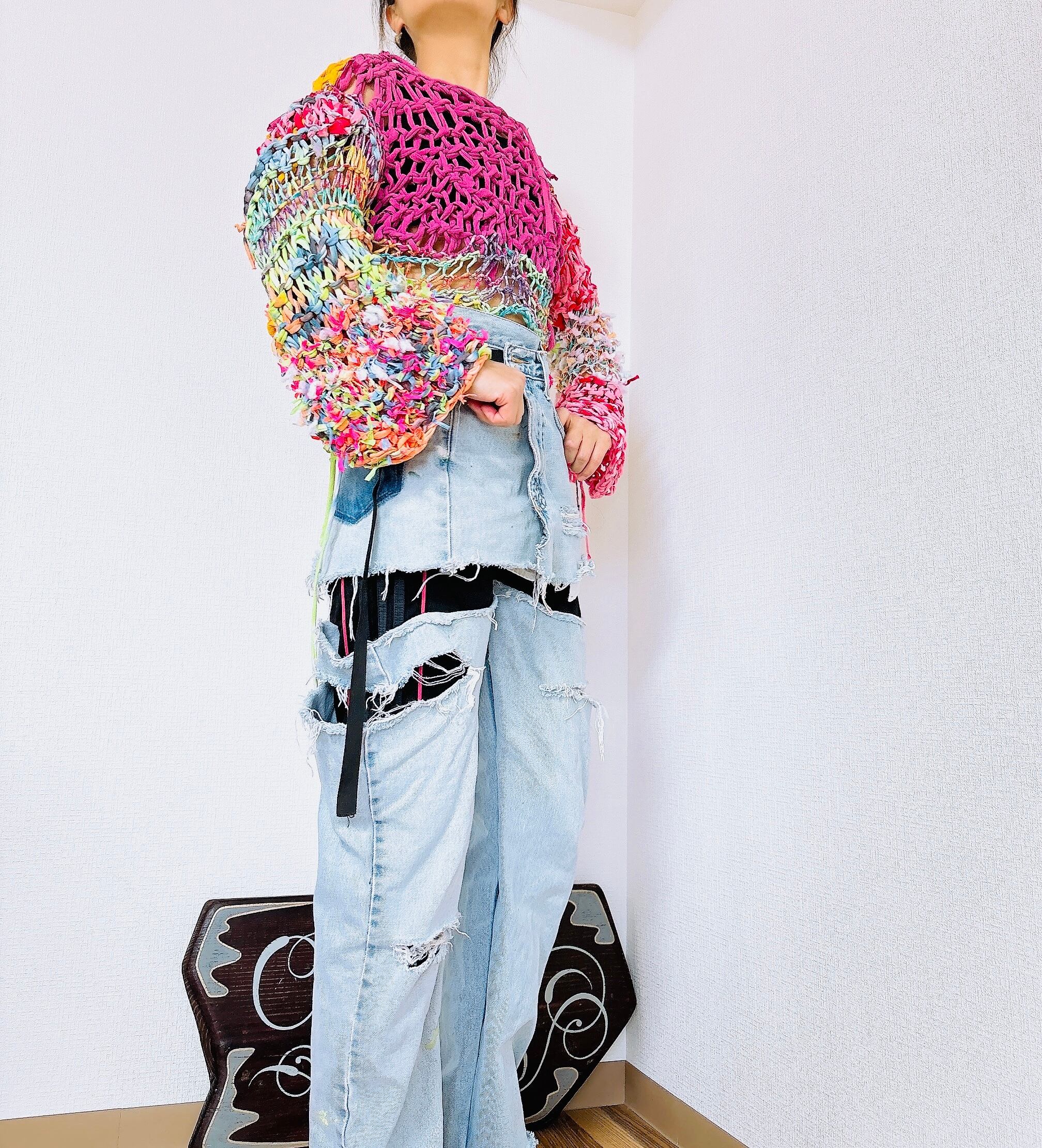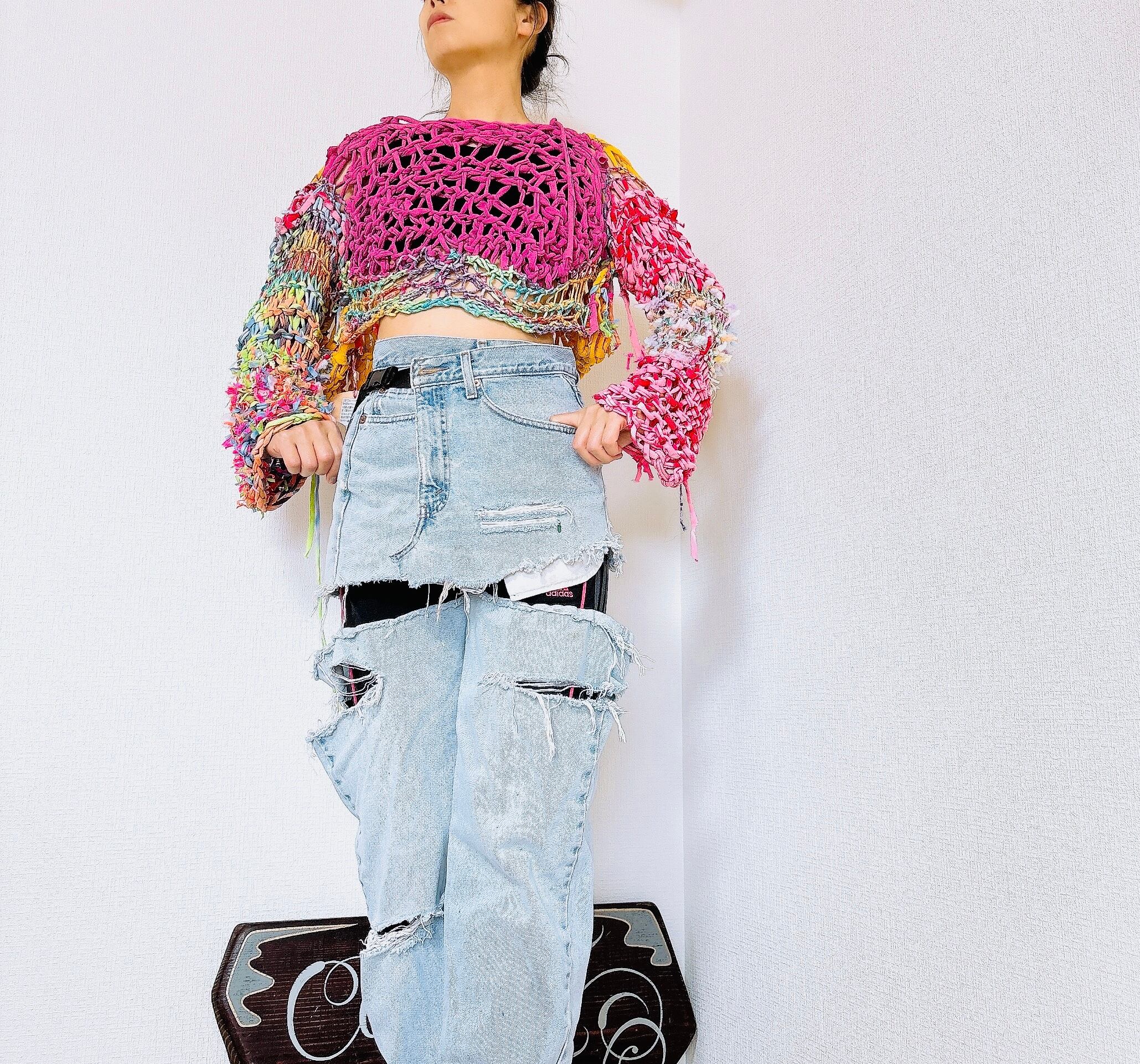 棒針、かぎ針、指編みで、ちょっとパンクっぽく