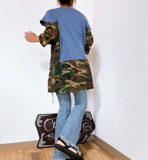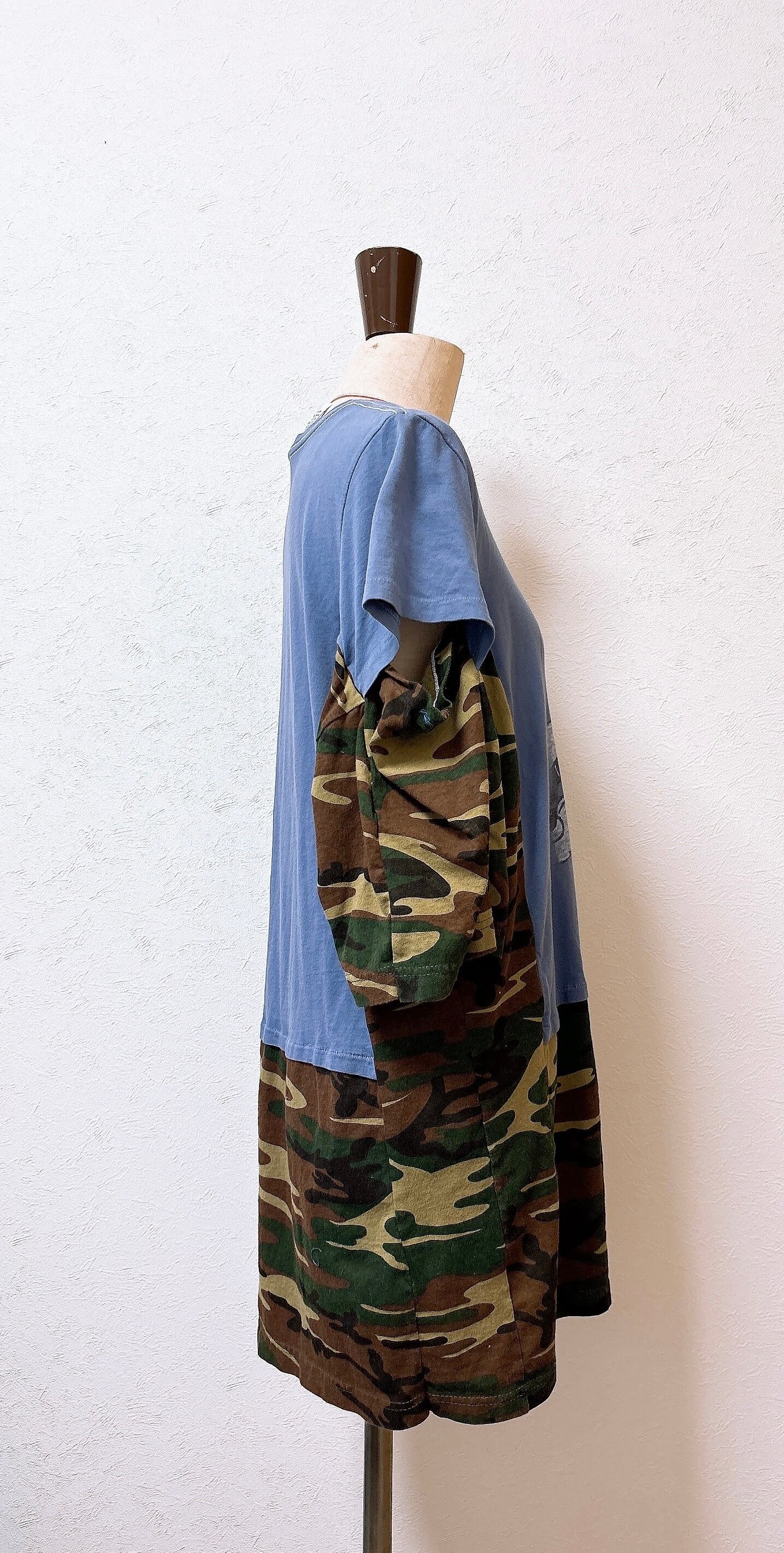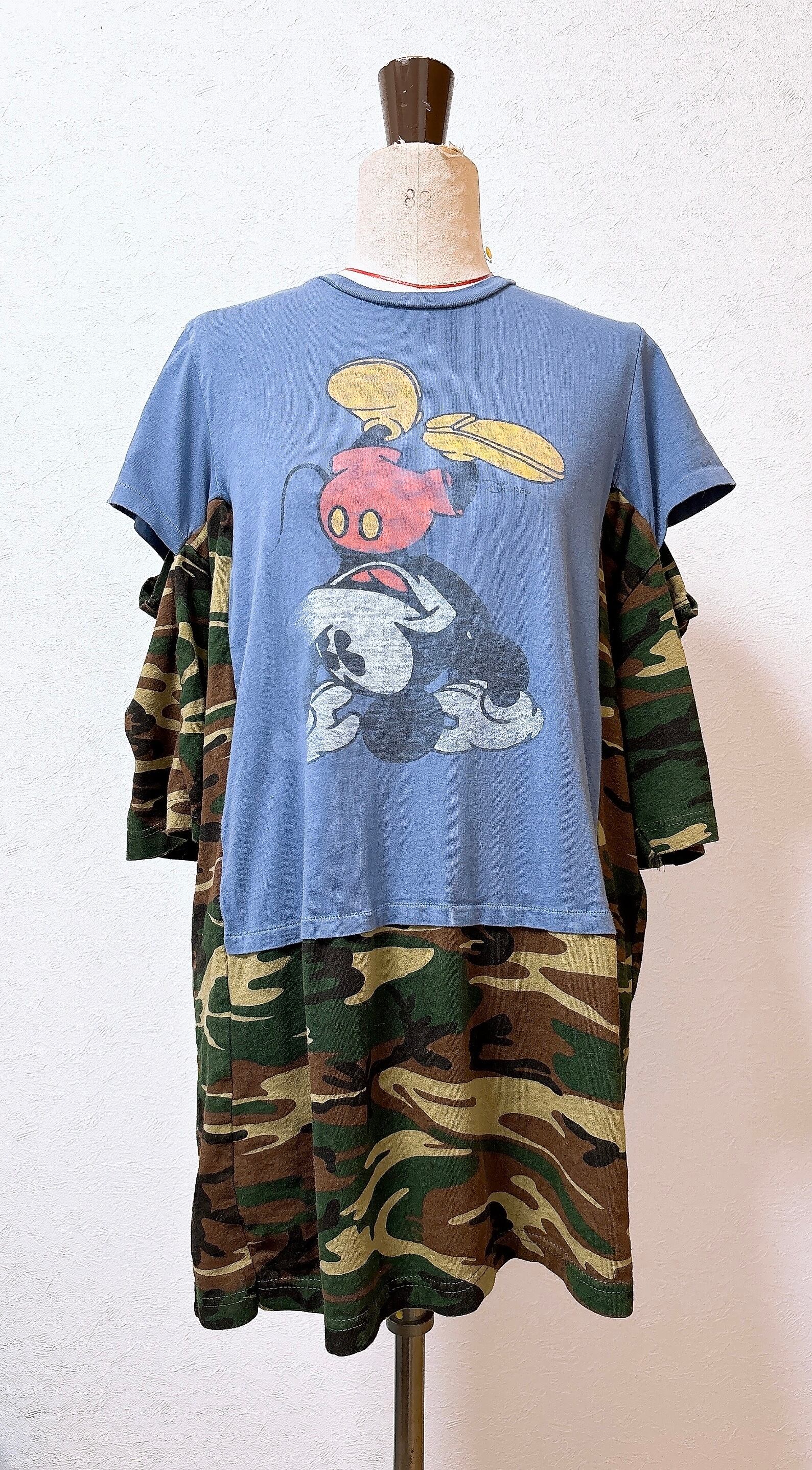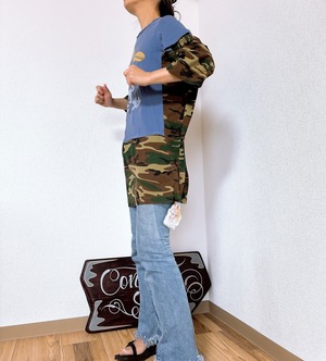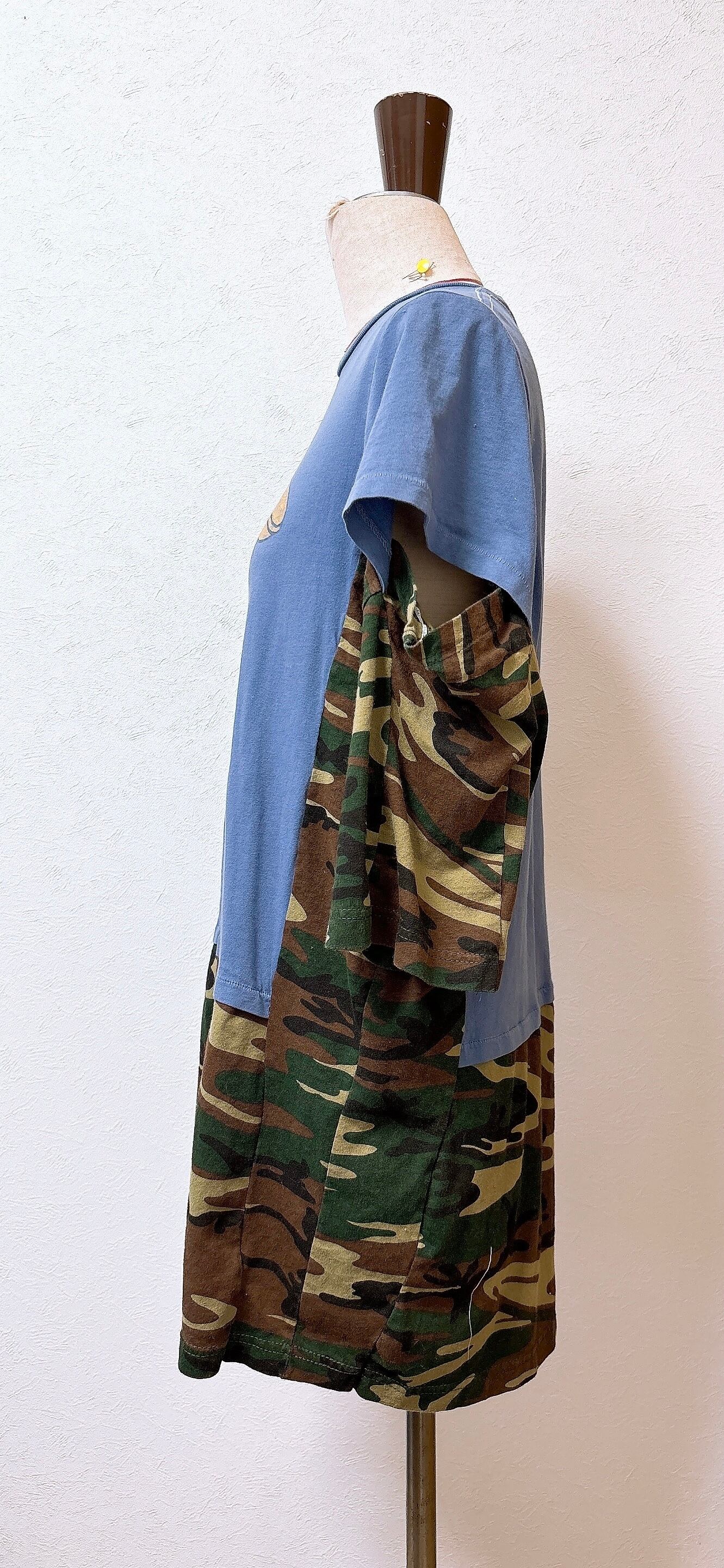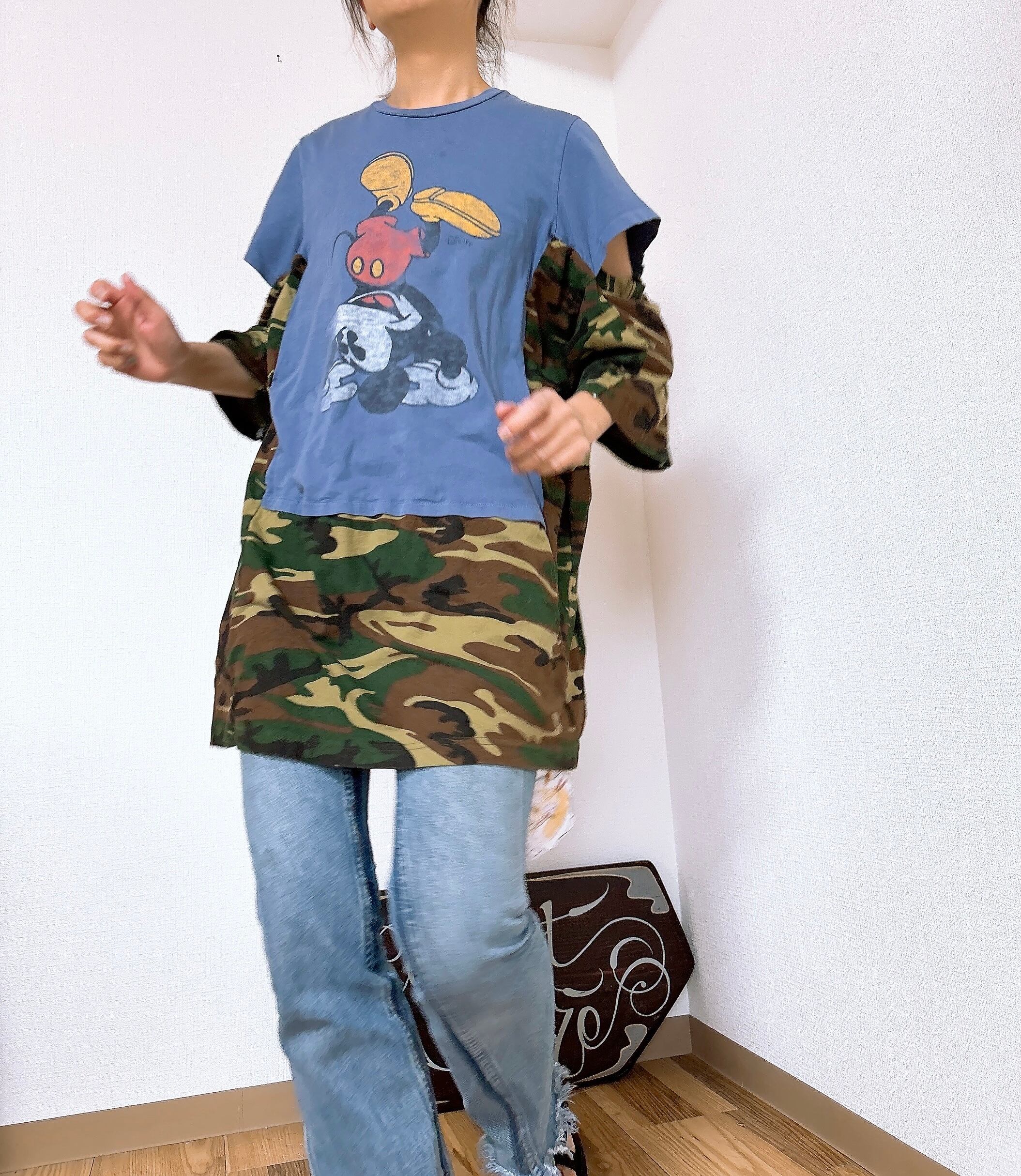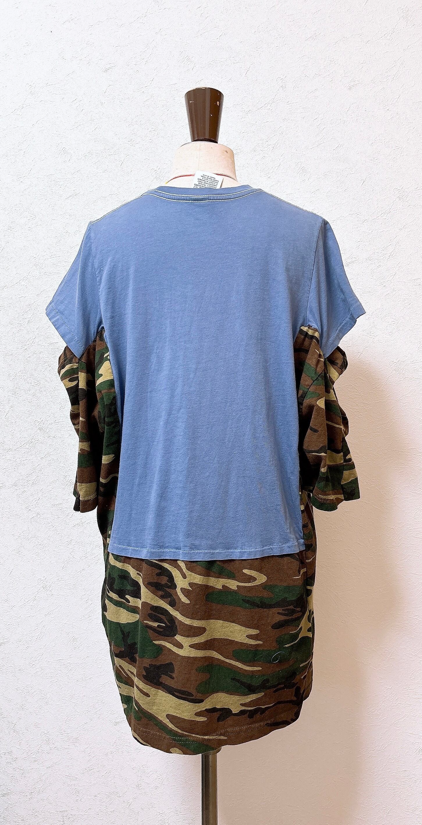 小さいteeと大きなteeを繋げて縦長のシルエットにしました。