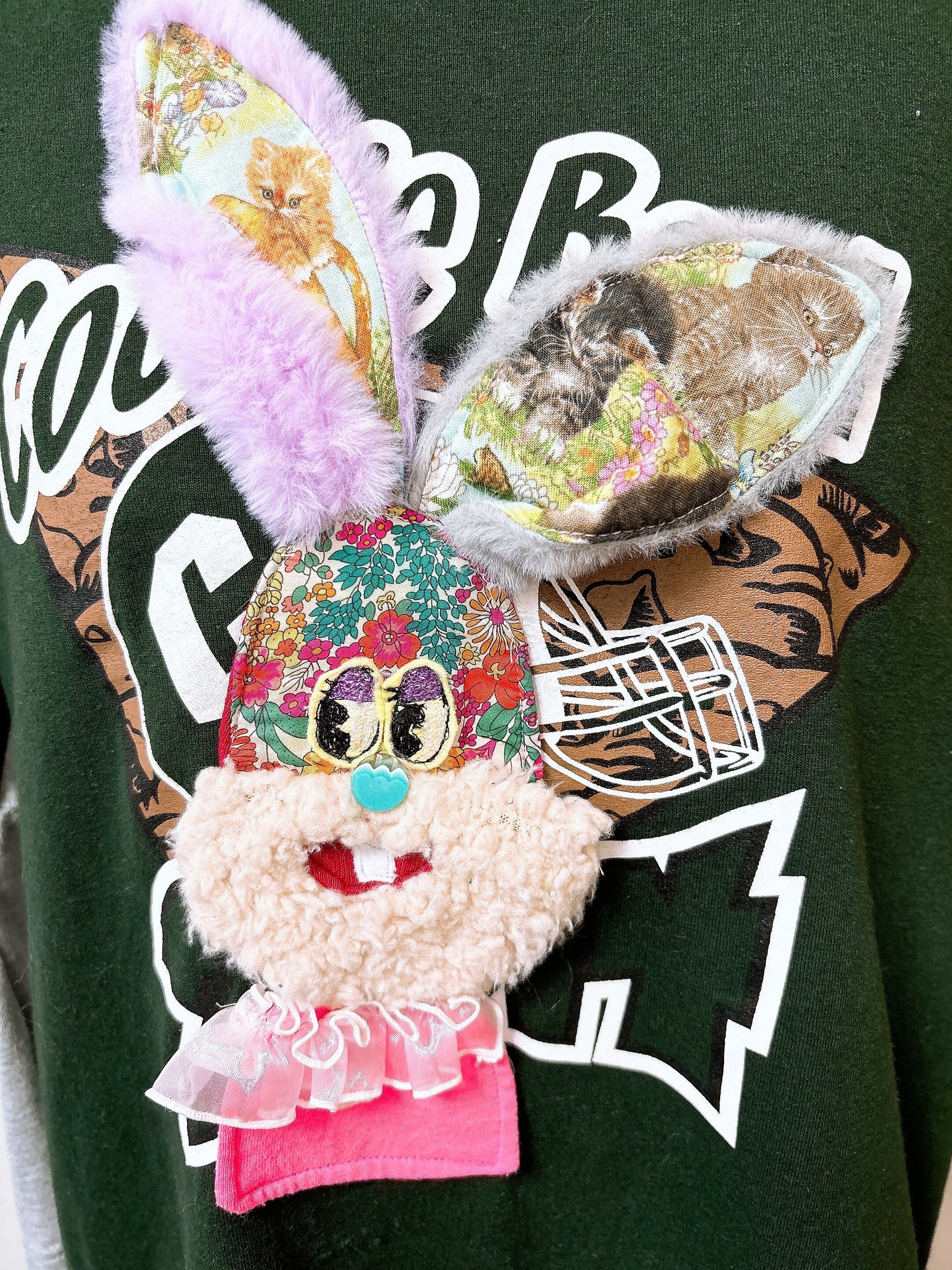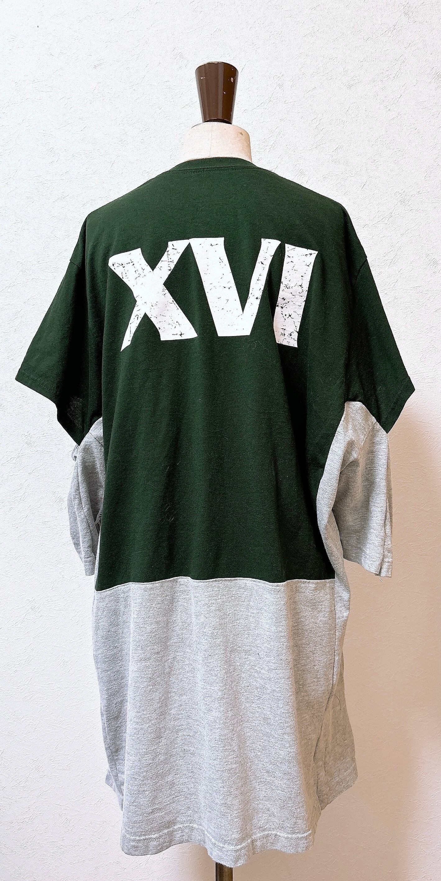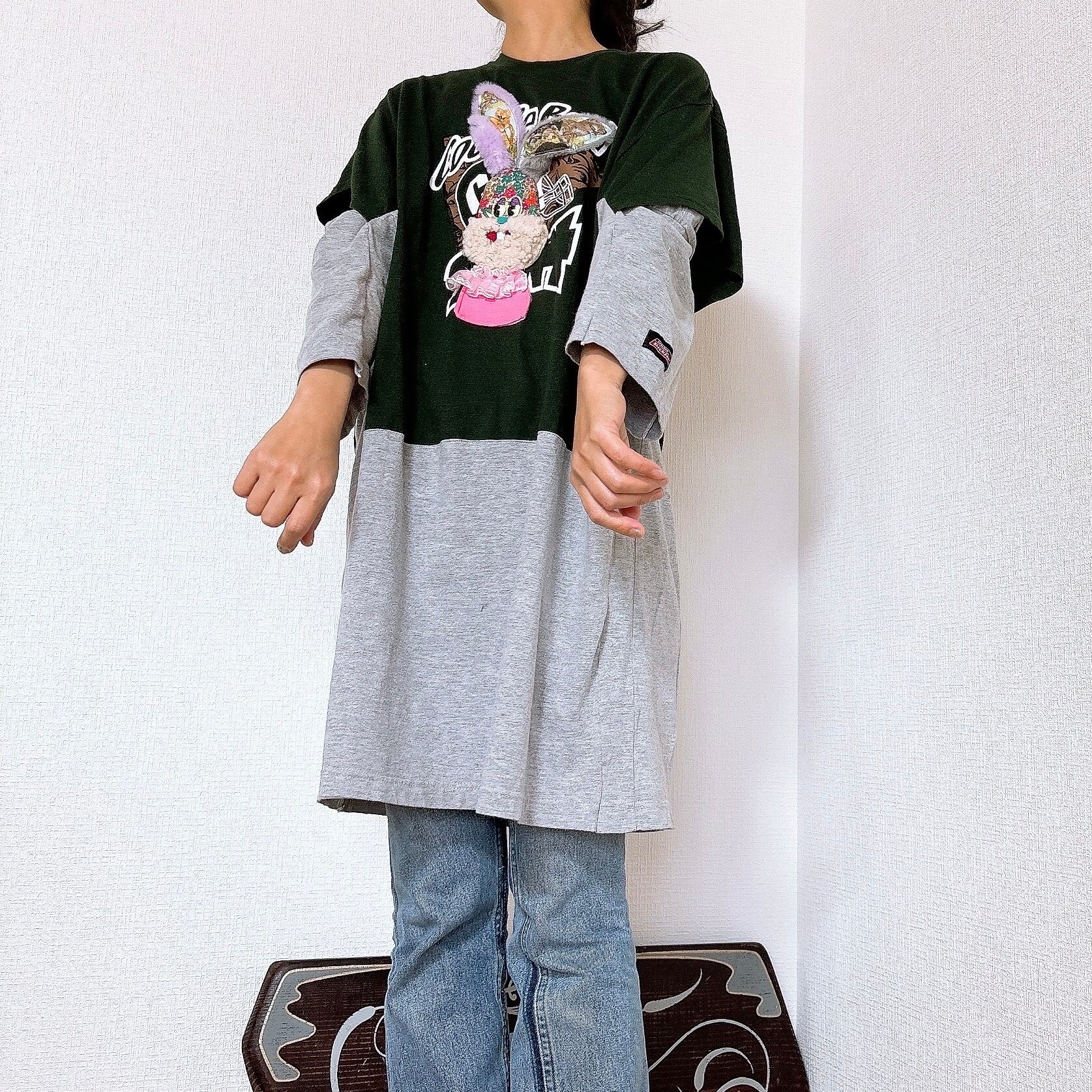 小さいteeと大きなteeを繋げて縦長のシルエットにしました。