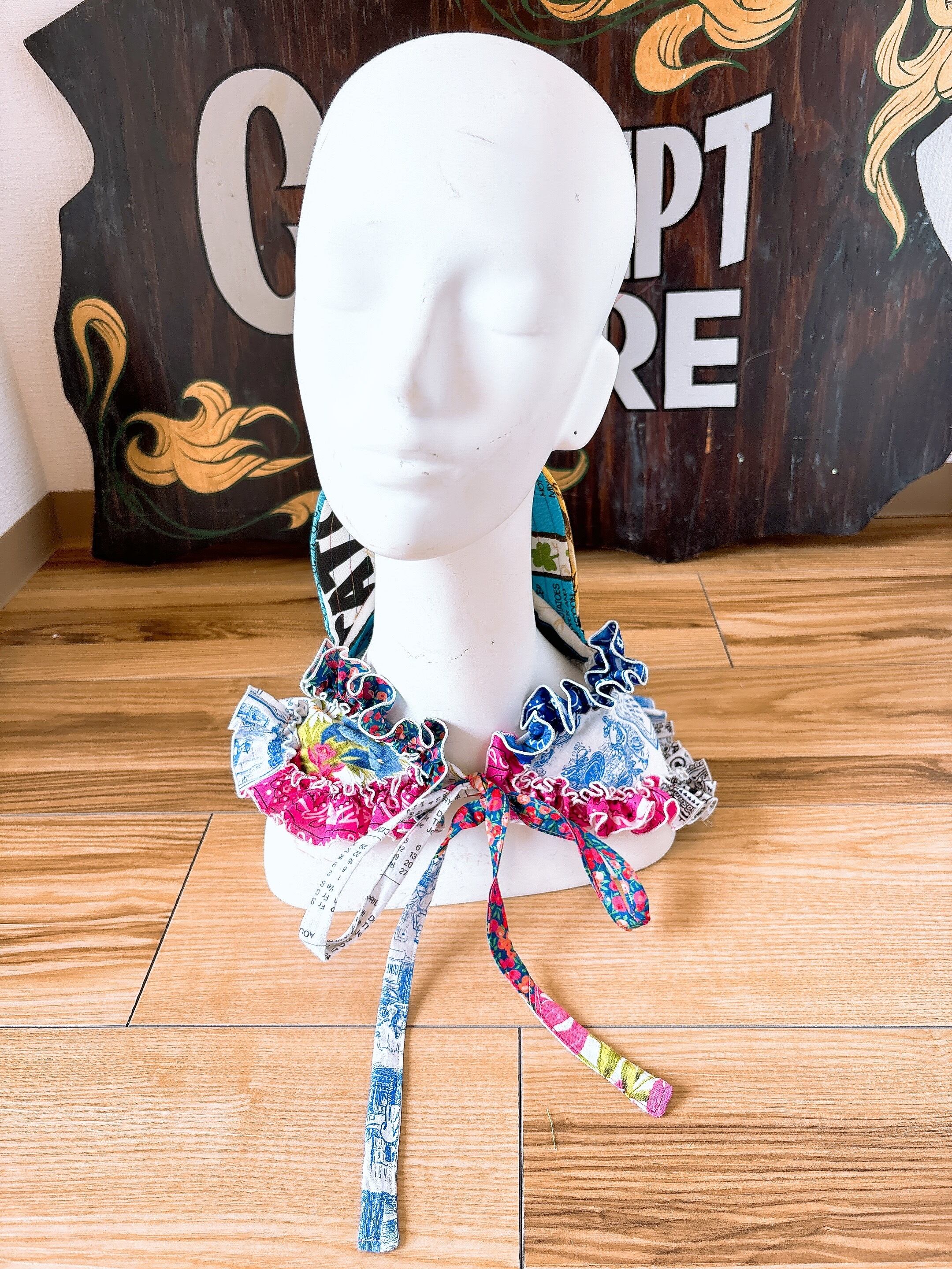 室内では、つけ襟にもなるんで、シンプルな服装の時の