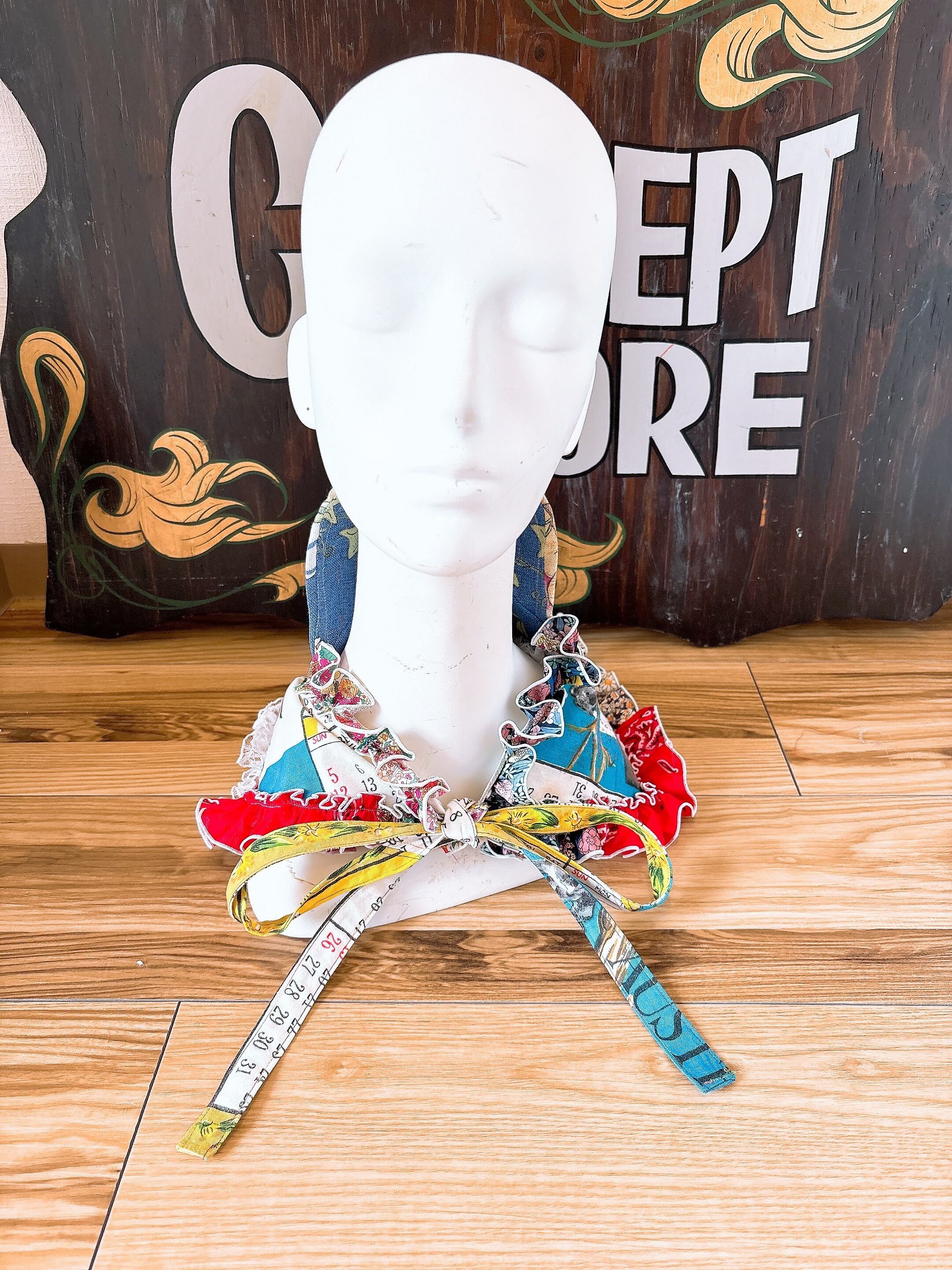 室内では、つけ襟にもなるんで、シンプルな服装の時の