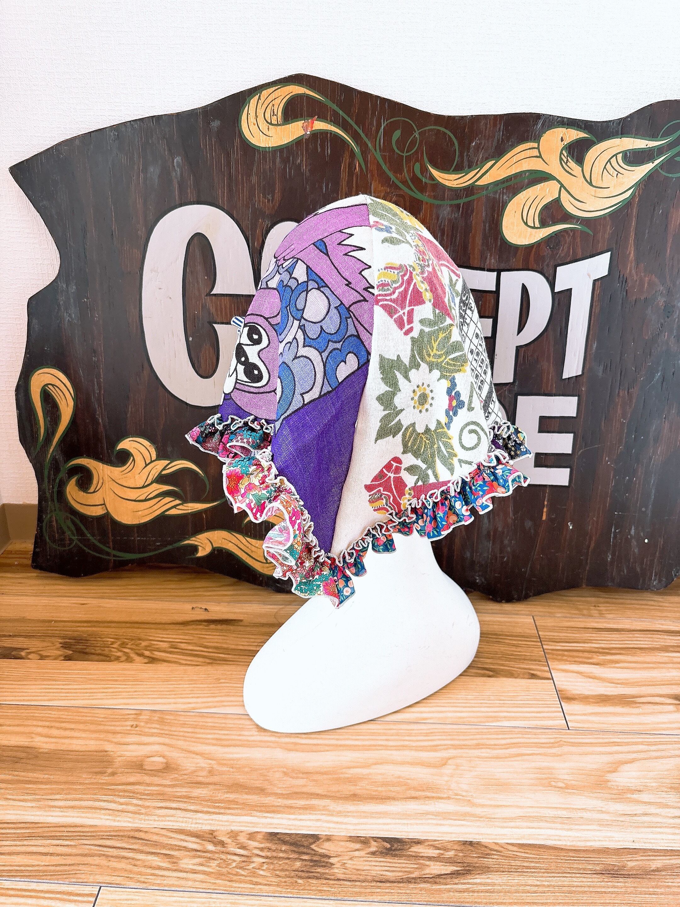 2wy babushka cap 猫とネズミヴィンテージ柄
