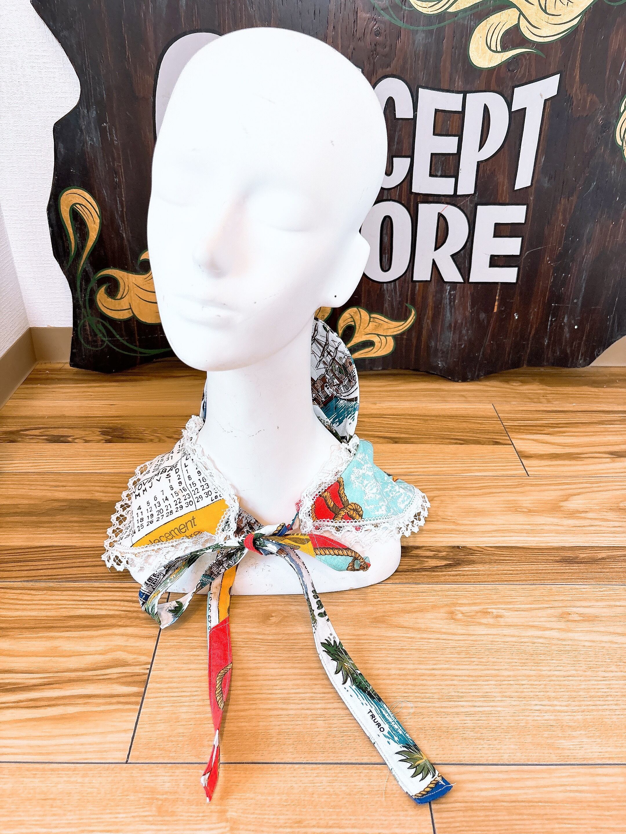 室内では、つけ襟にもなるんで、シンプルな服装の時の