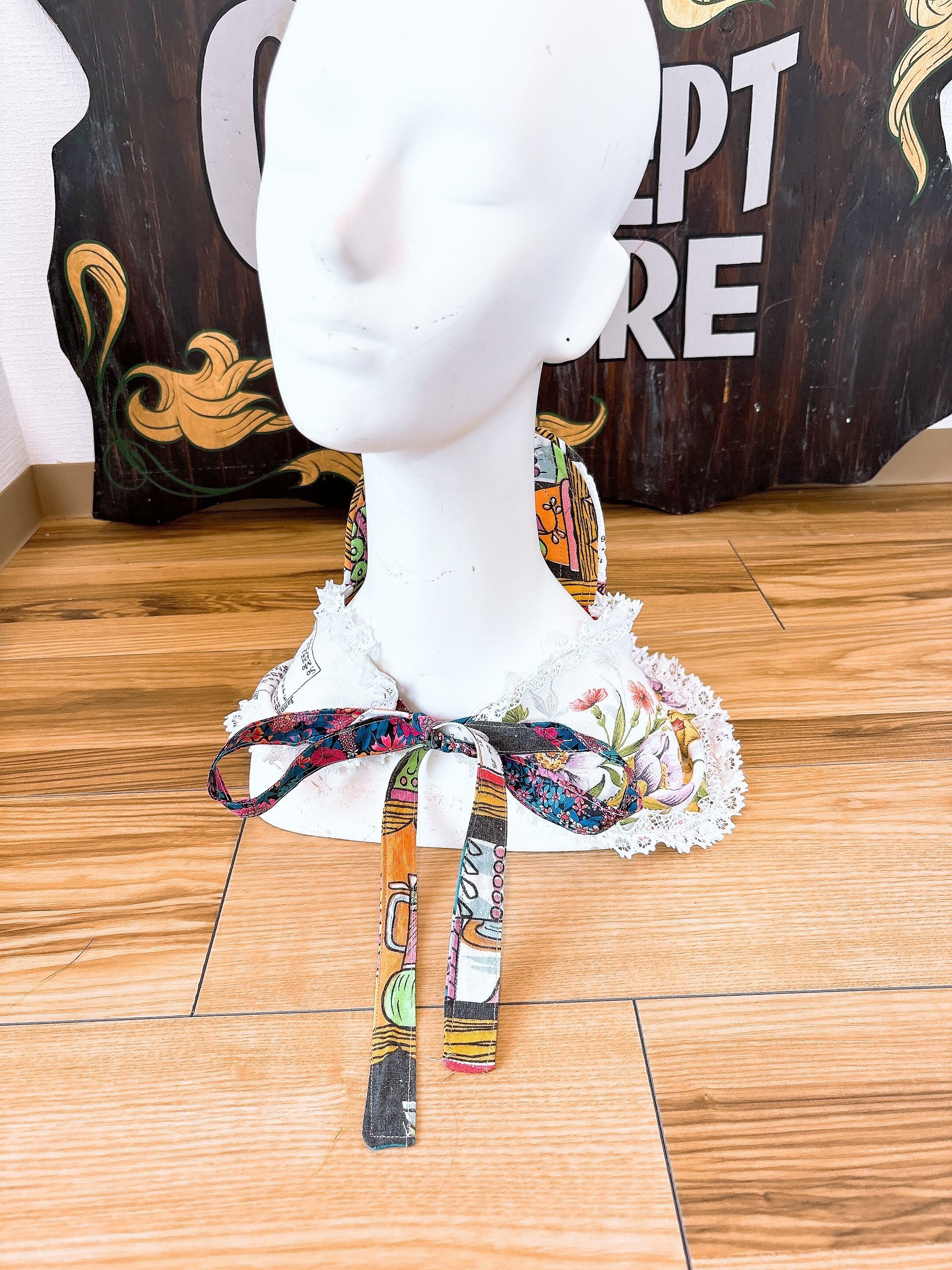 室内では、つけ襟にもなるんで、シンプルな服装の時の