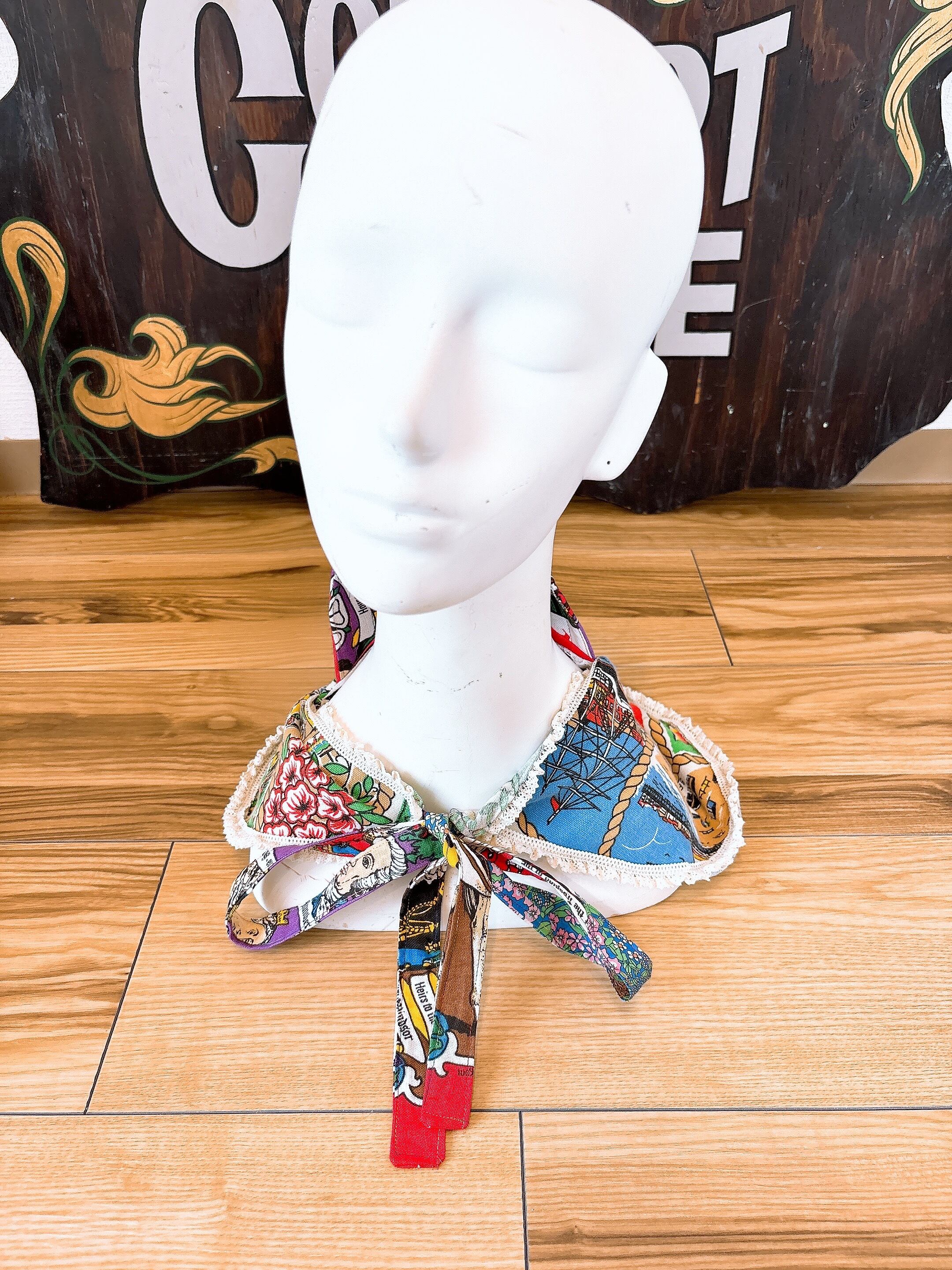 室内では、つけ襟にもなるんで、シンプルな服装の時の
