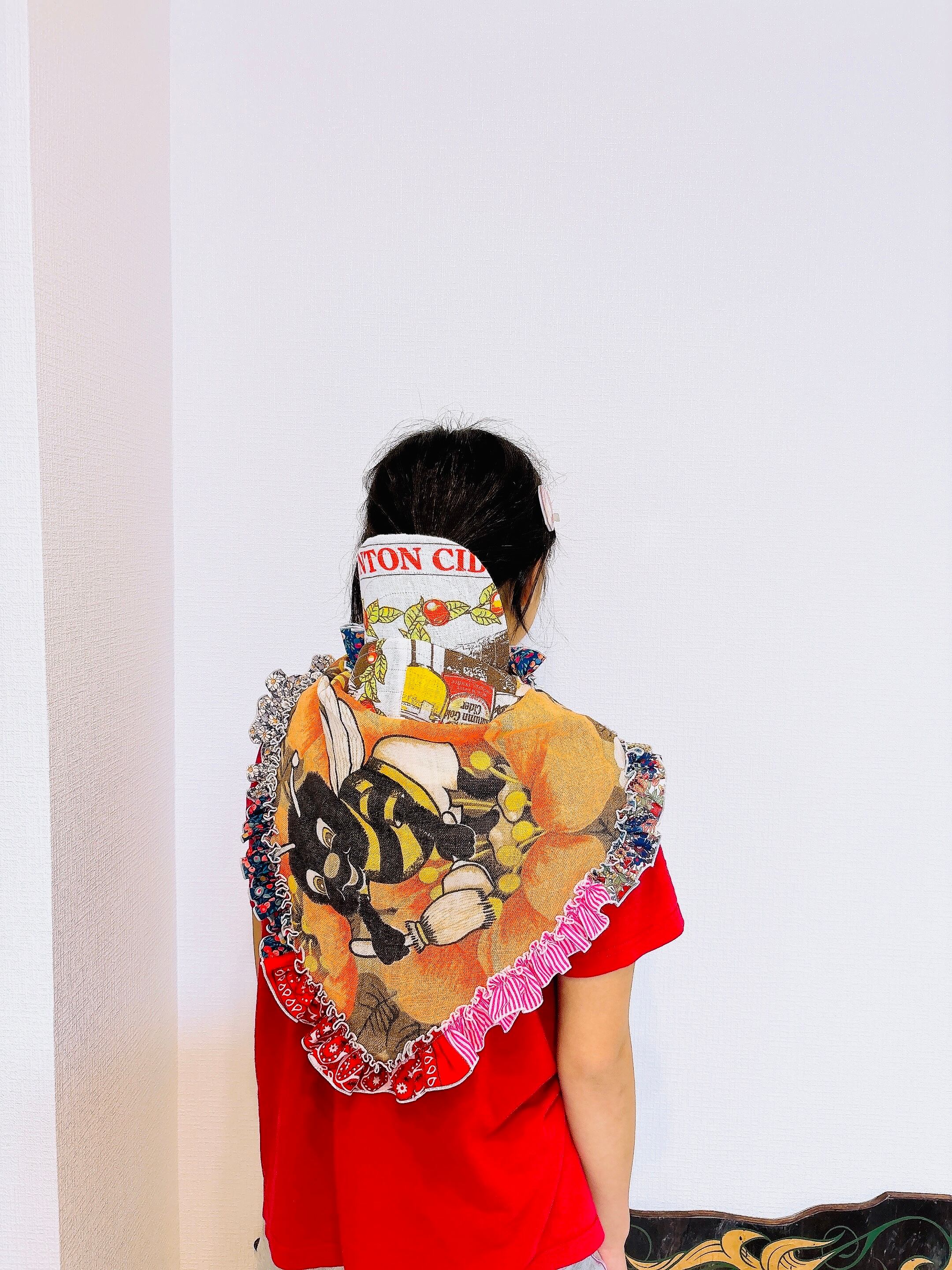 2wy babushka cap 箒で花粉を採取するミツバチ柄
