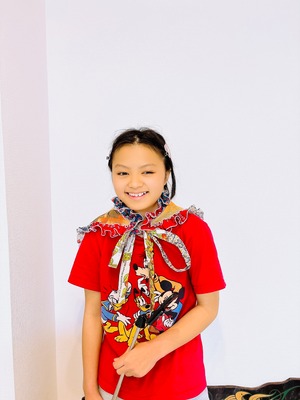 室内では、つけ襟にもなるんで、シンプルな服装の時の