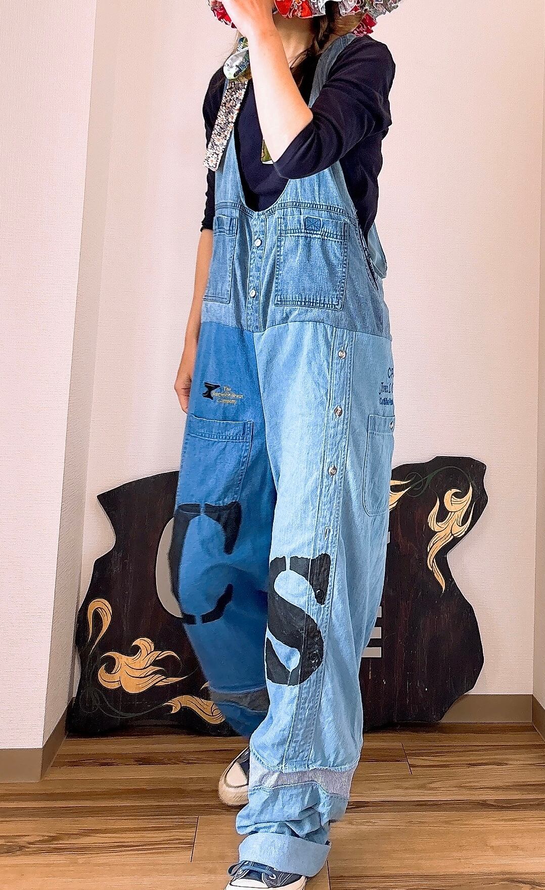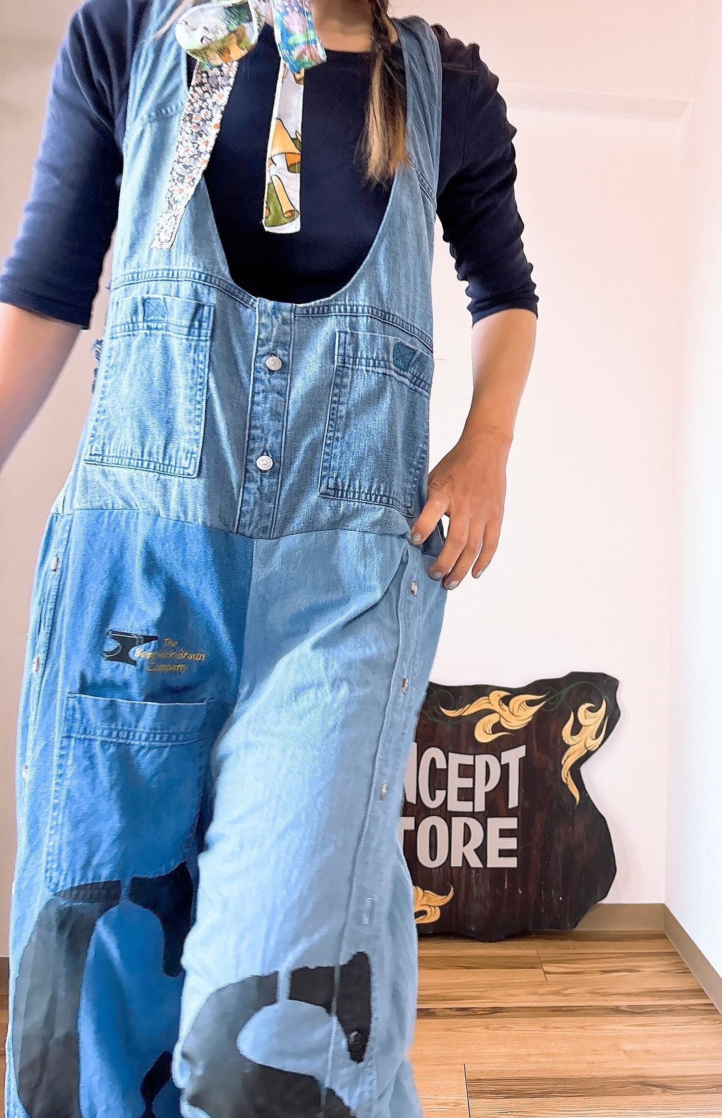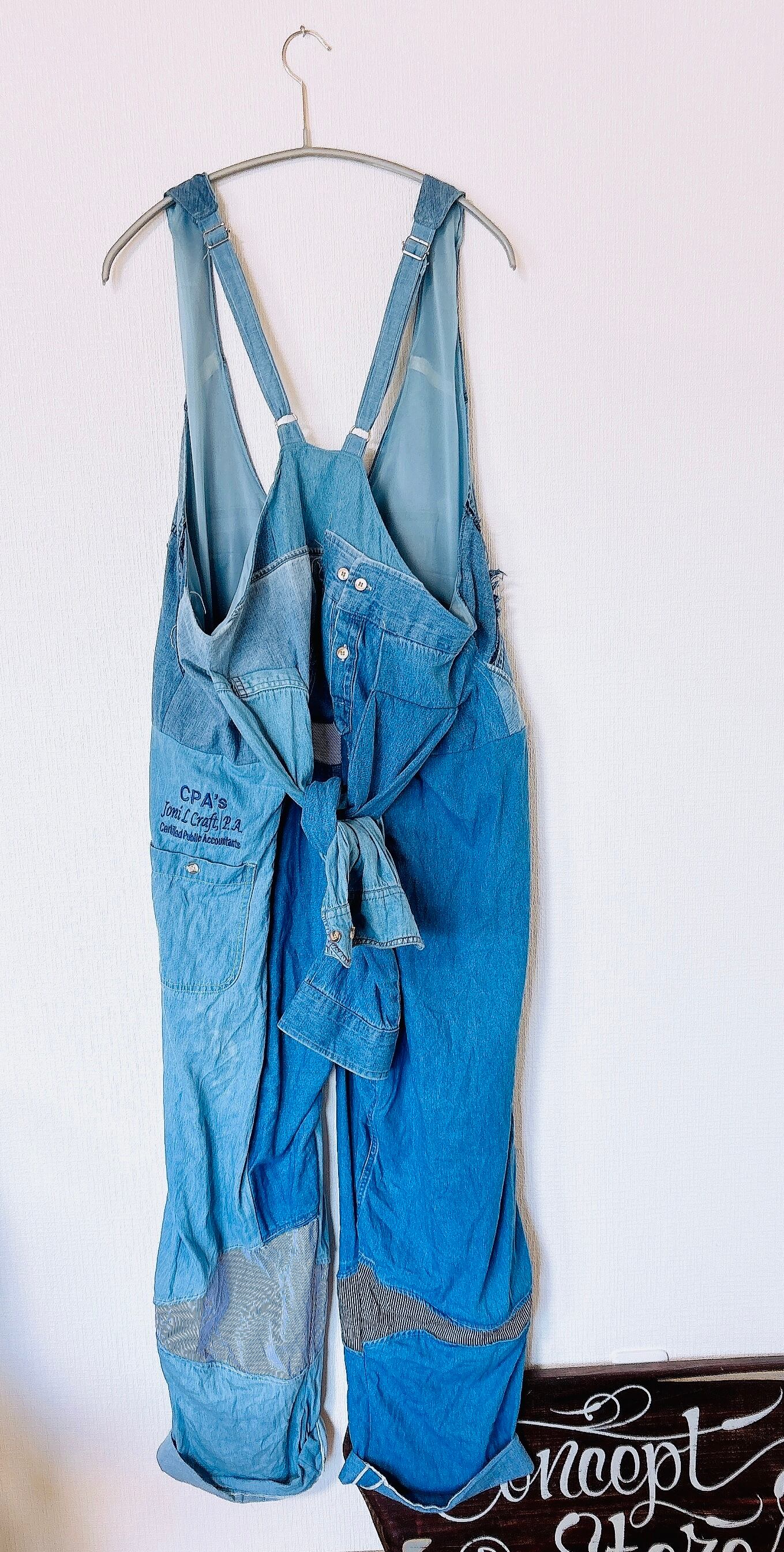 usedのデニムシャツ3枚使用し、真夏でも涼しいサロペットにしました。