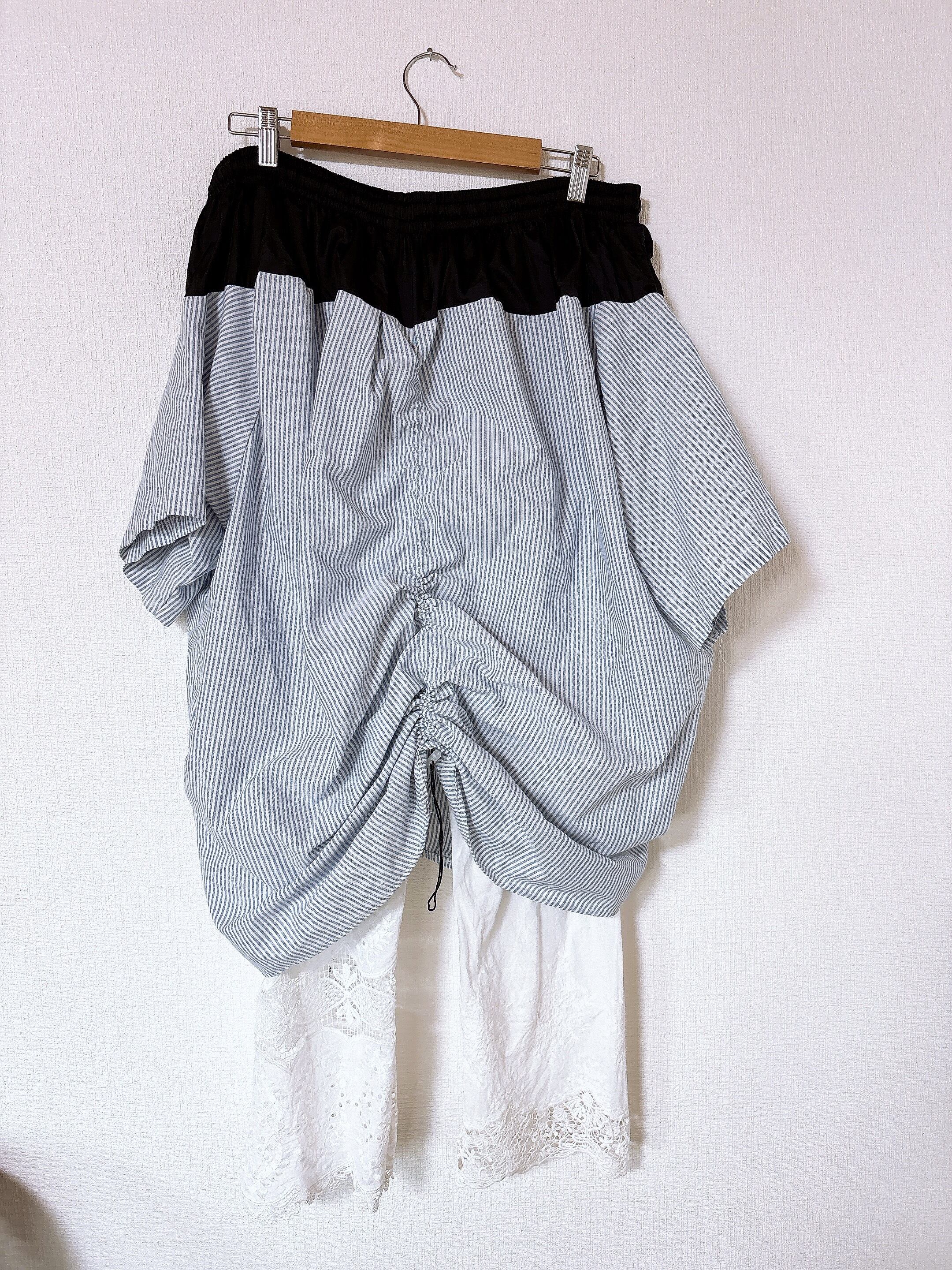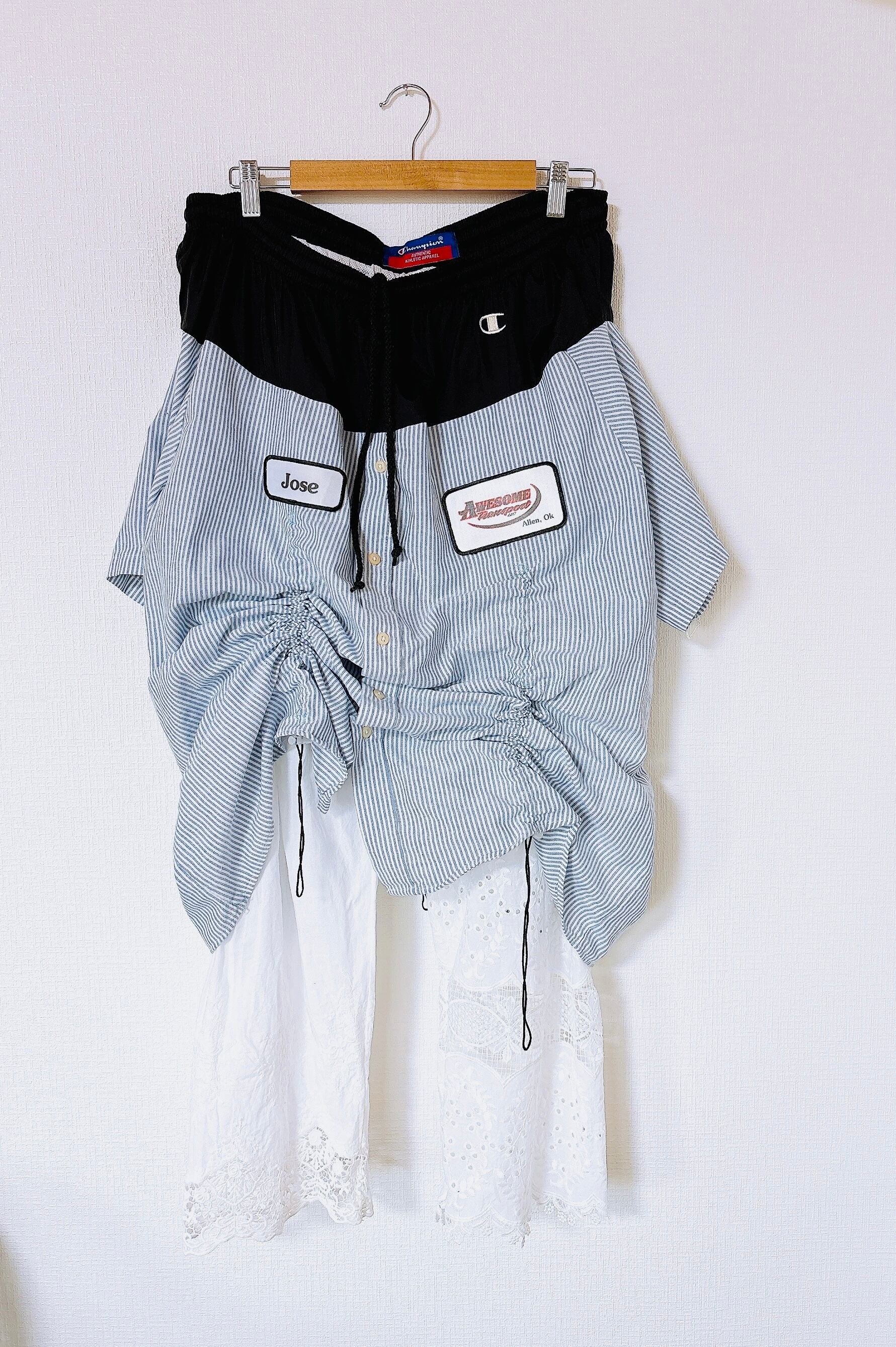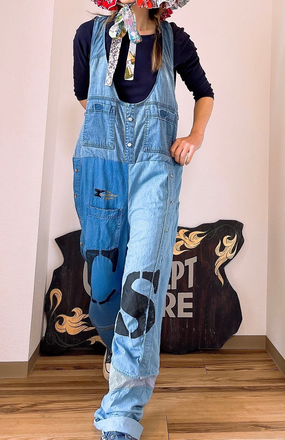 usedのデニムシャツ3枚使用し、真夏でも涼しいサロペットにしました。