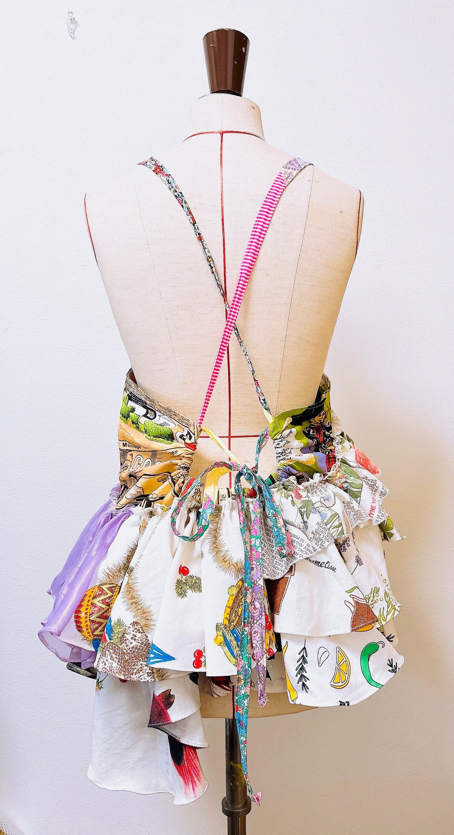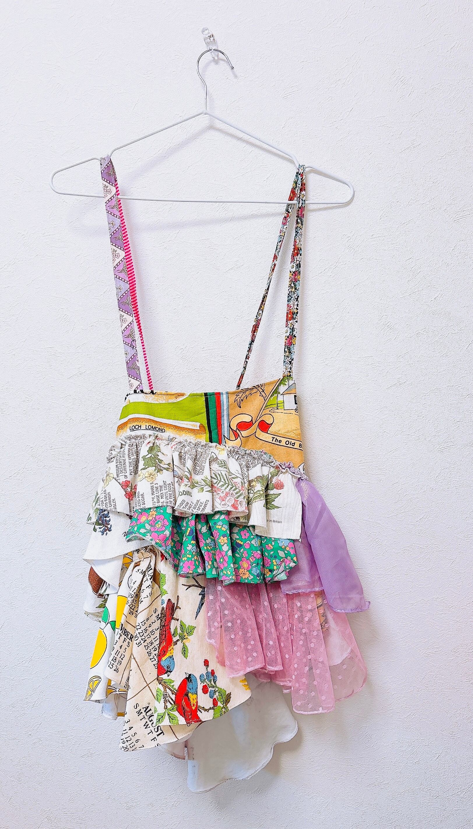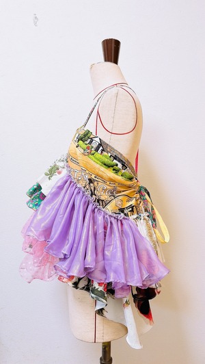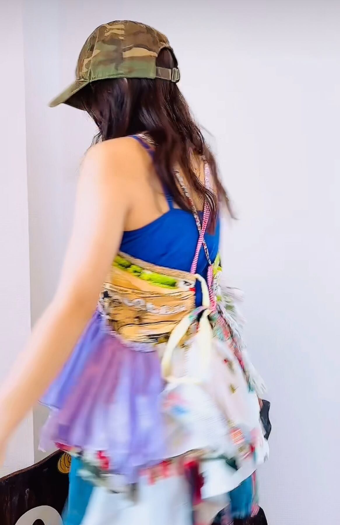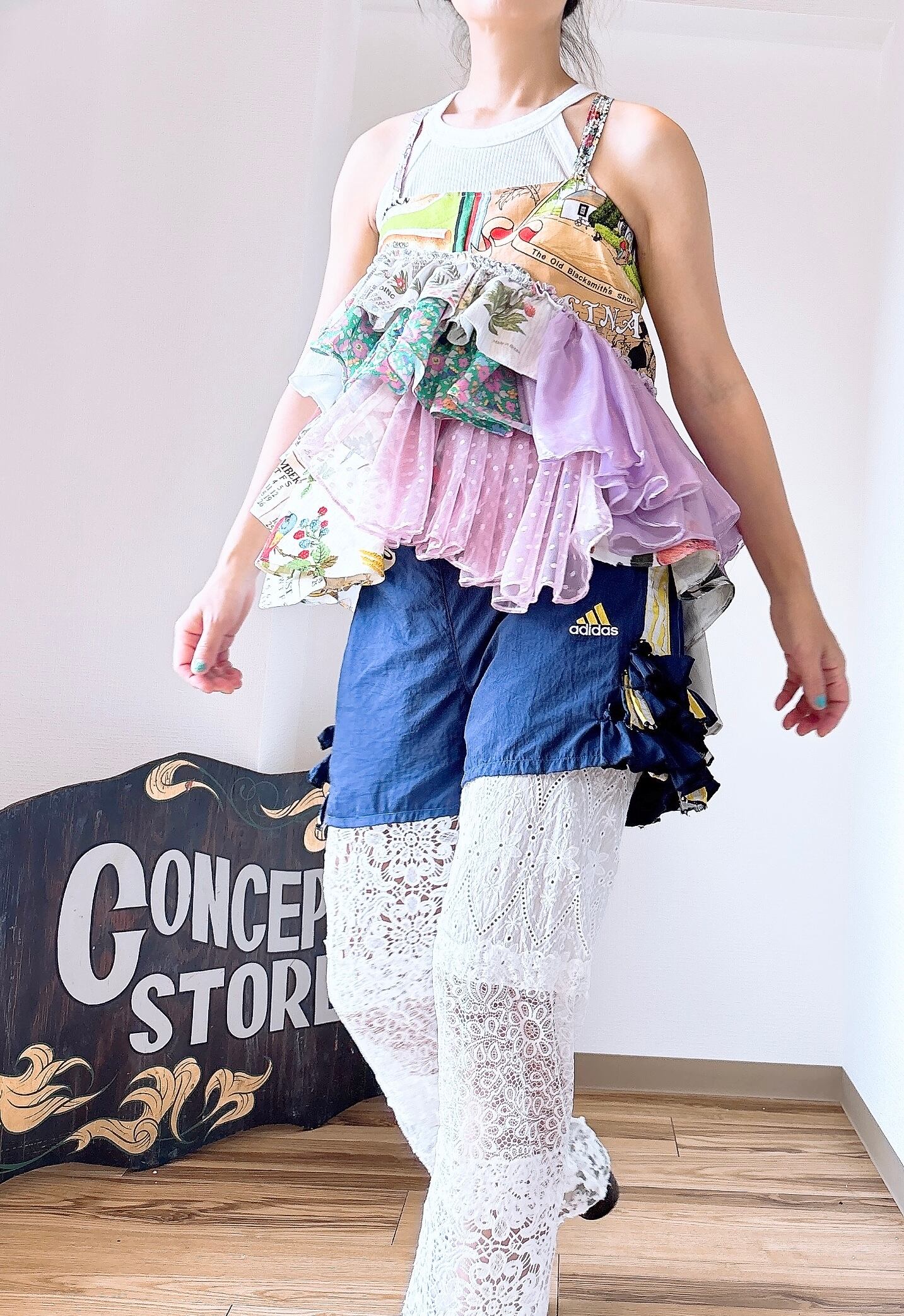 異素材で、トレンドのアシメトリーヘムを採用した華やかなフリルビスチェを作りました。