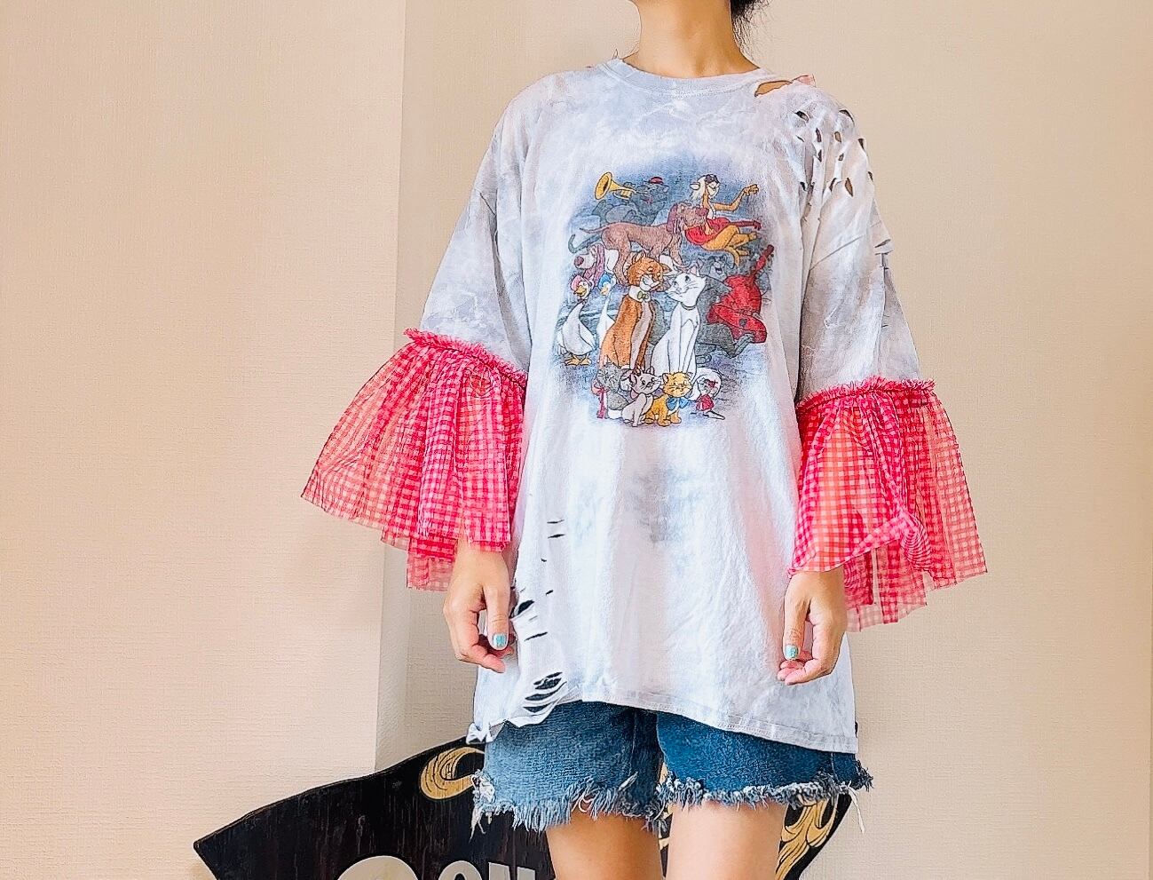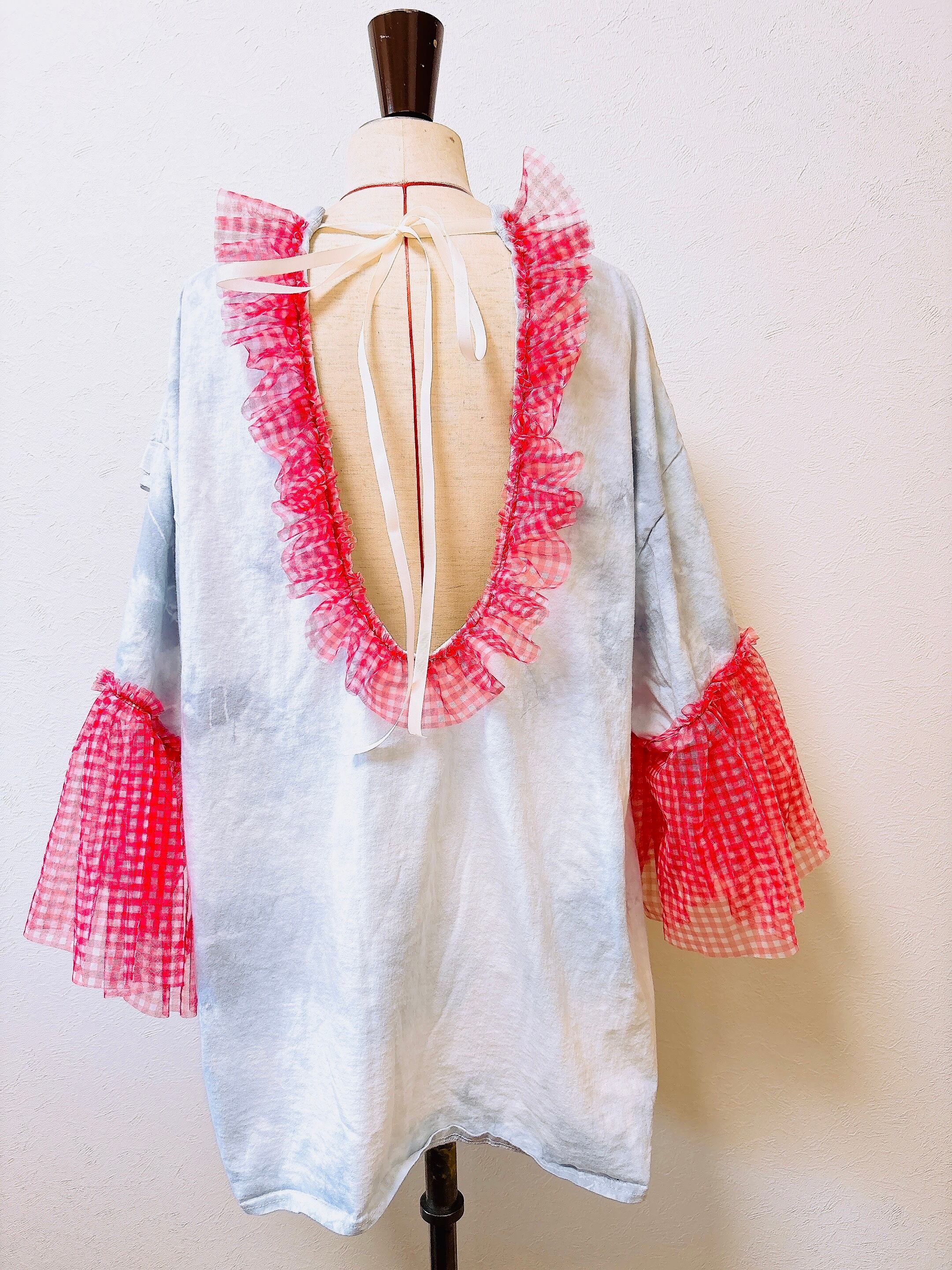 袖はギンガムチェックのチュールで誰とも被らない1点もの。
