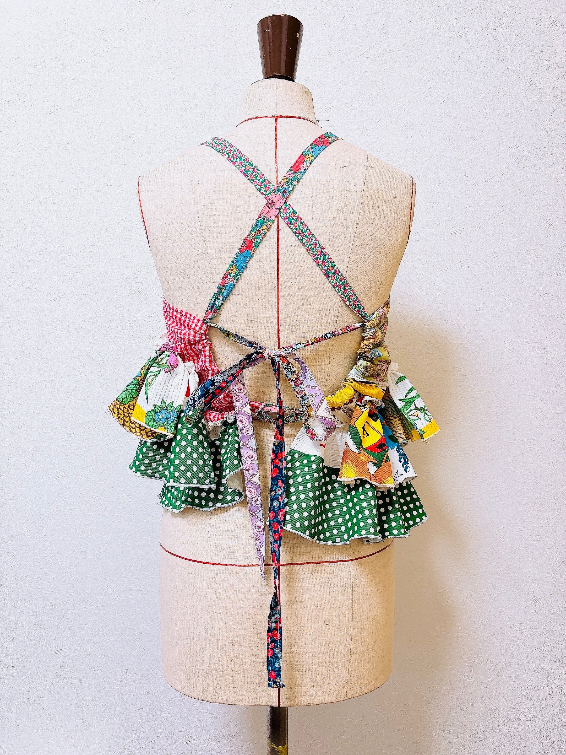 異素材で、トレンドのアシメトリーヘムを採用した華やかなフリルビスチェを作りました。