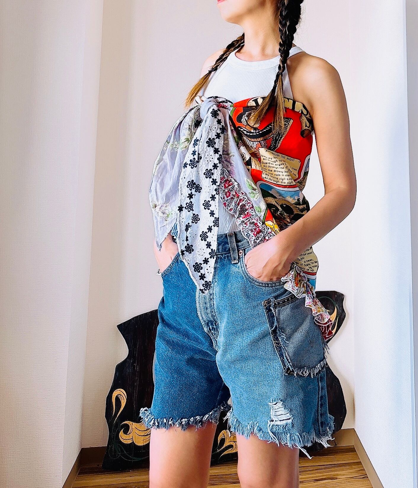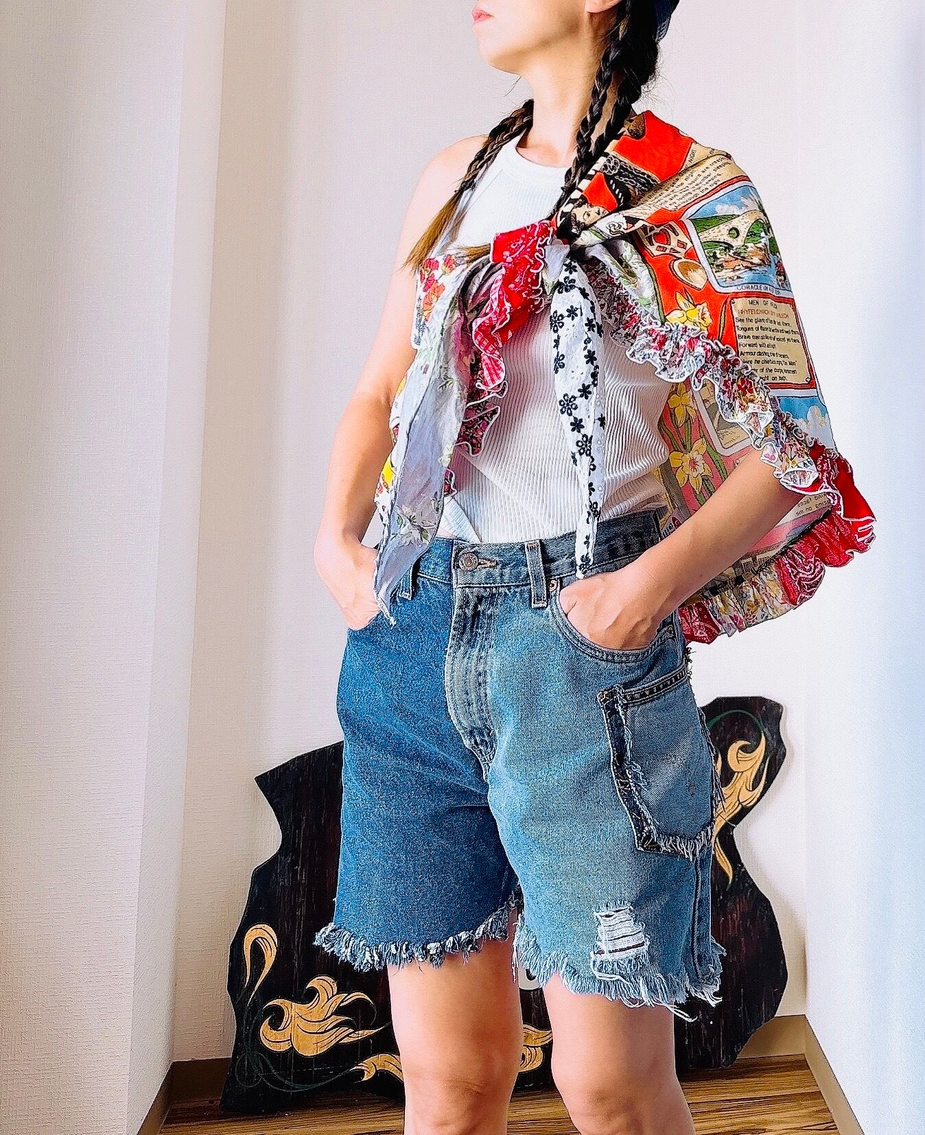 マルチウェイだから、真夏ならタンクやブラトップにあわせてビスチェみたく巻いたり、肩に斜めにしばったり、