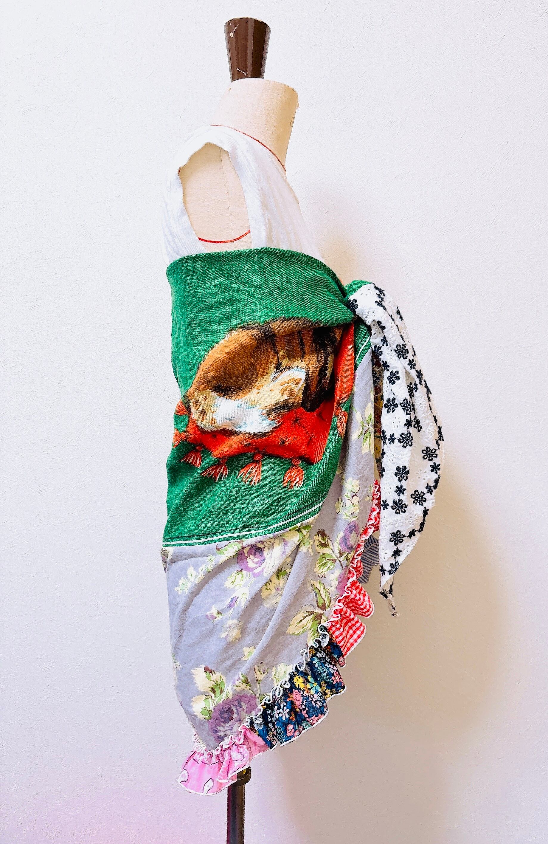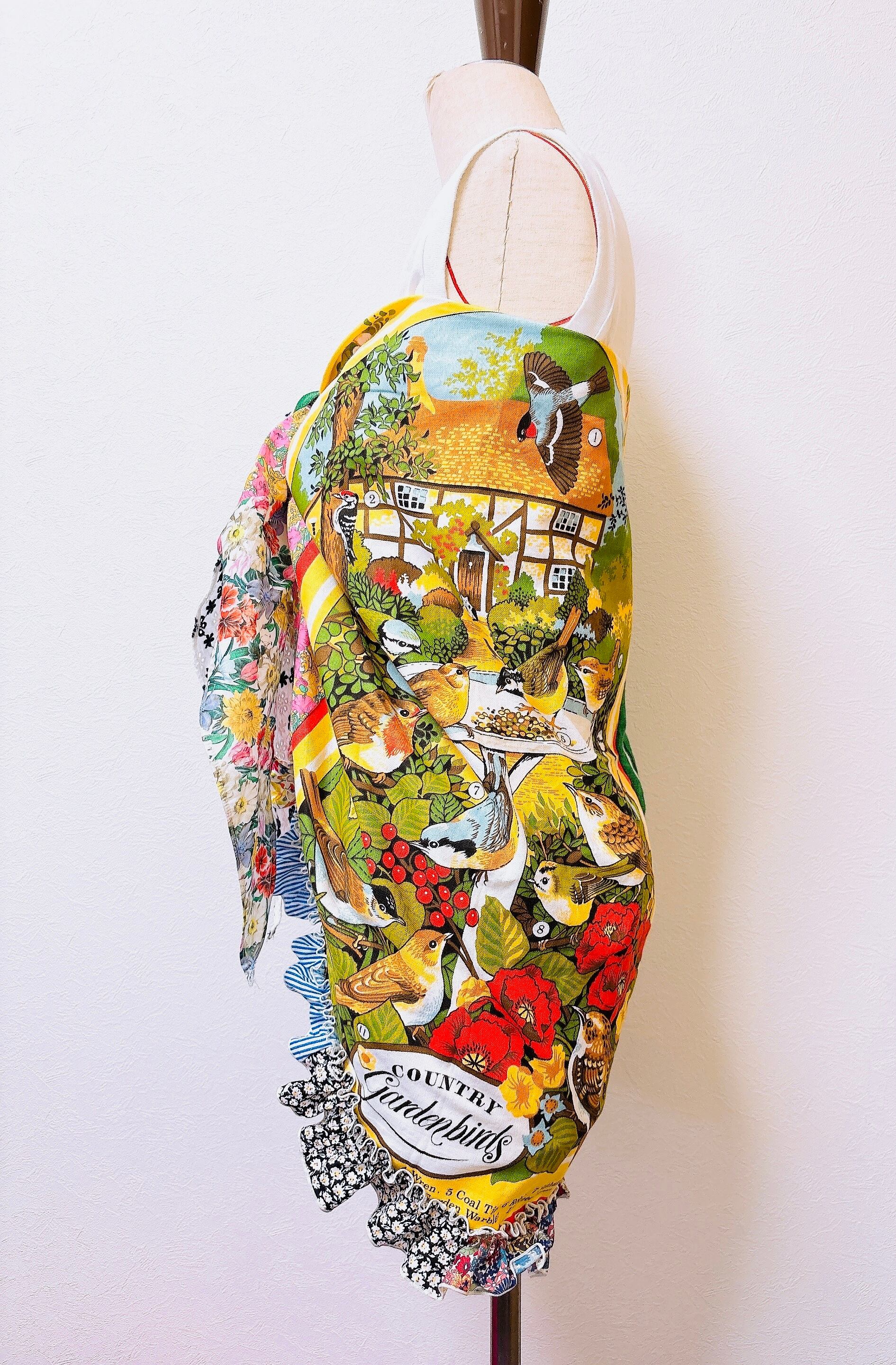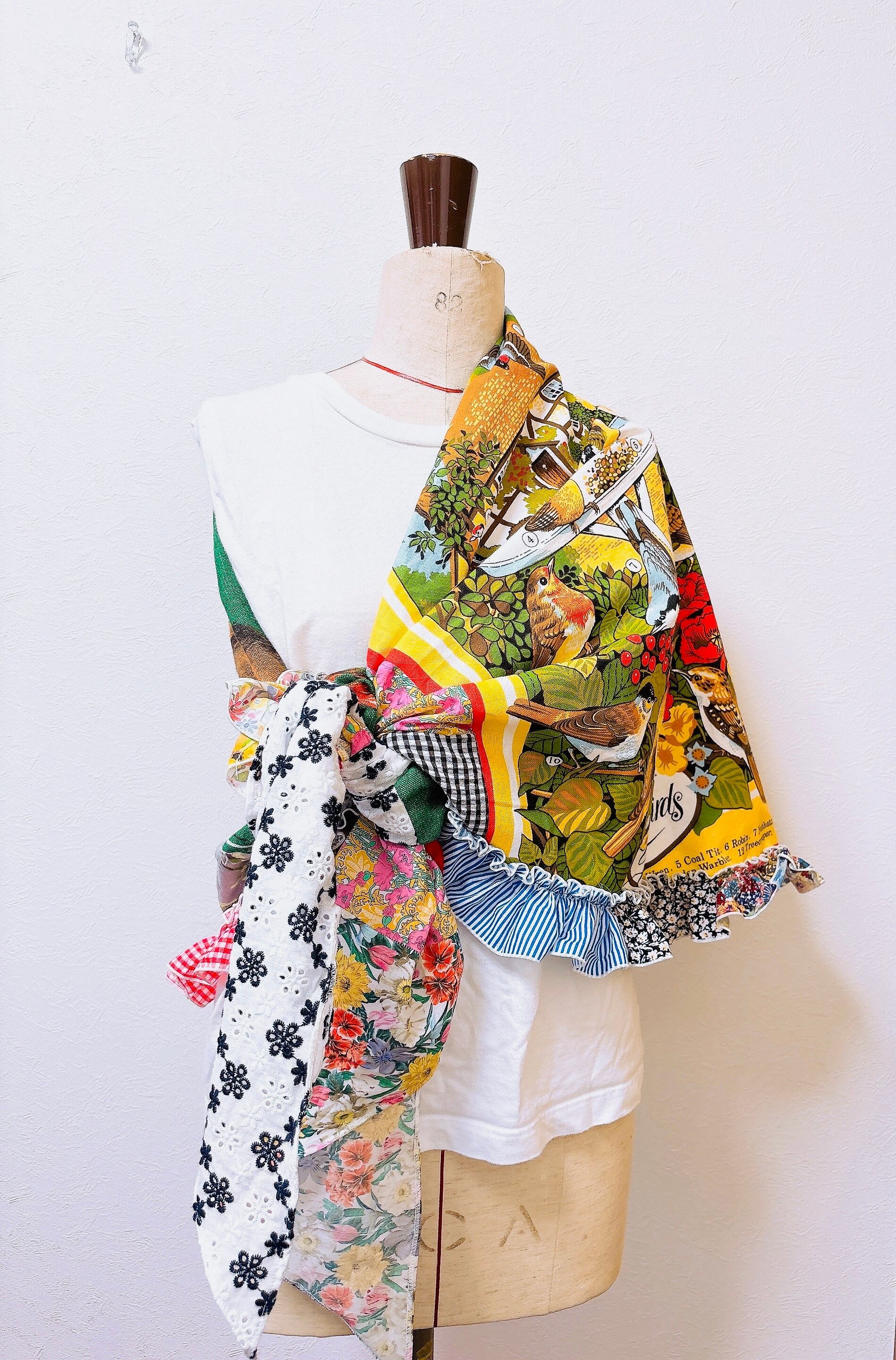 珍しいヨーロッパのヴィンテージタペストリーをはぎ合わせて大判スカーフにしました。
