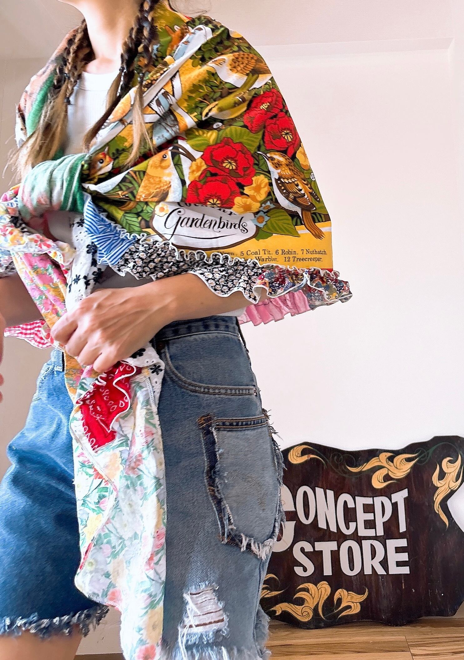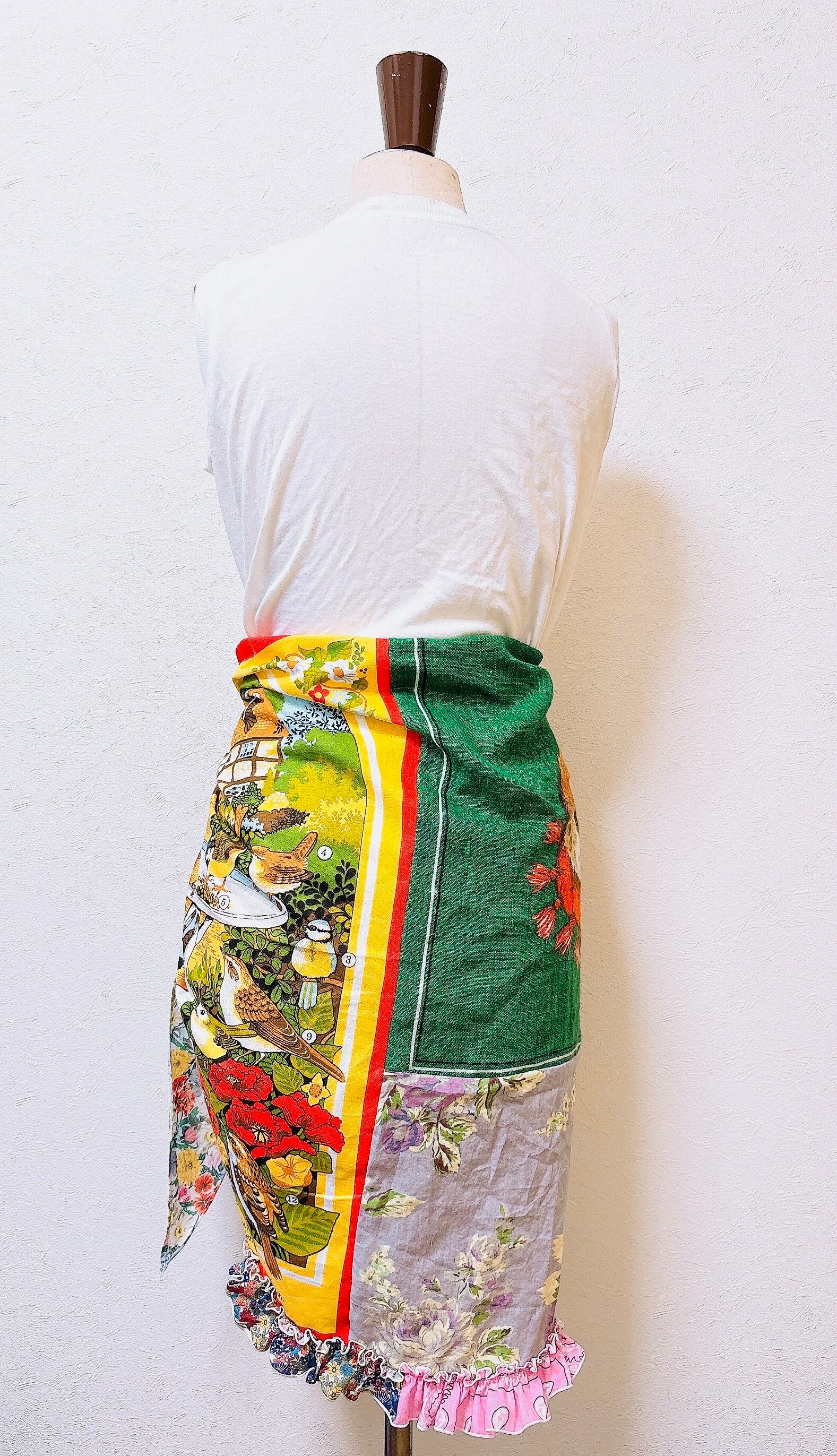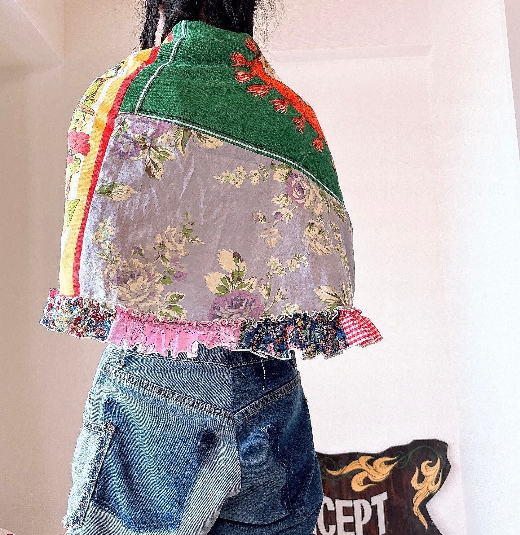 珍しいヨーロッパのヴィンテージタペストリーをはぎ合わせて大判スカーフにしました。