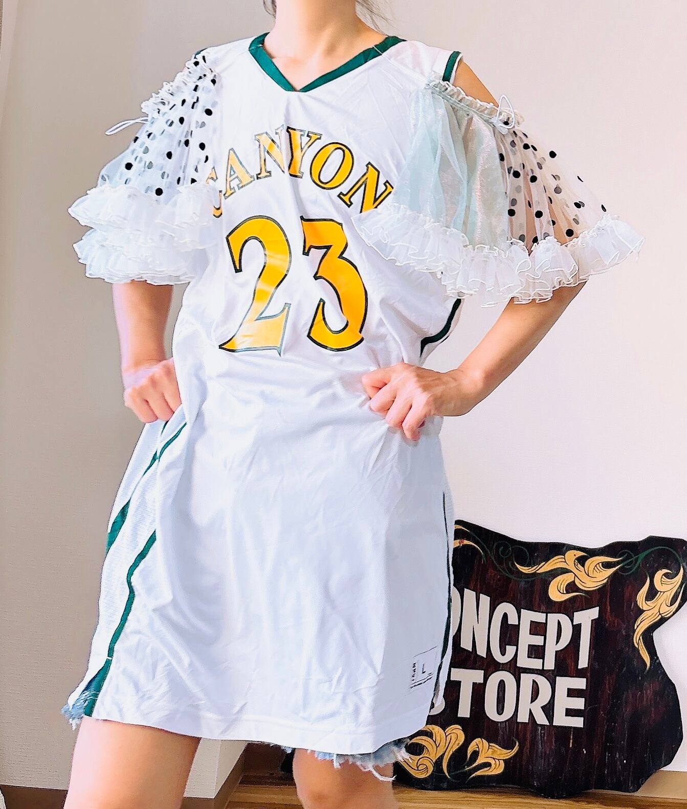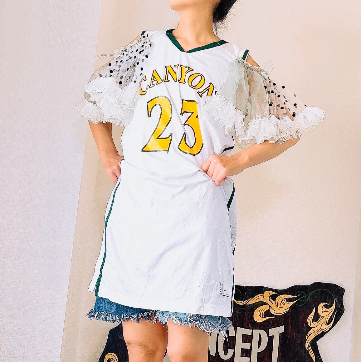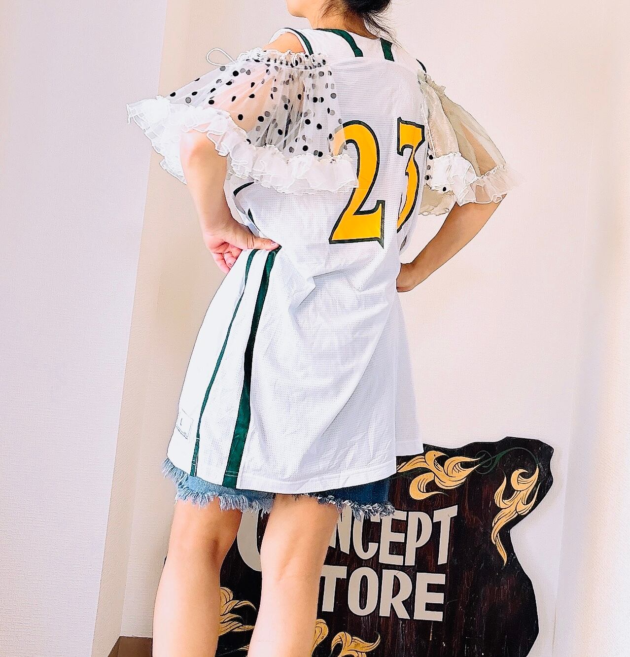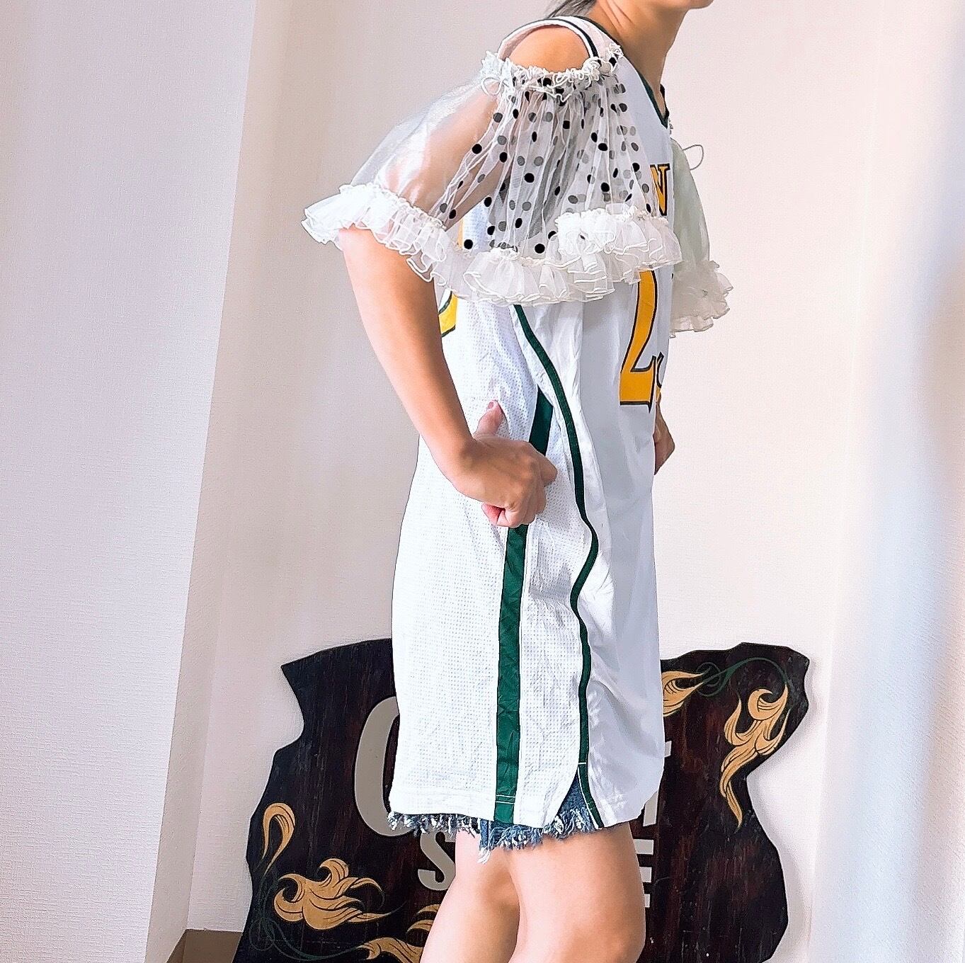 usedのユニホームにチュールの袖をつけました。