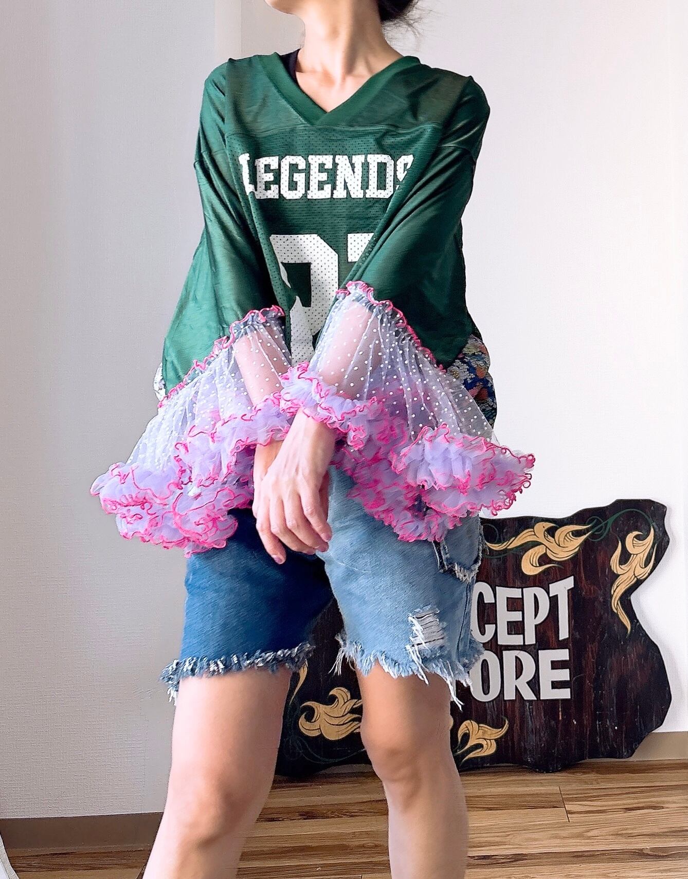 オーバーサイズにしてるから、中に風が通って涼しく着れます。