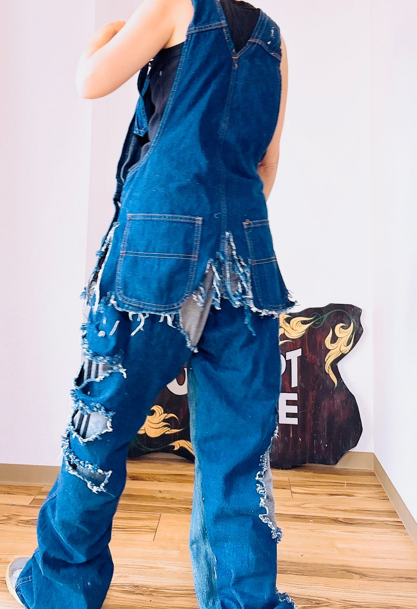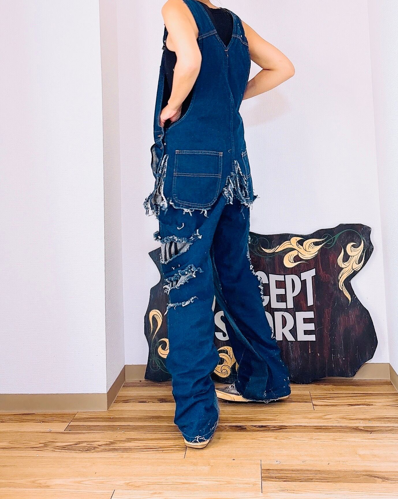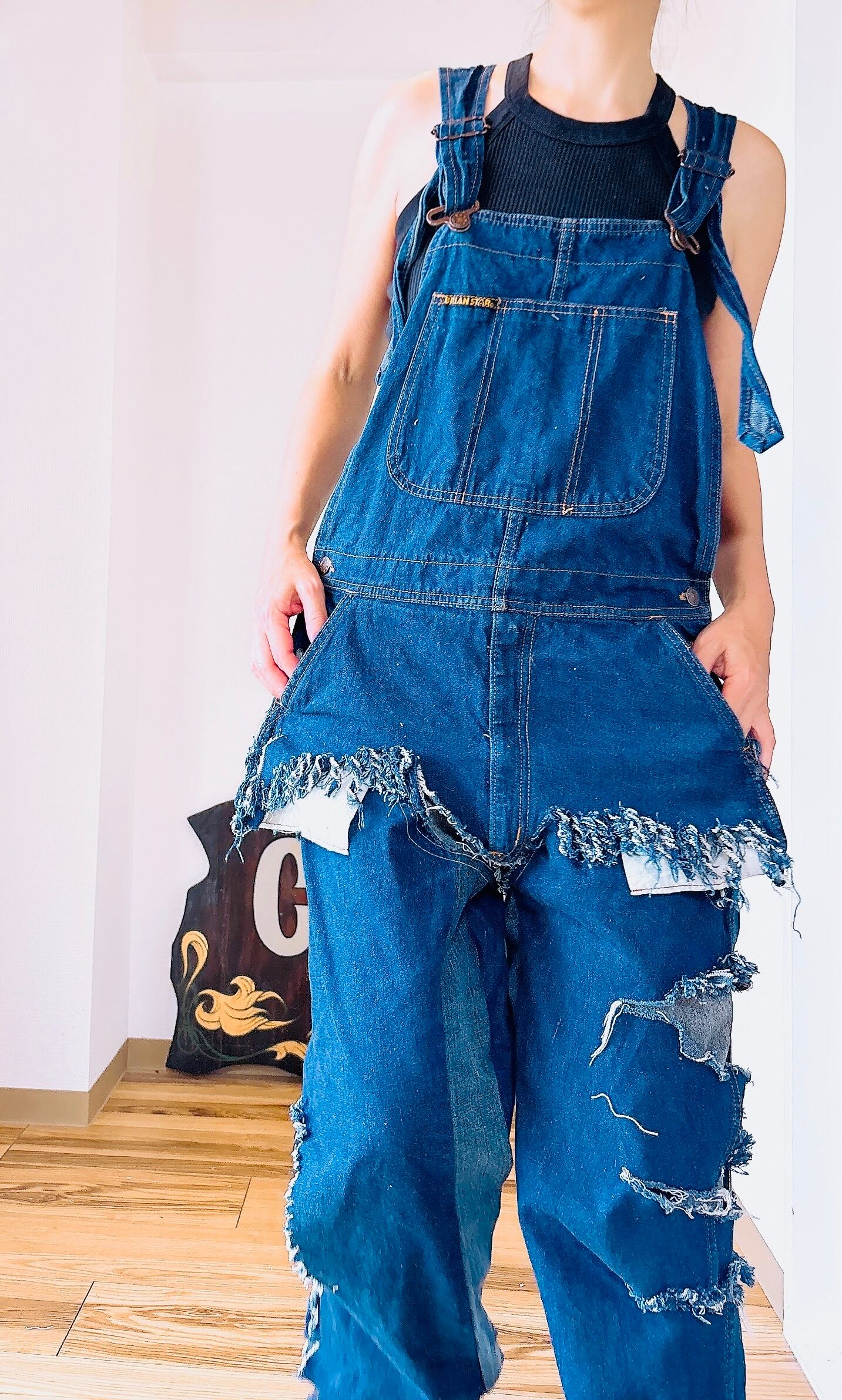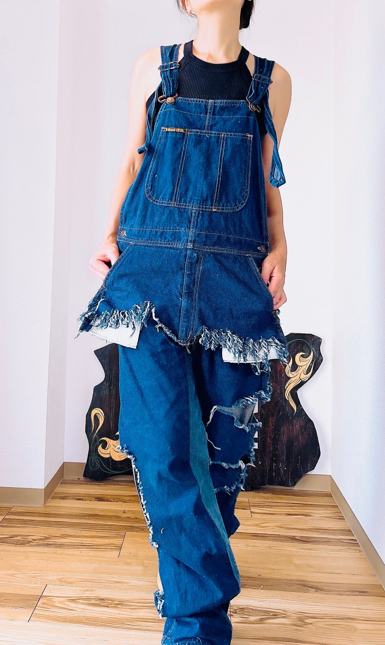 オーバーオールの時、アウターを着ていてもお手洗いが楽なセットアップ。