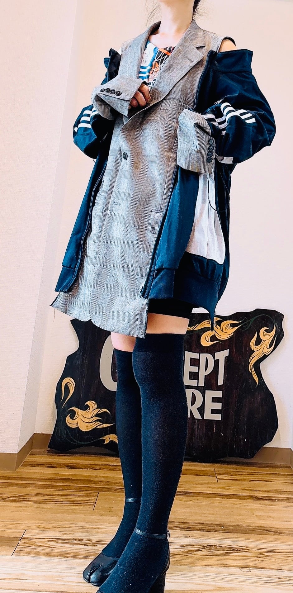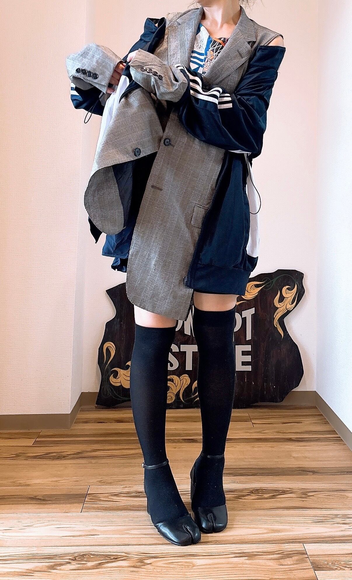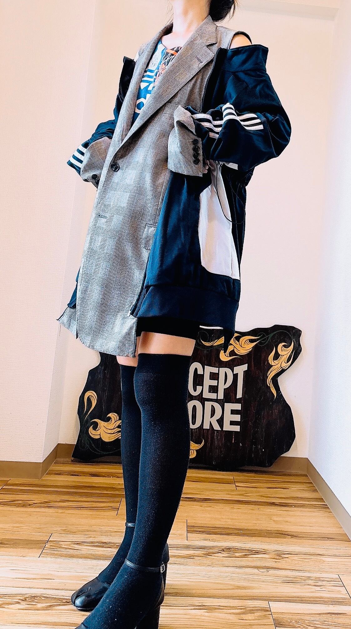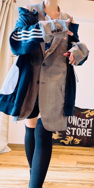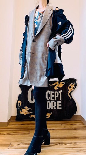 アディのトラックジャケットと古着のテーラーをドッキング。