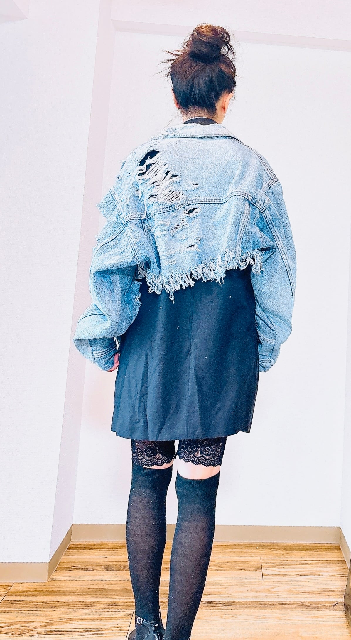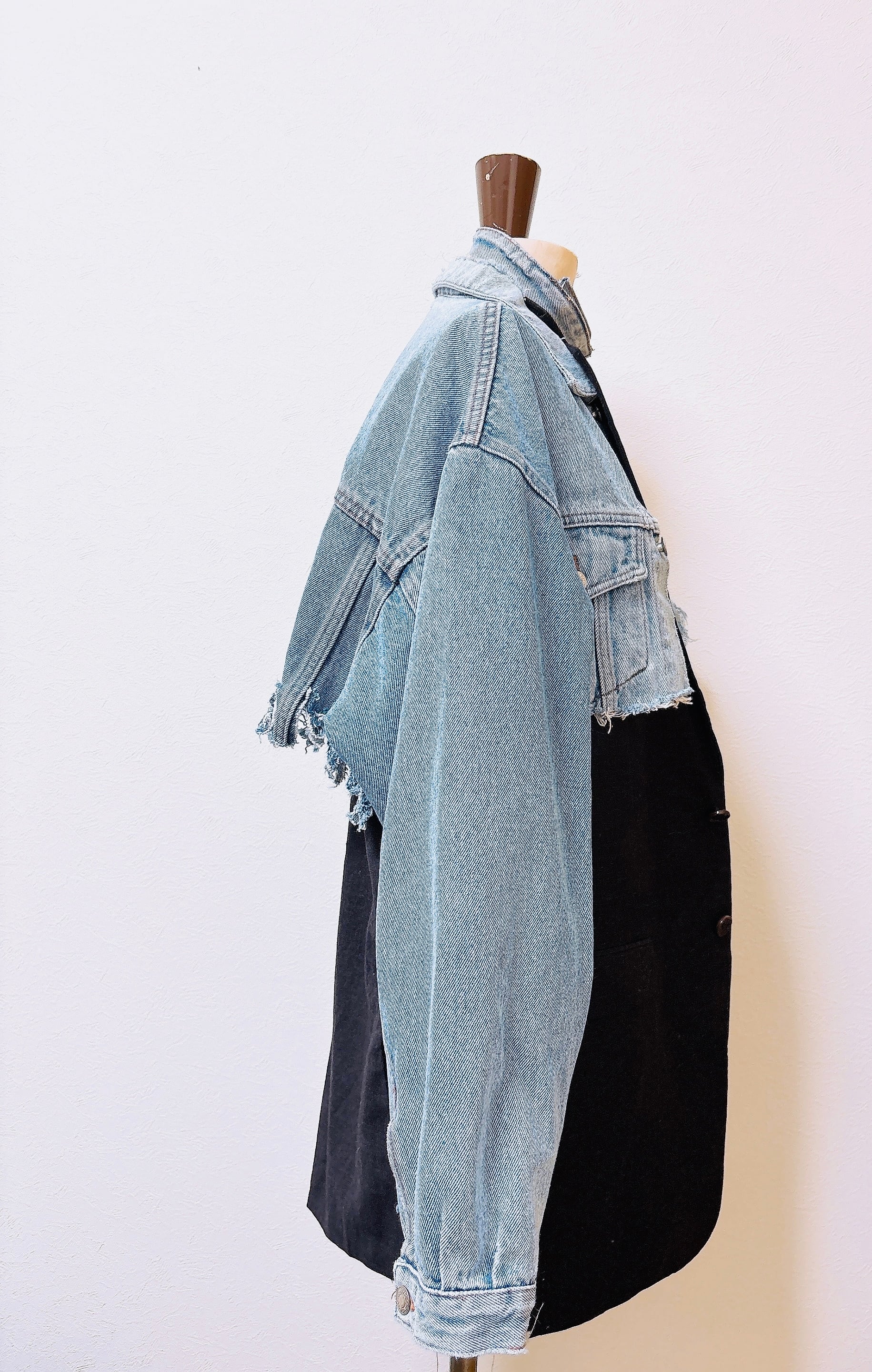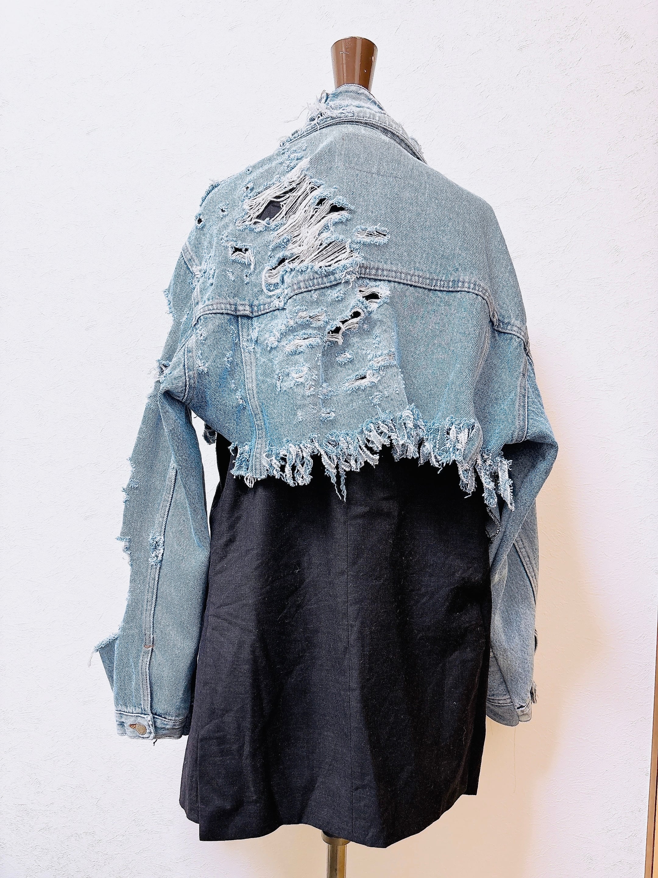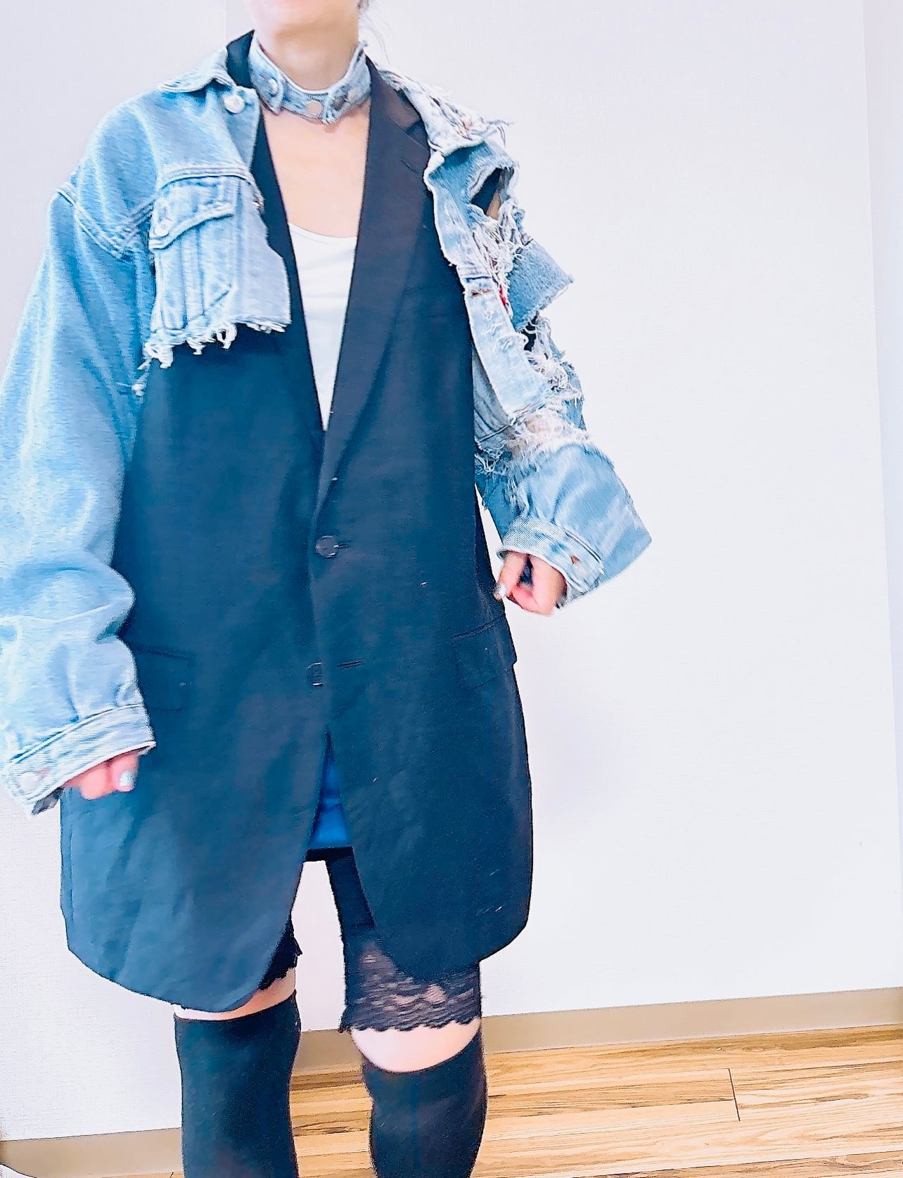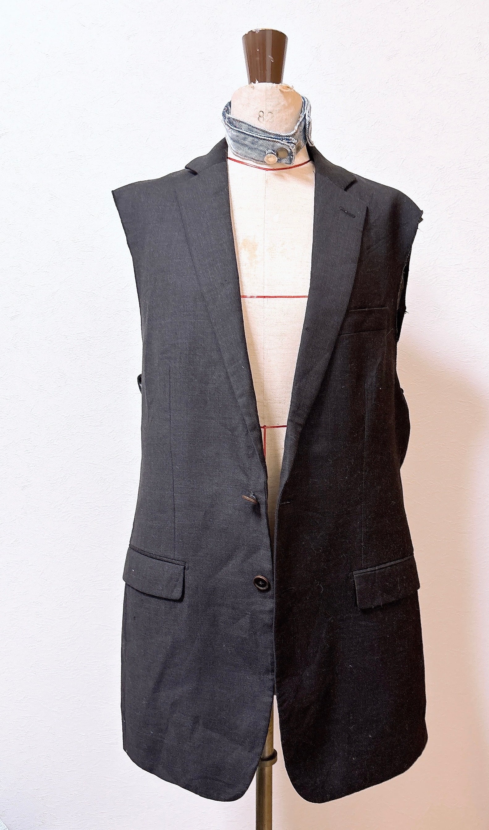 テーラードジャケットの肩パッドを抜いてセットアップにしました。