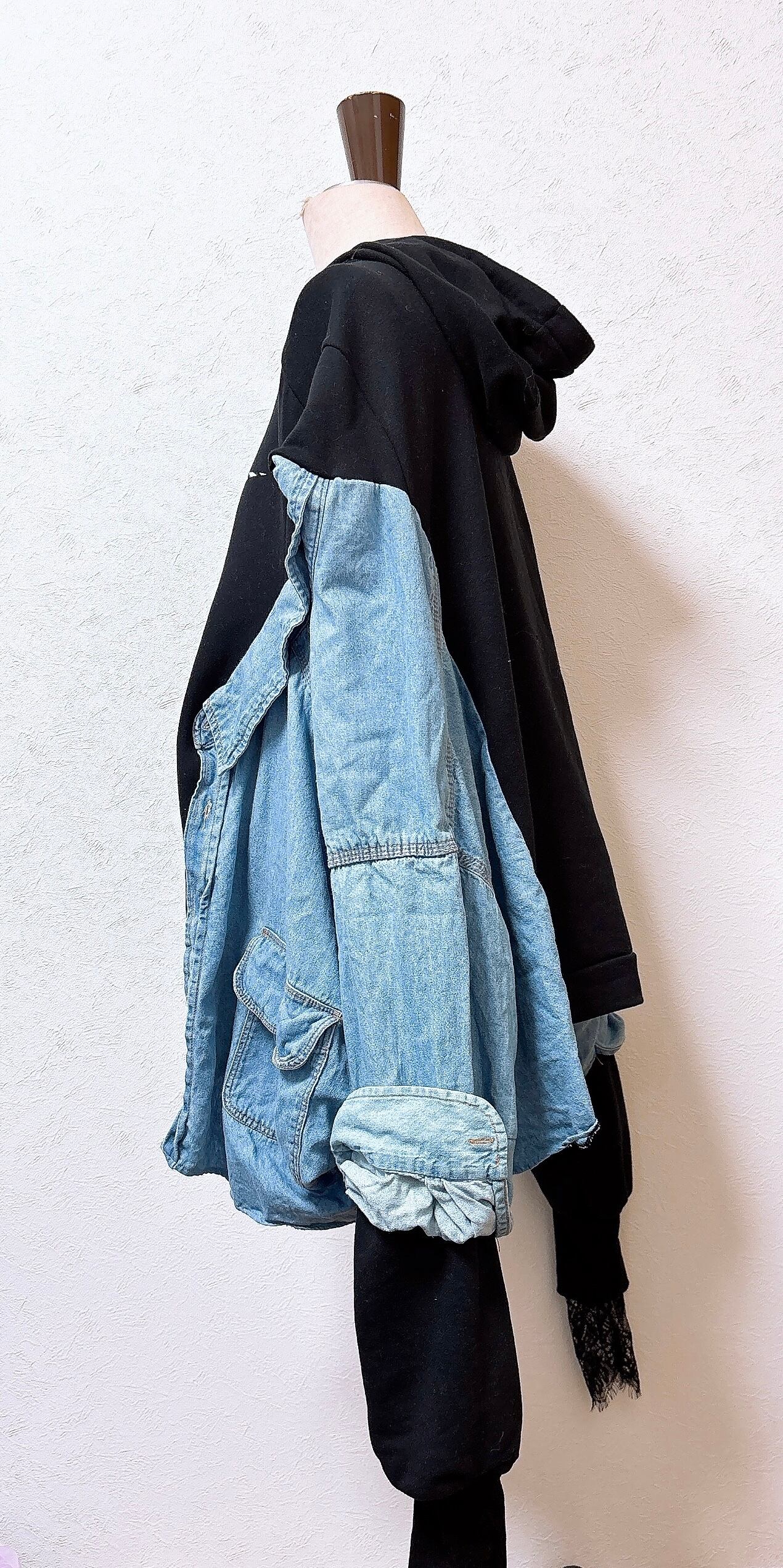 デニム袖は、ミシンで留めつけてあります。