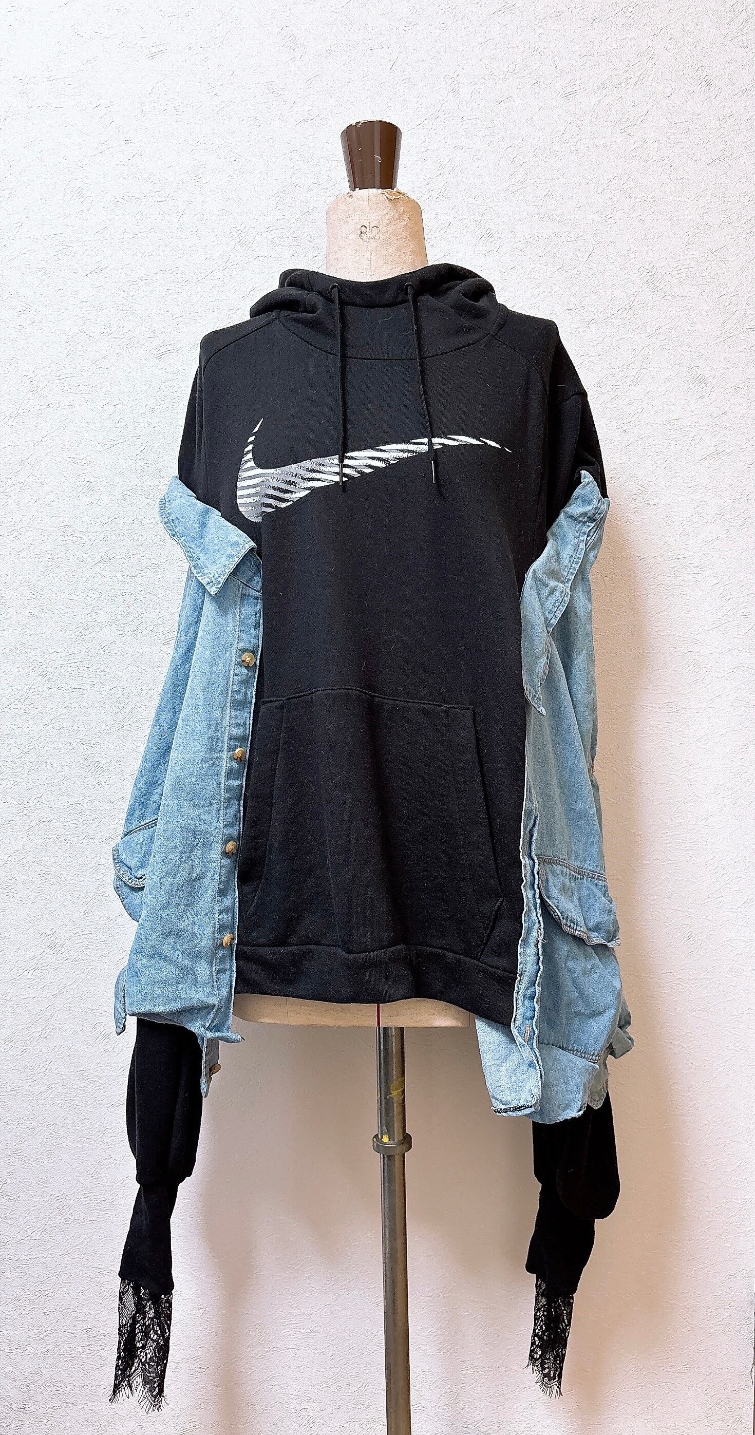 NIKEの古着にデニムシャツをドッキング