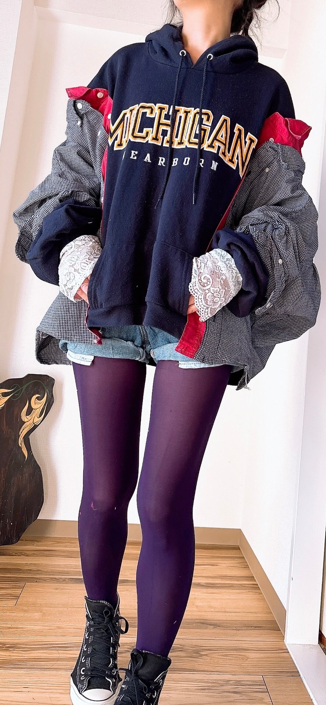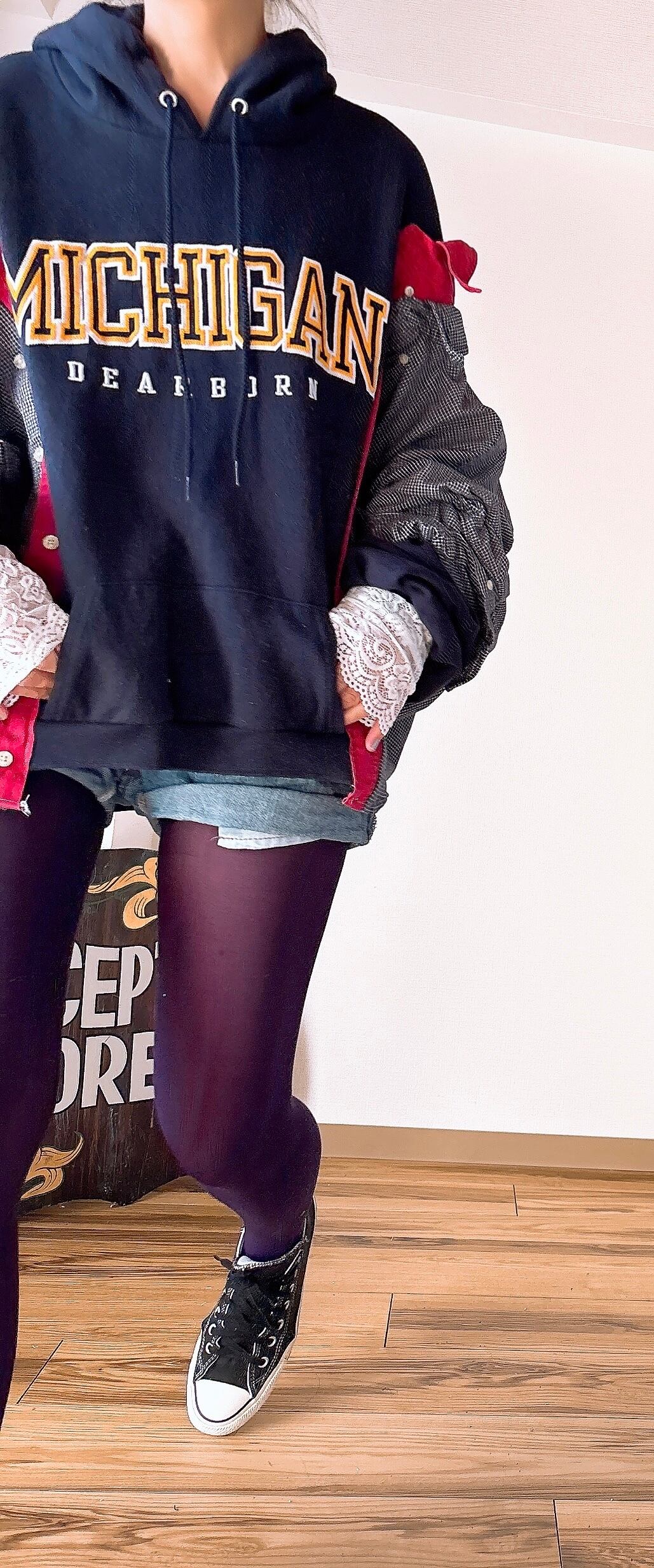 チャンピオンの古着にデニムシャツをドッキング