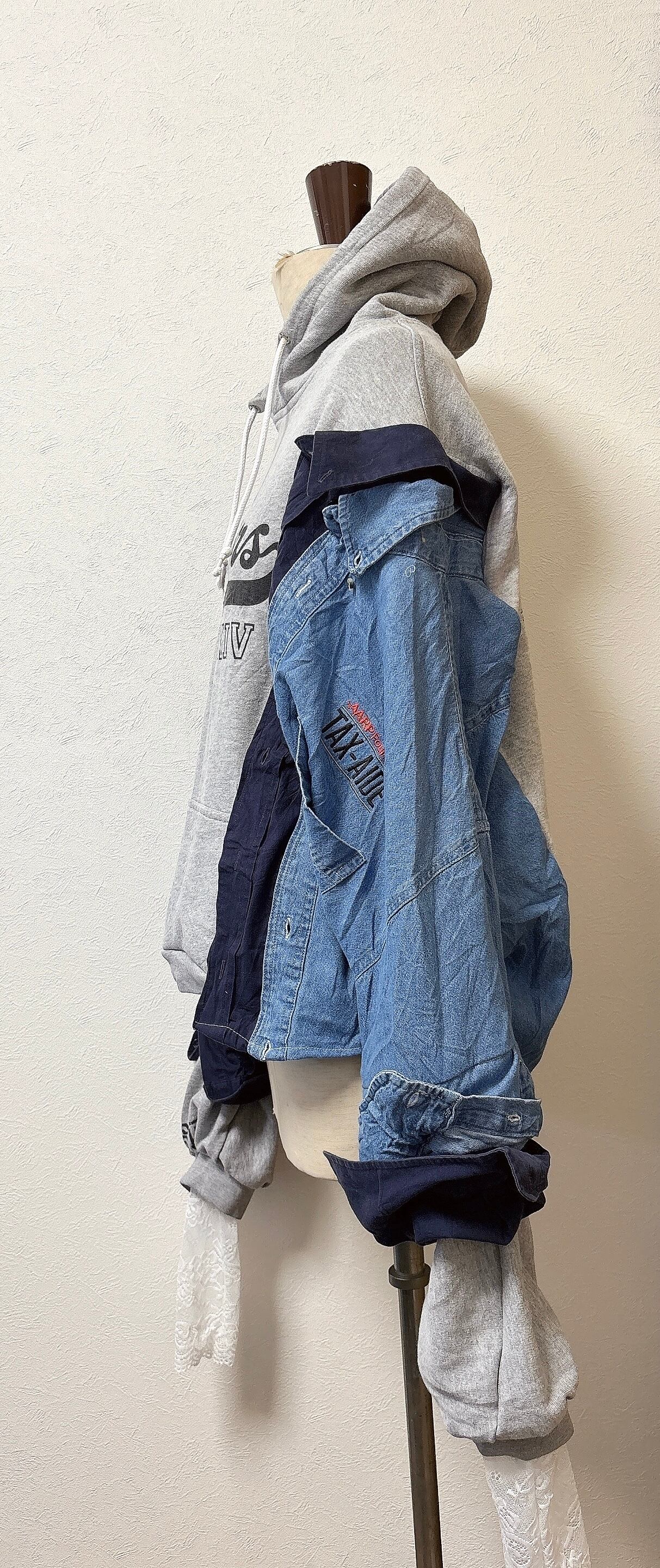 usaの古着にデニムシャツをドッキング