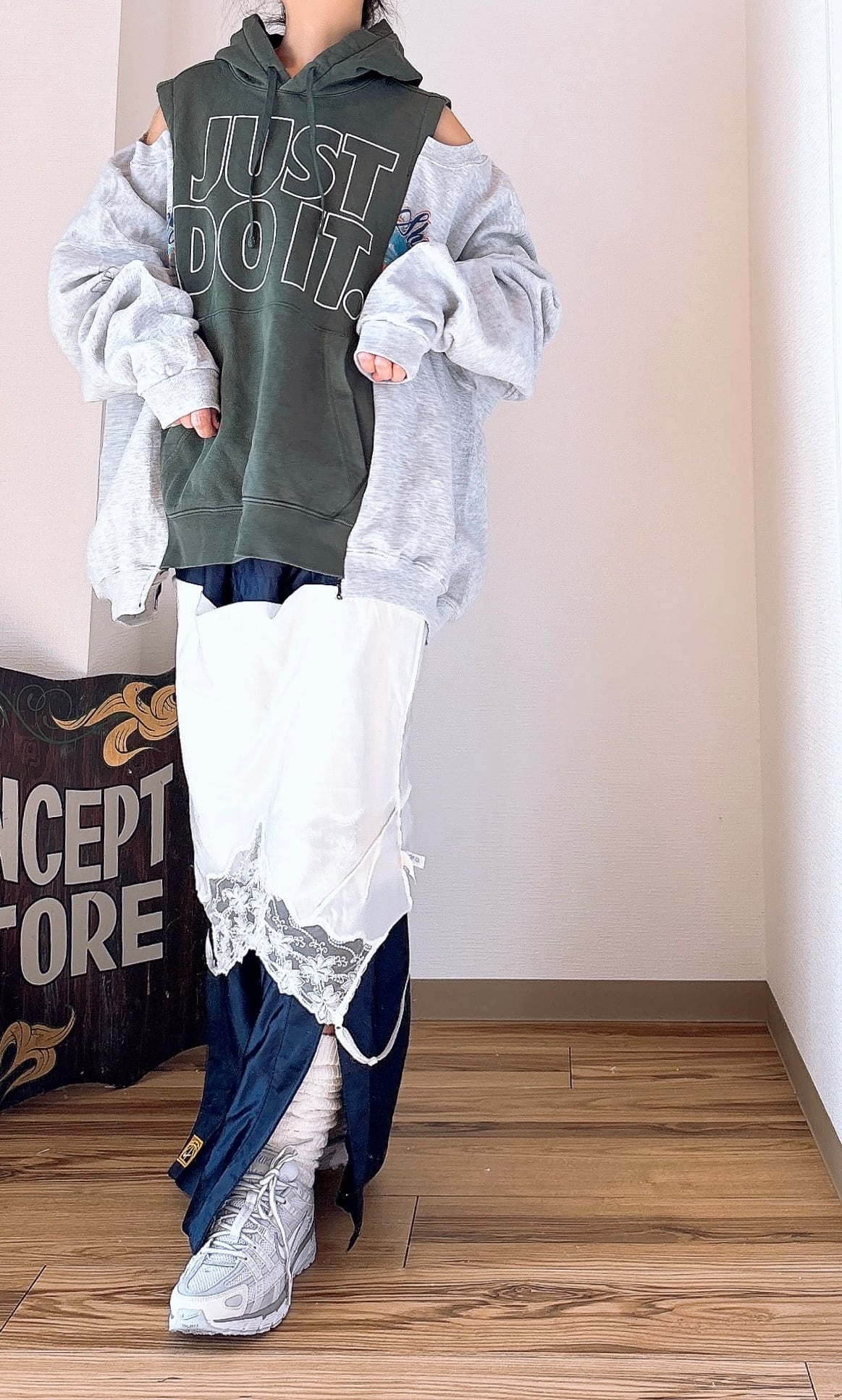 オーバーサイズのスウェットで、着痩せ効果抜群だから重宝します。