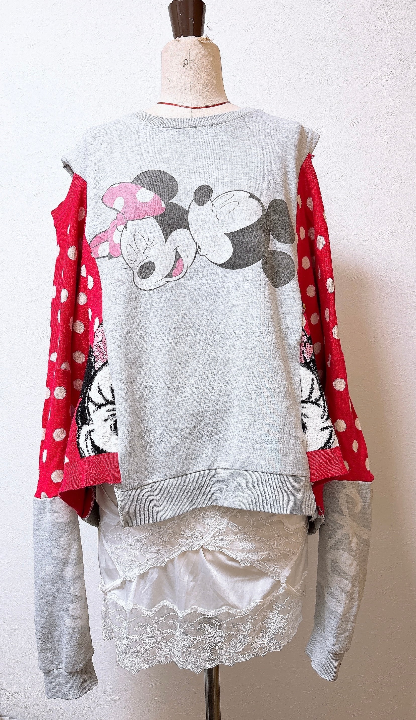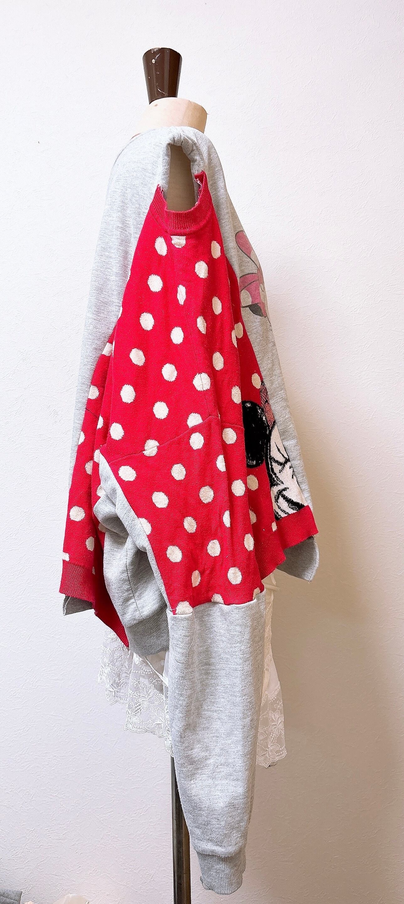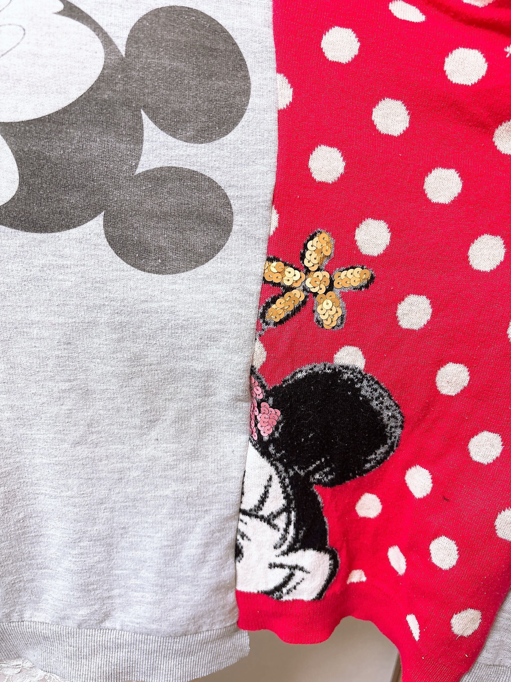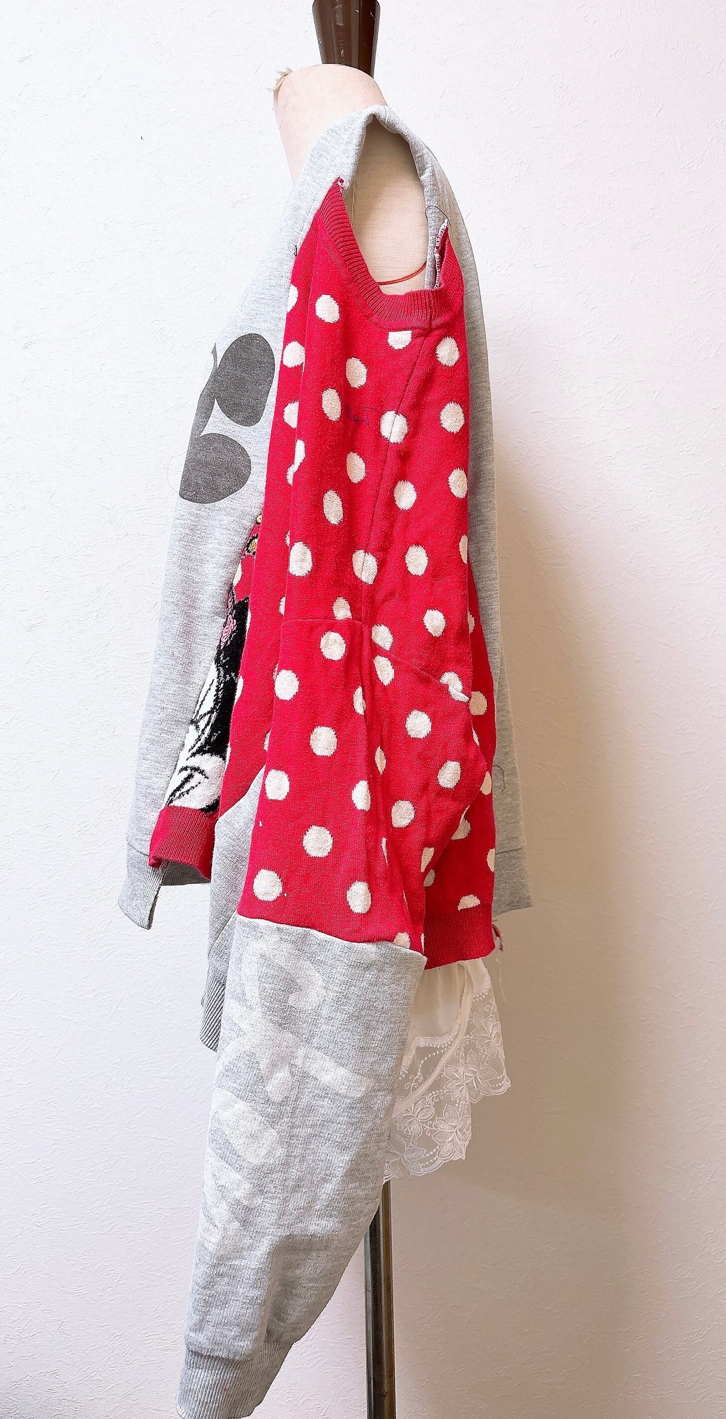 レアなねずマウスのスウェットとドットのニットをドッキング。
