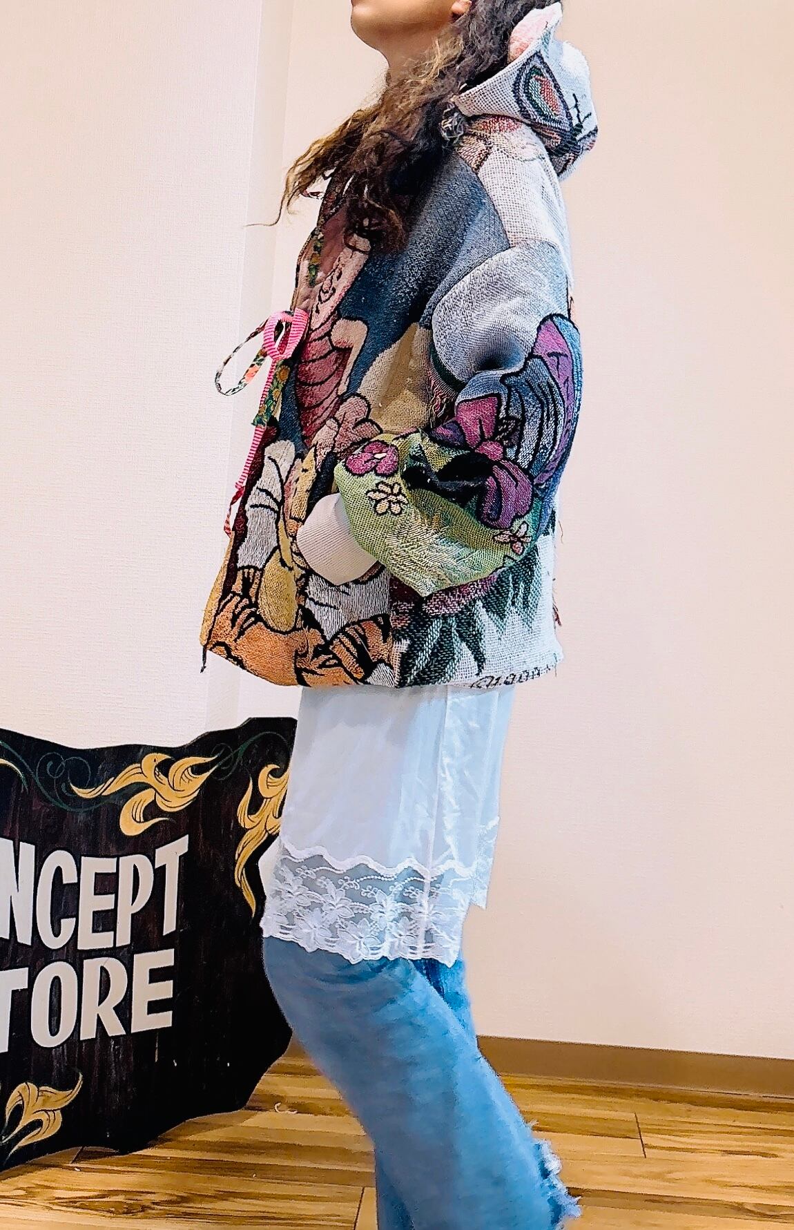 usa製のヴィンテージラグで作った、誰とも被らない1点もの。