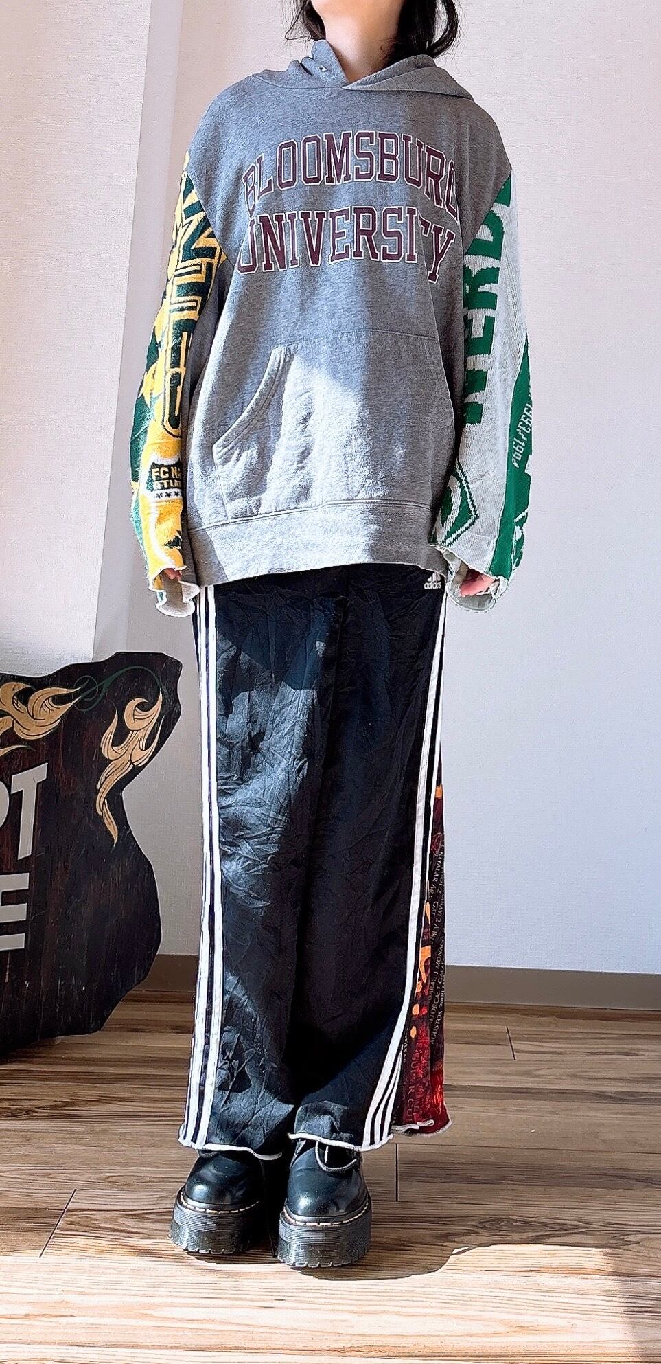 横から見たら形が綺麗で、オーバーサイズだけどシルエット綺麗なリメイクです。