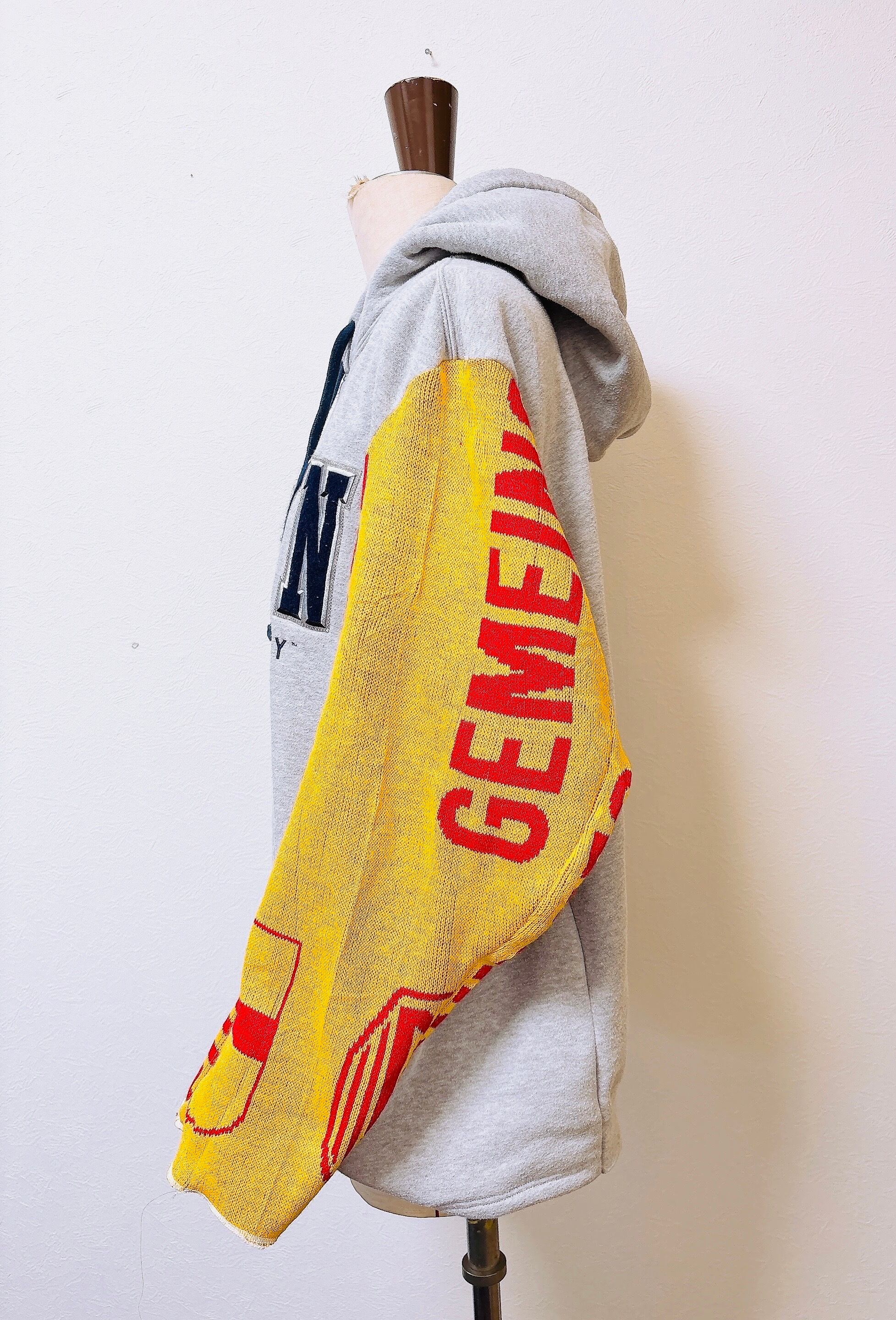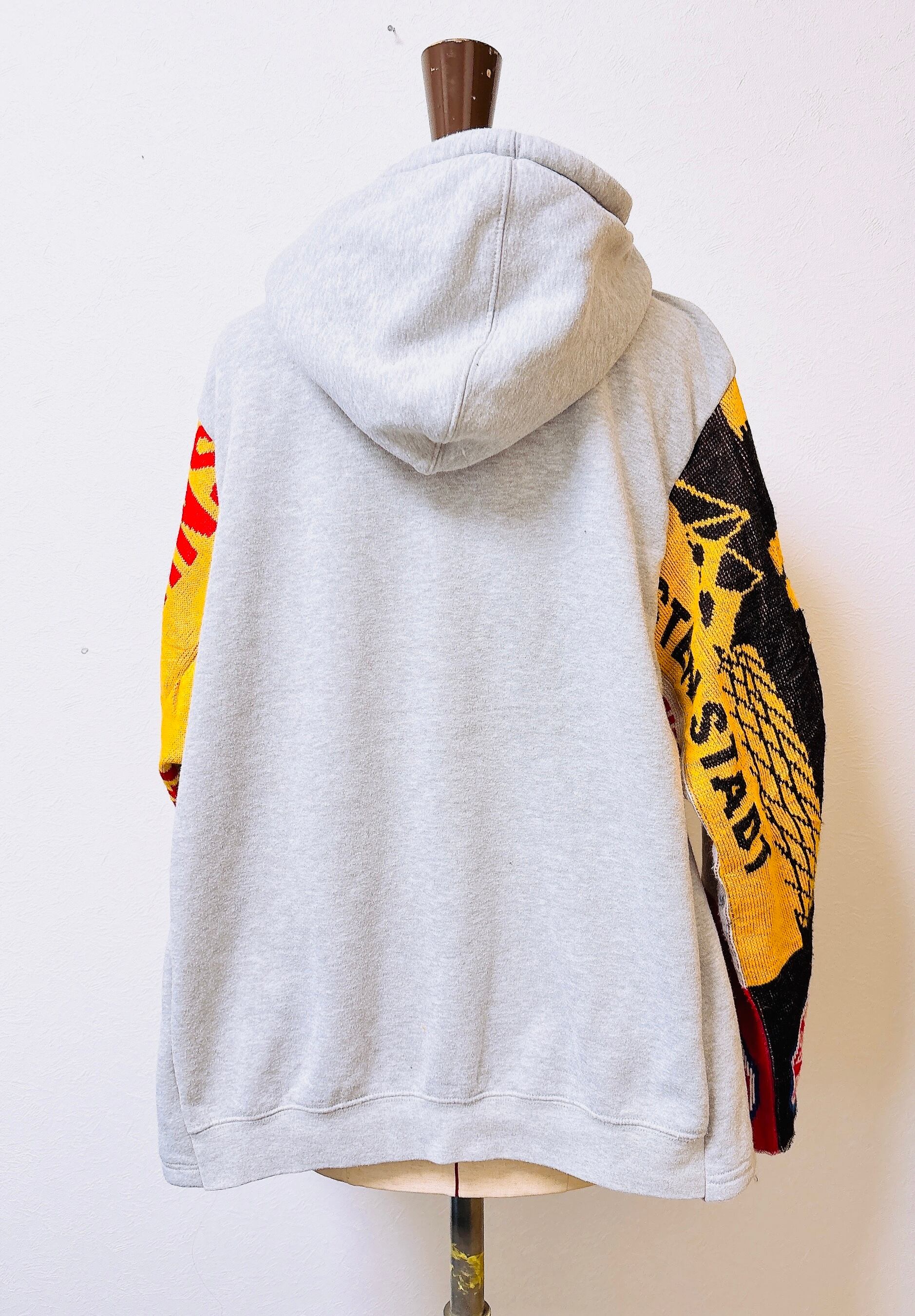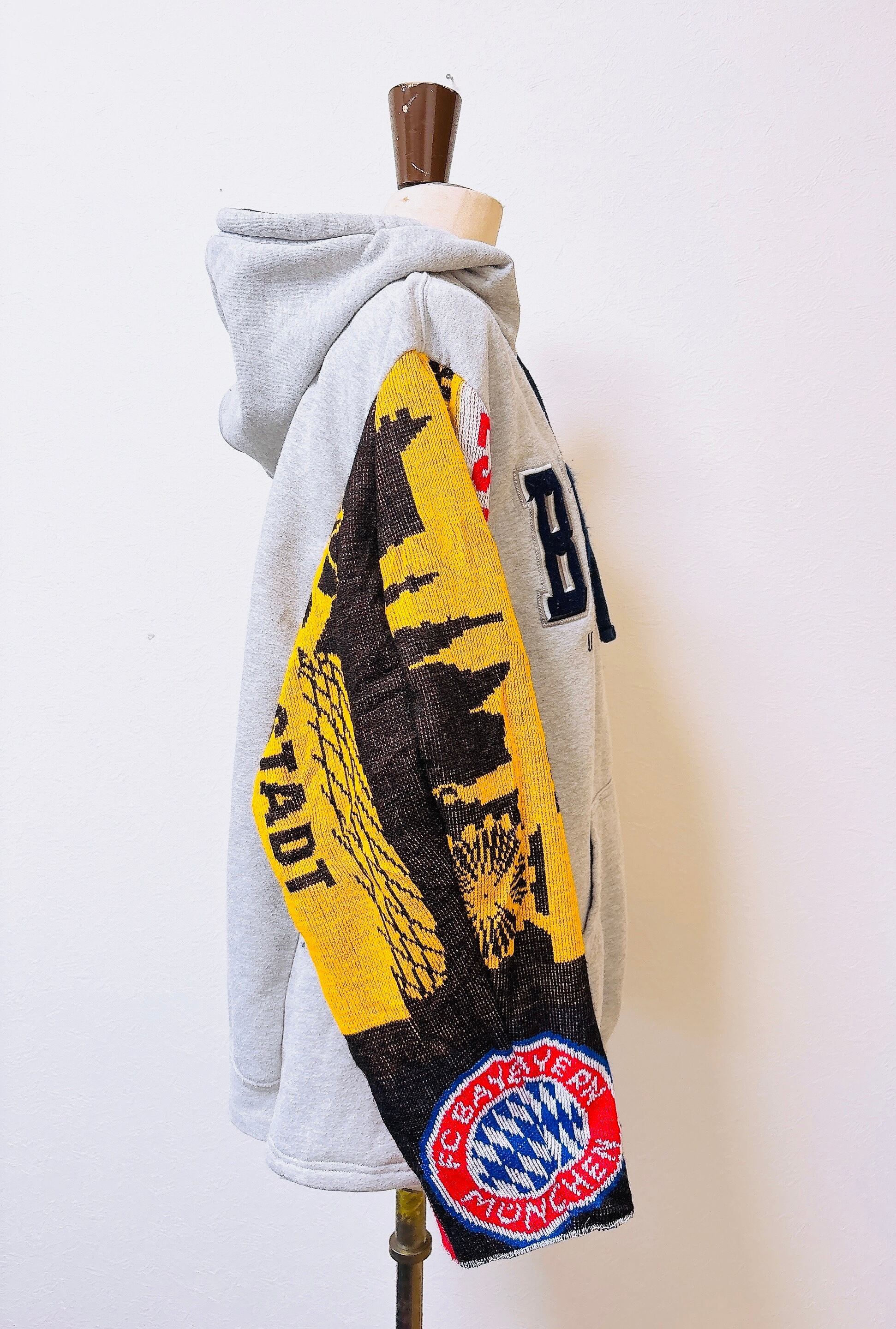 usedのサッカーマフラーにusedスウェットをドッキング、二枚袖仕立てにして、