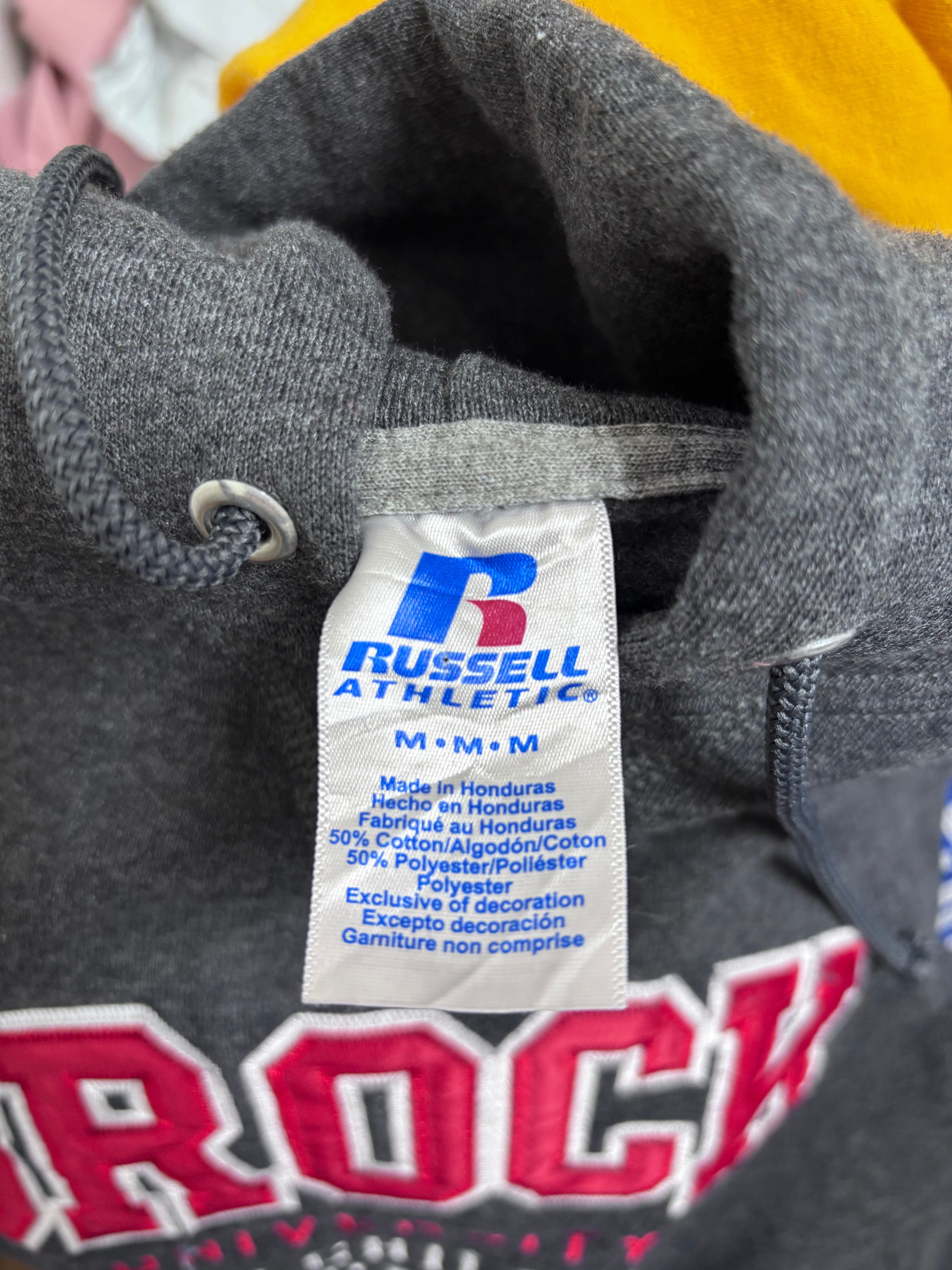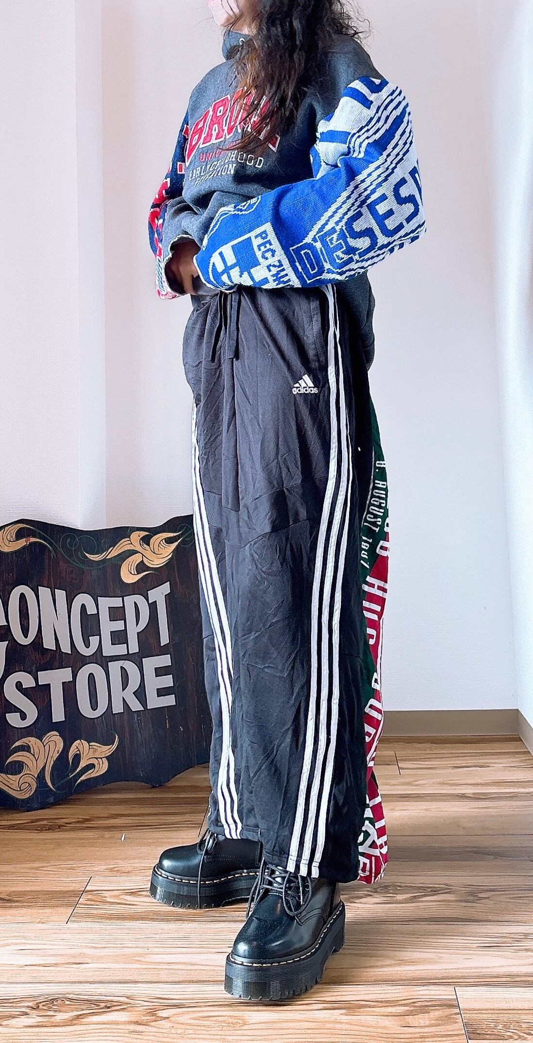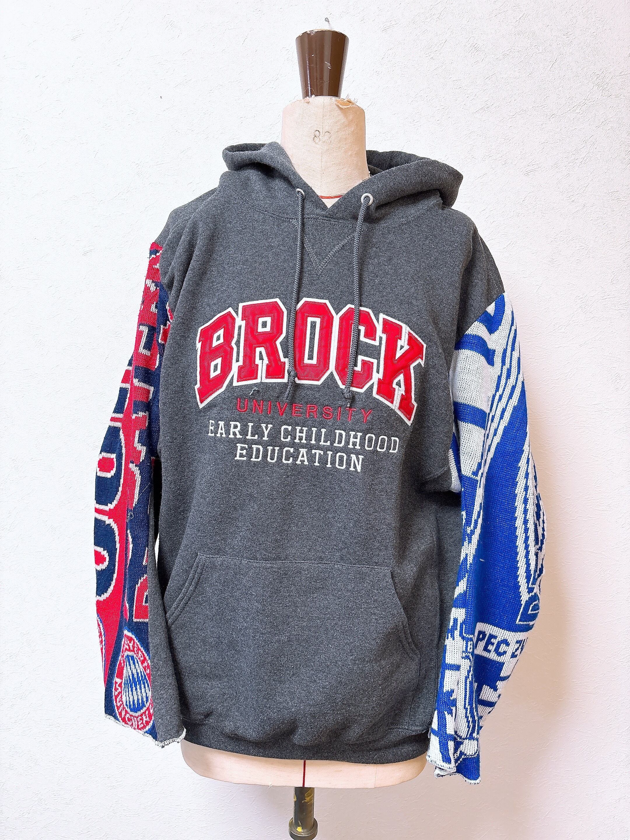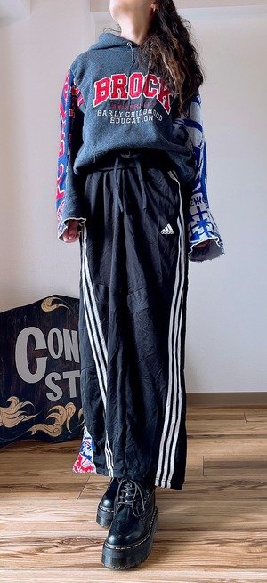 usedのサッカーマフラーにusedのRussellスウェットをドッキング、二枚袖仕立てにして、