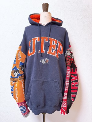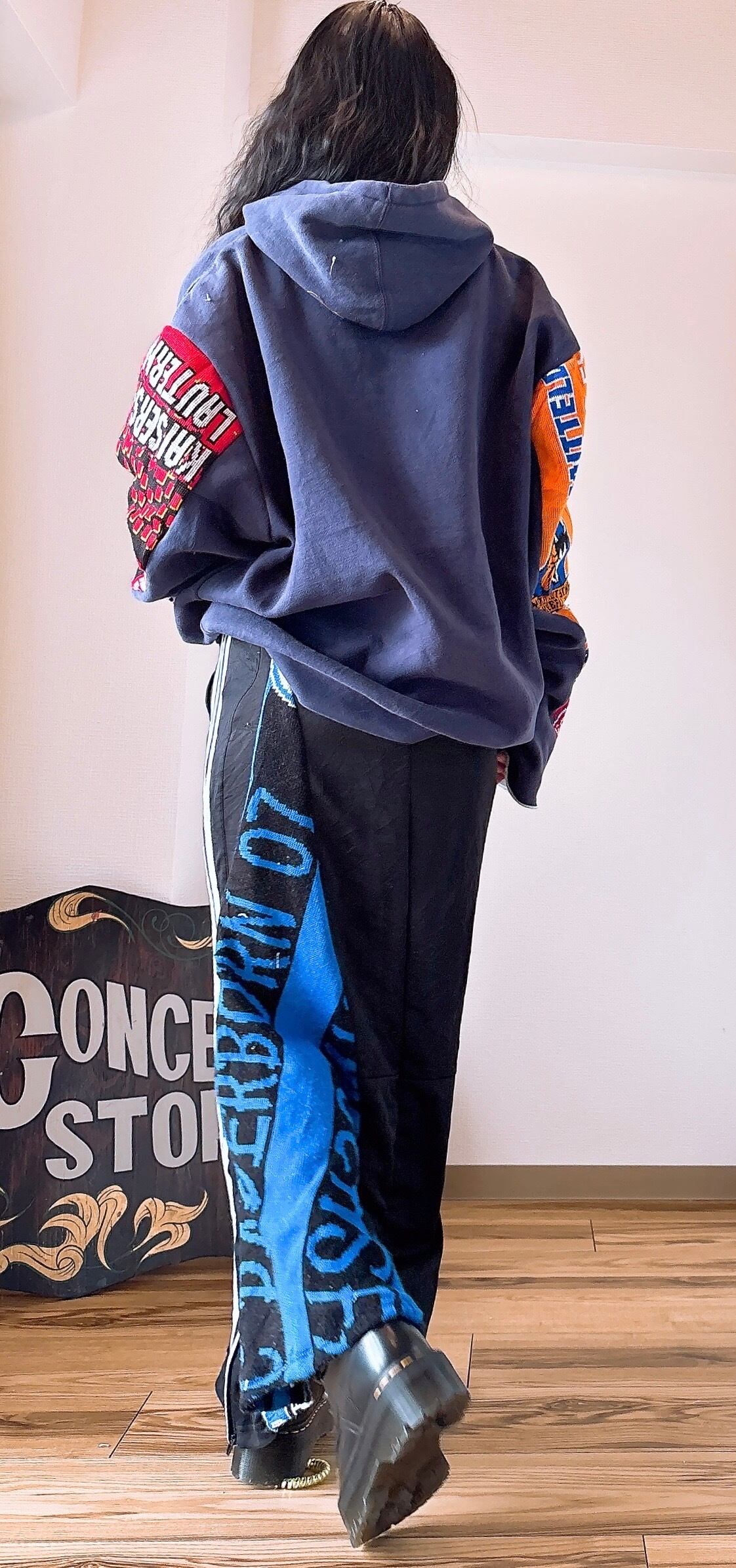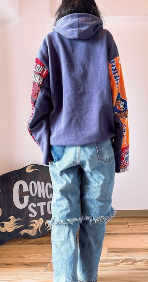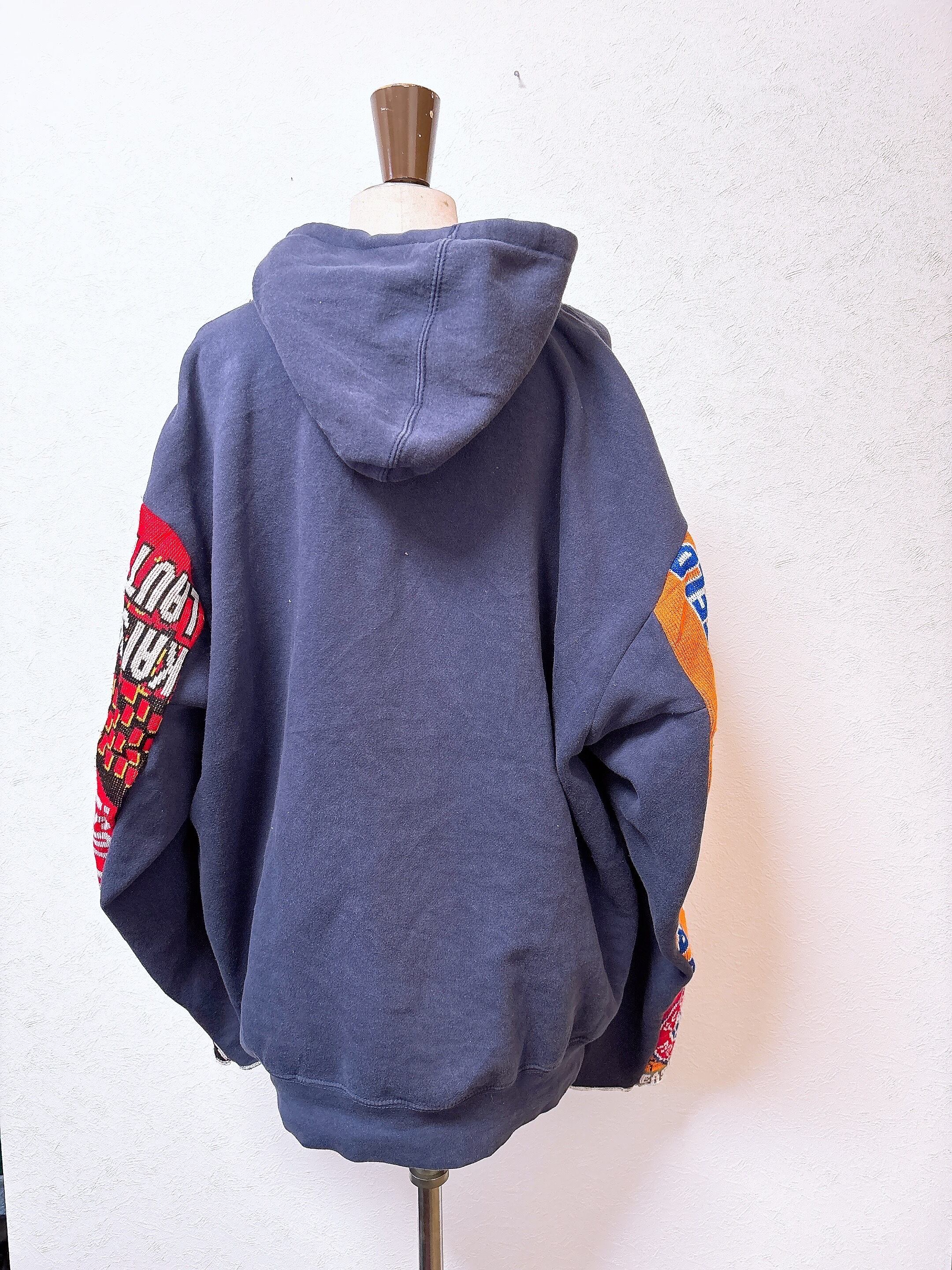usedのサッカーマフラーにusedスウェットをドッキング、二枚袖仕立てにして、