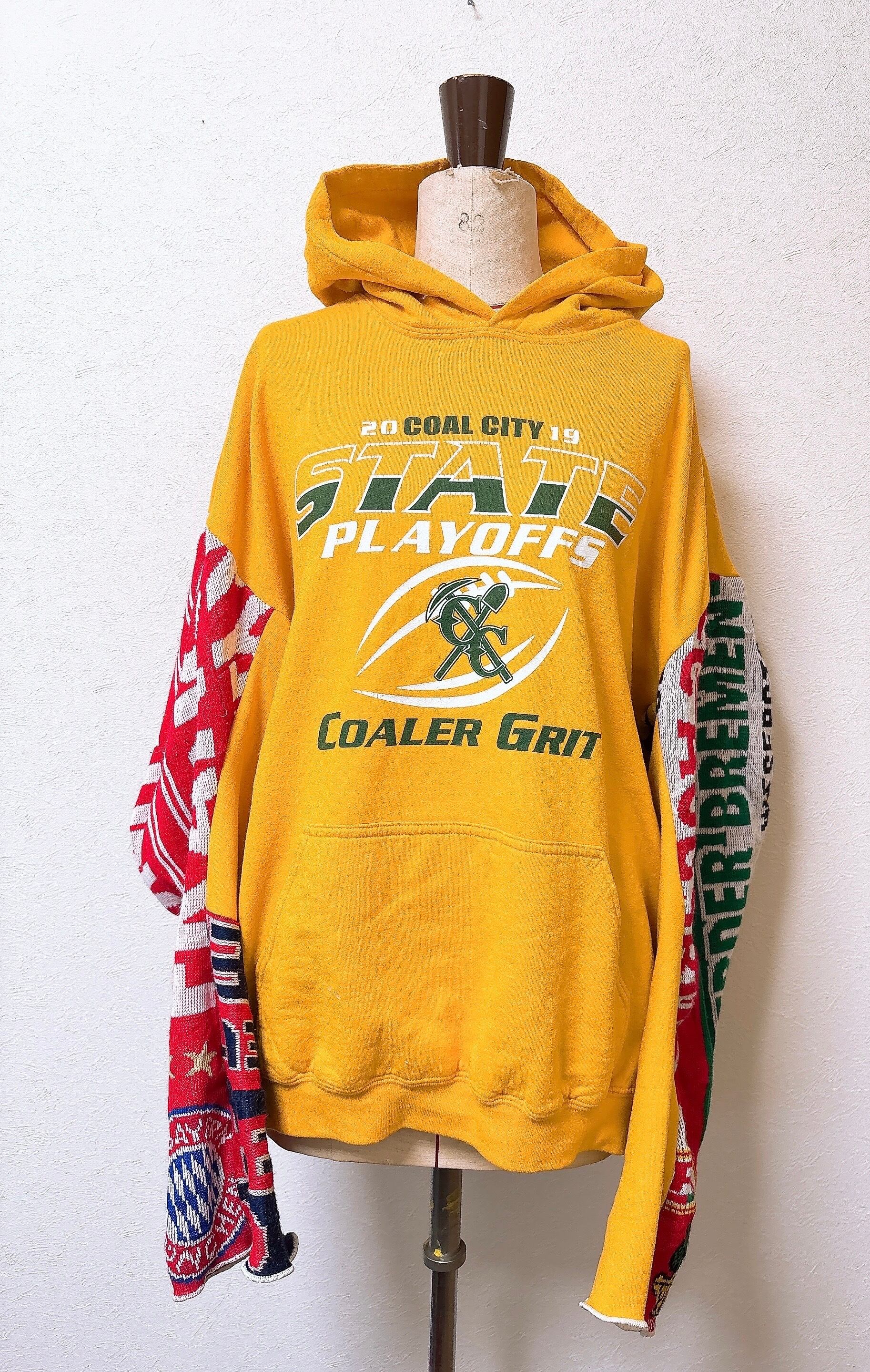 usedのサッカーマフラーにusedスウェットをドッキング、二枚袖仕立てにして、