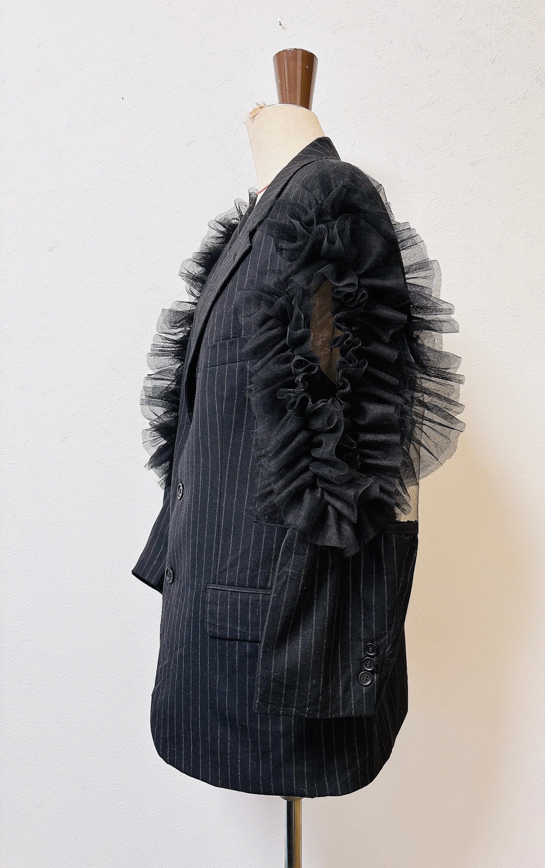 シンプルながらも洗練されたデザインは、カジュアルなスタイルからフォーマルなシーンまで幅広く対応。肩や腕のラインを巧みに引き立て、どんなコーディネートにも華やかさを添えます。