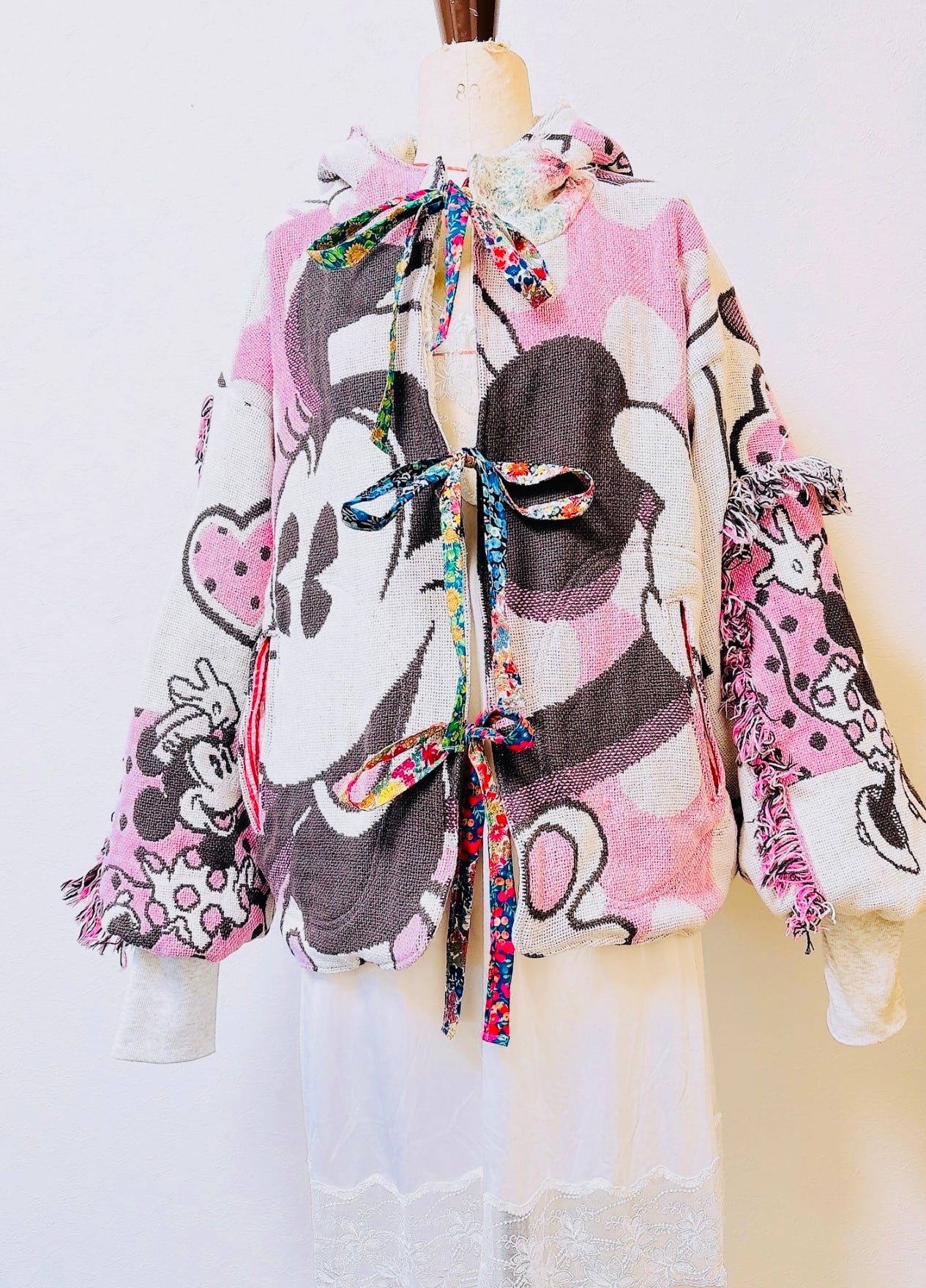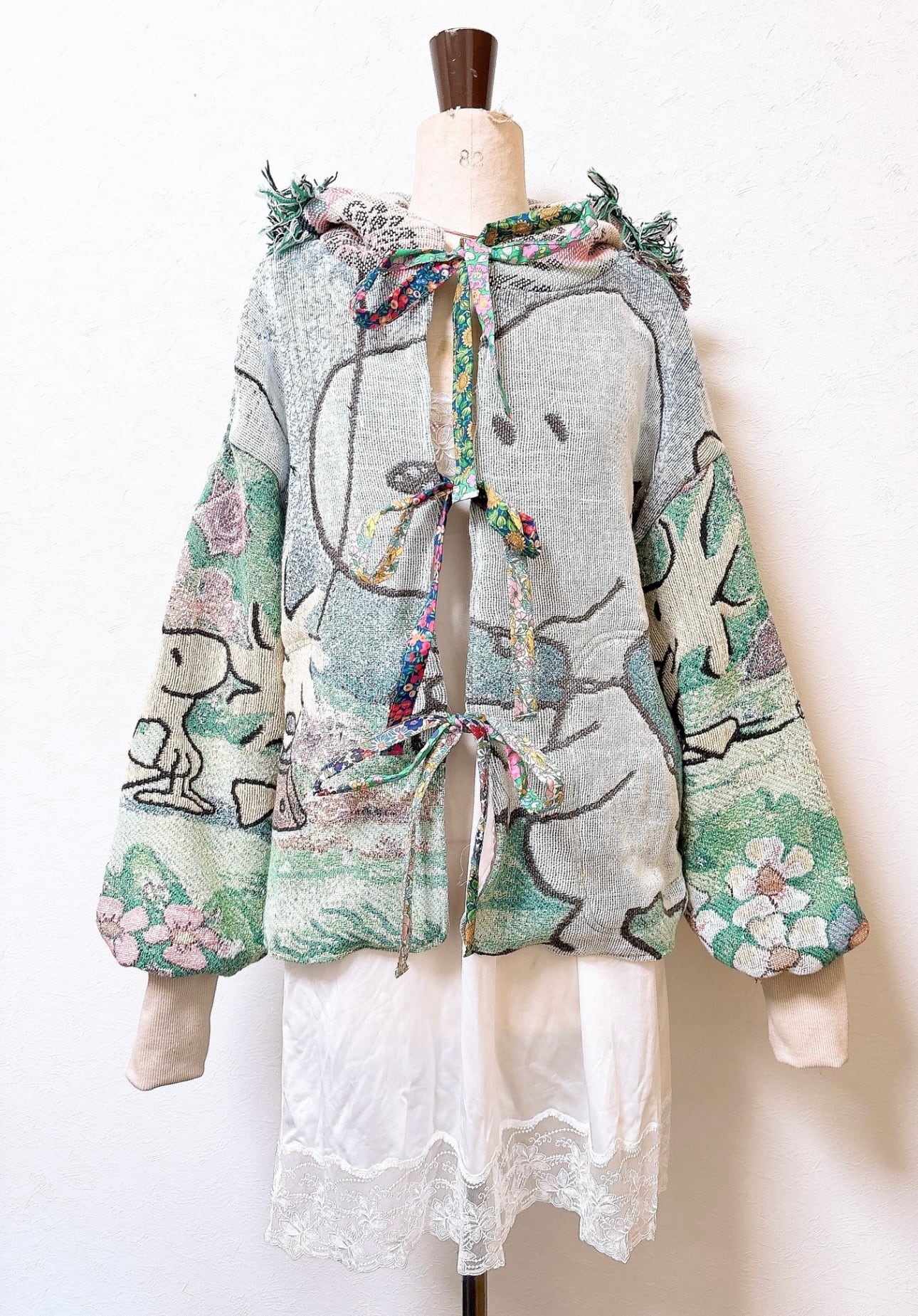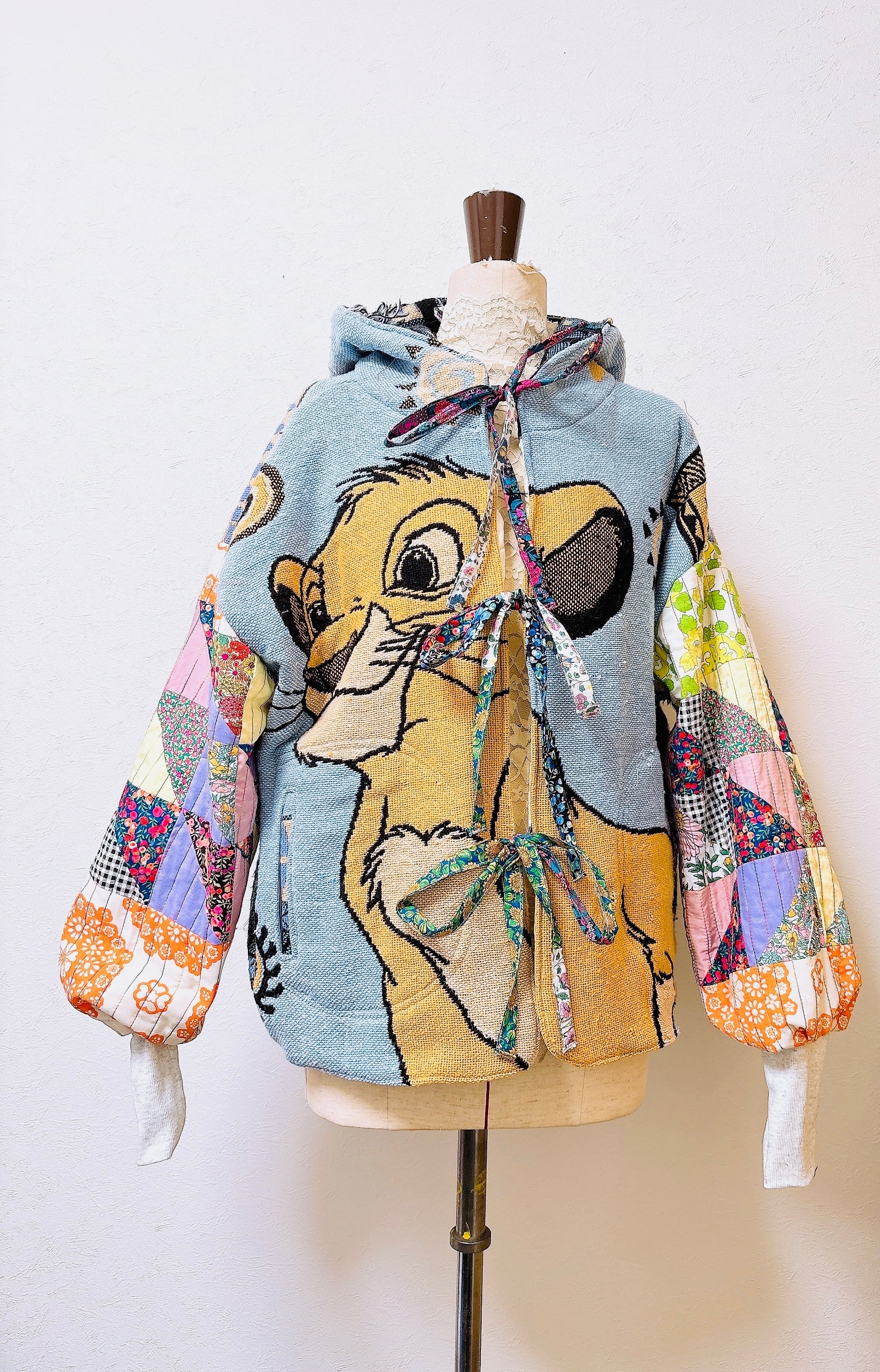 袖や後ろ身は、生地足りないときに同系色のパッチワークになる場合もあります。