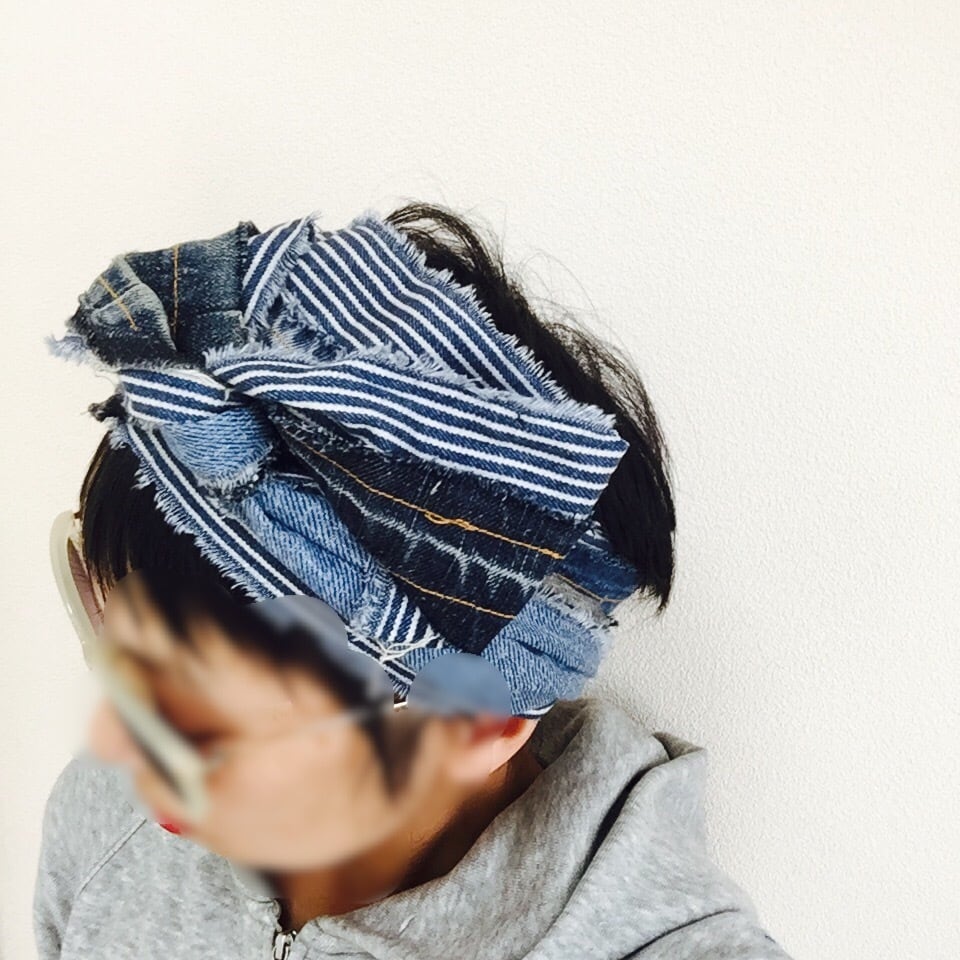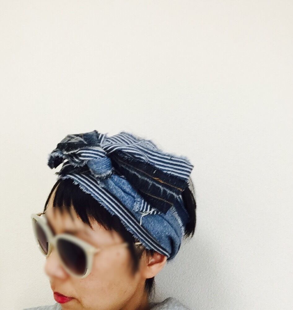 受注生産ワイヤー入りターバン、ヒッコリーとデニムパーツ
