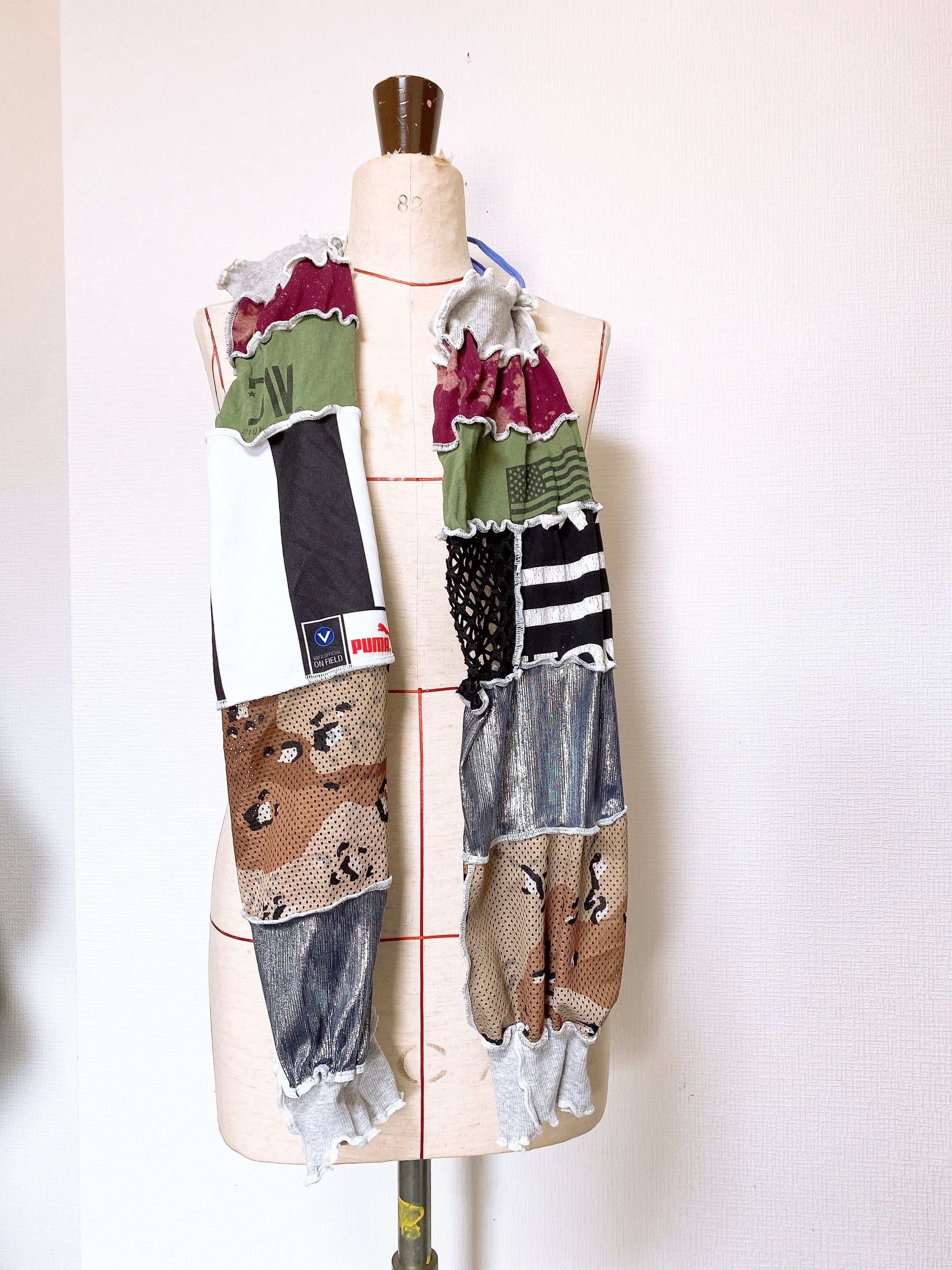 ボリューミーなワンピとお揃いの生地を使用したアームウォーマー付きで