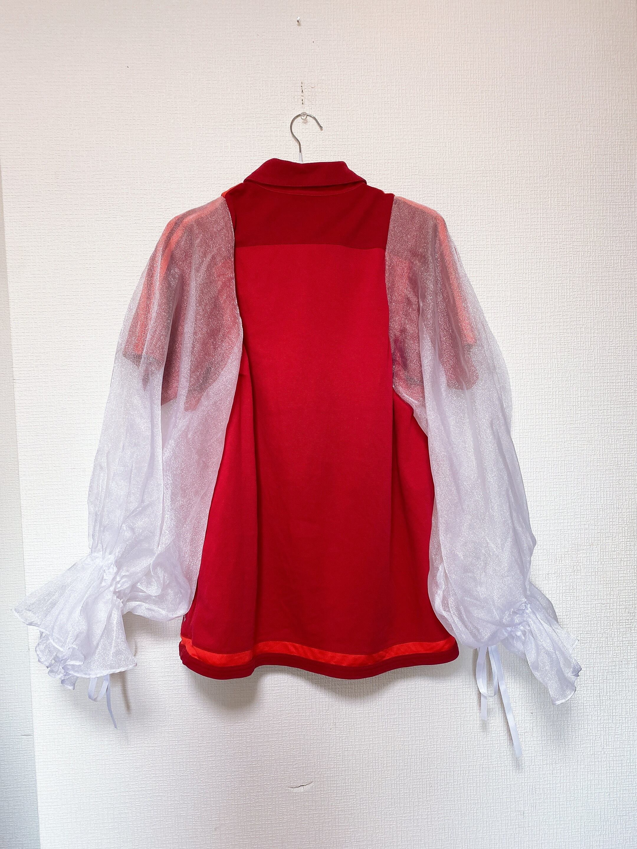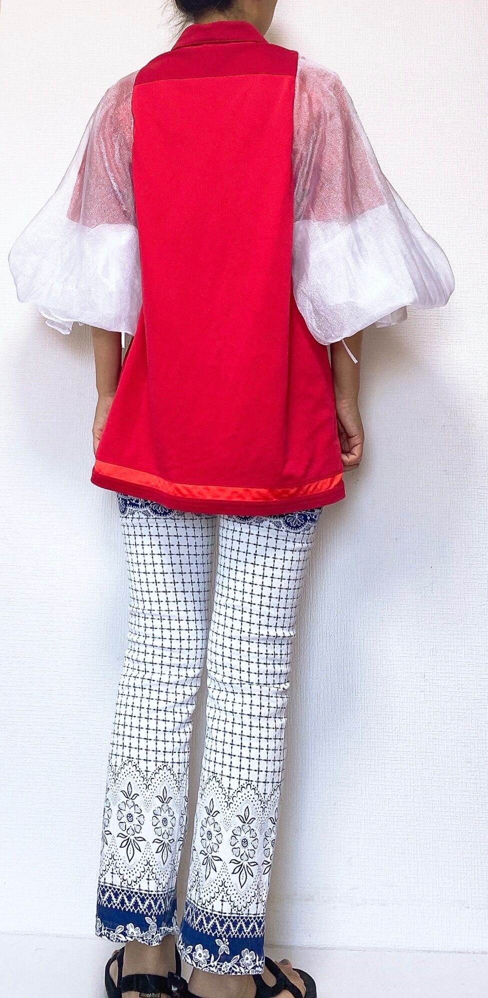 袖口はゴムとリボンでサイズ調整可能、長袖でも、肘までまくっても着れます。