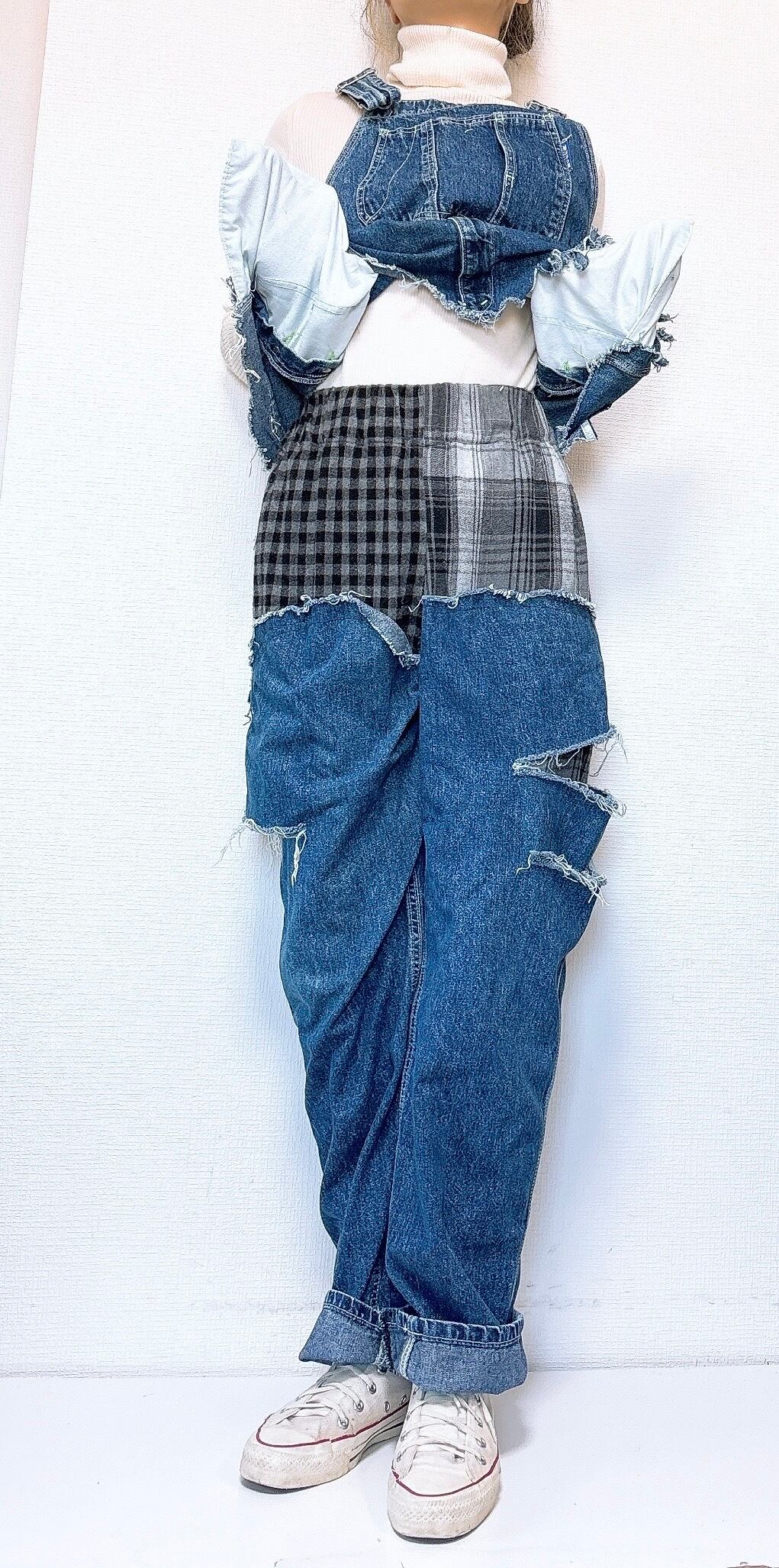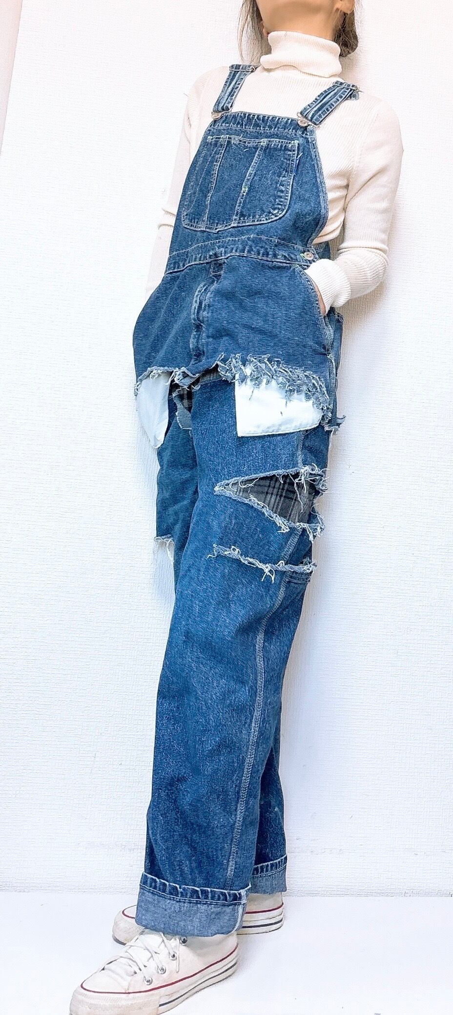 オーバーオールの時、アウターを着ていてもお手洗いが楽なセットアップ。