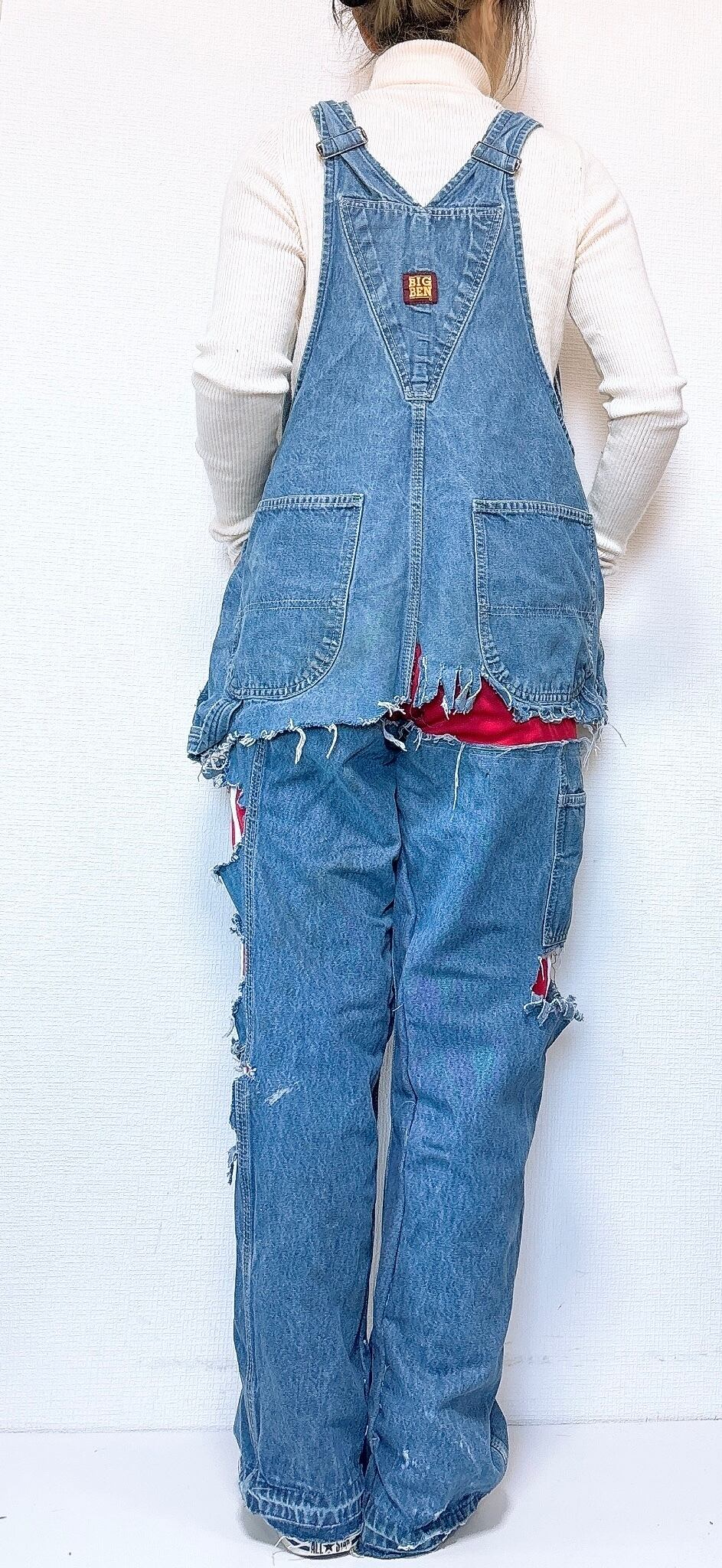 オーバーオールの時、アウターを着ていてもお手洗いが楽なセットアップ。