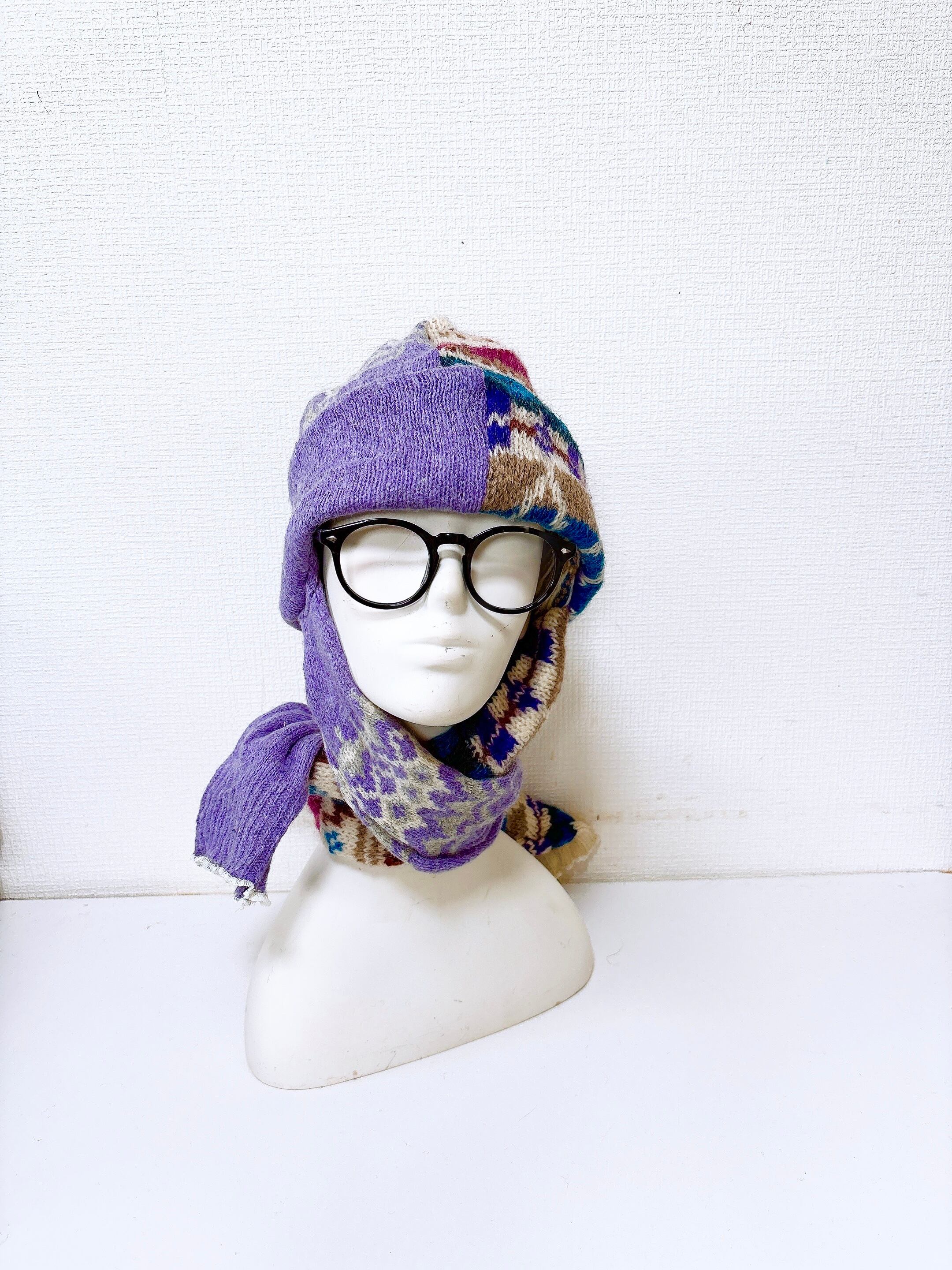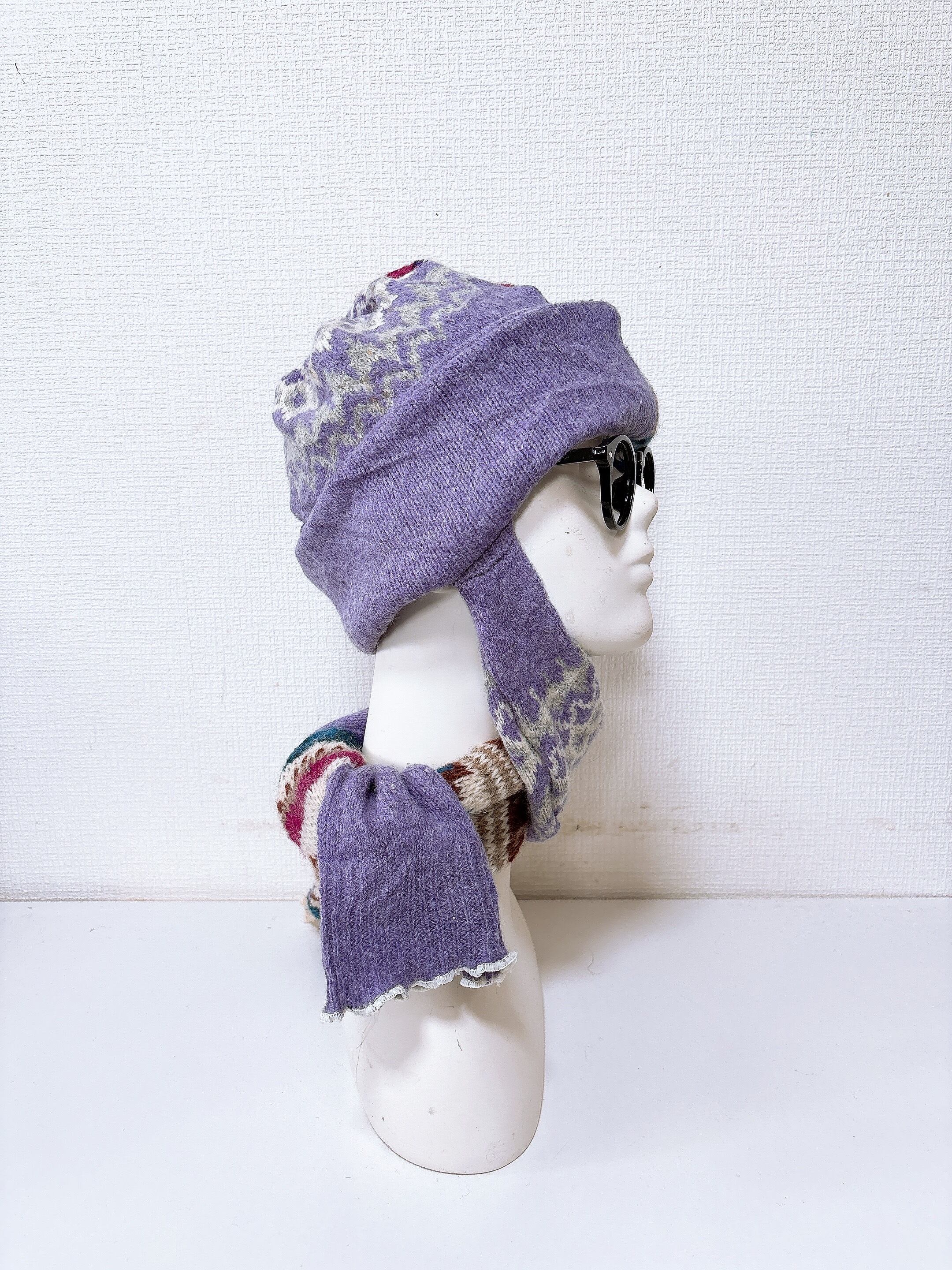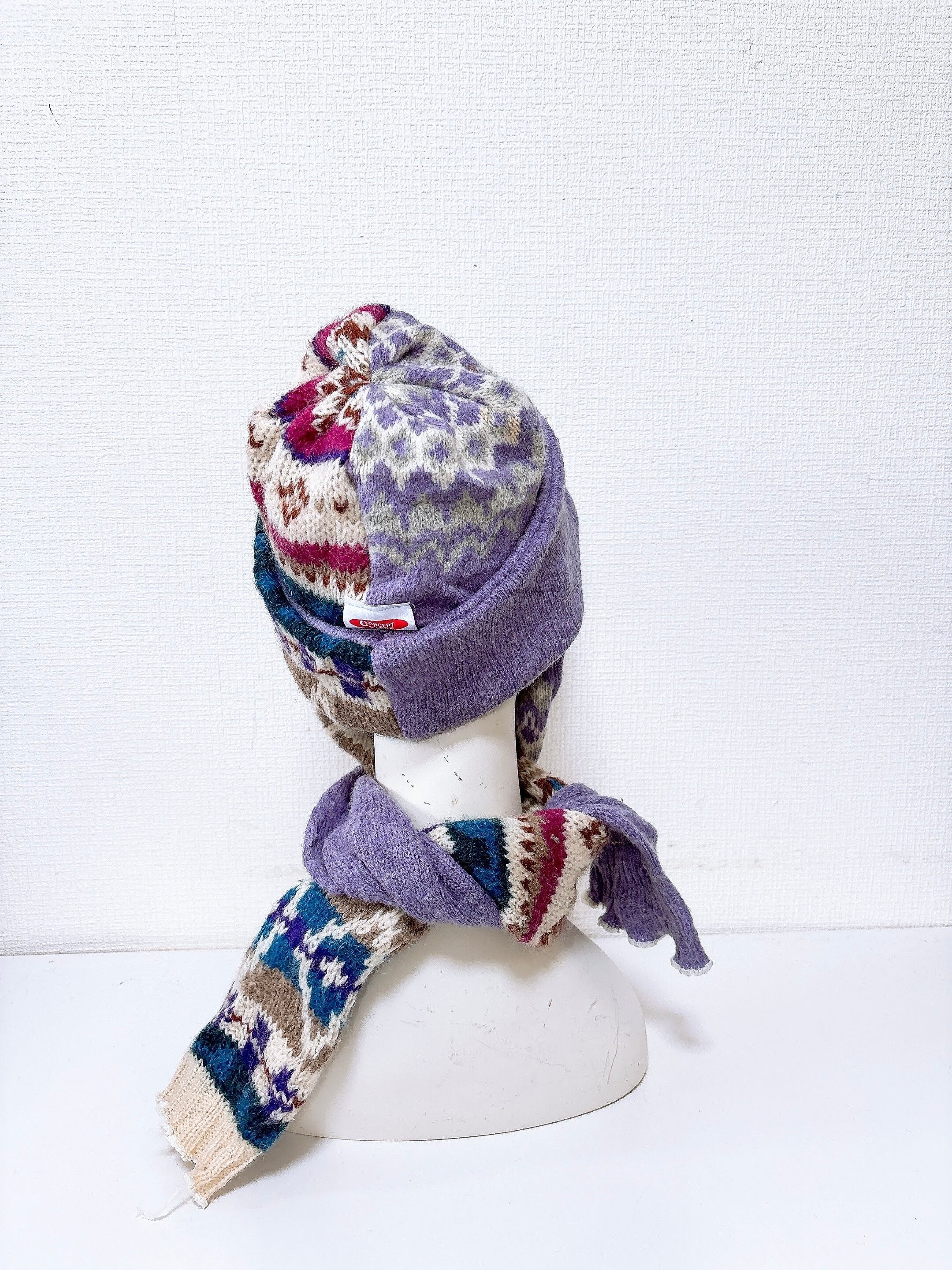 マフラー付きニット帽です。