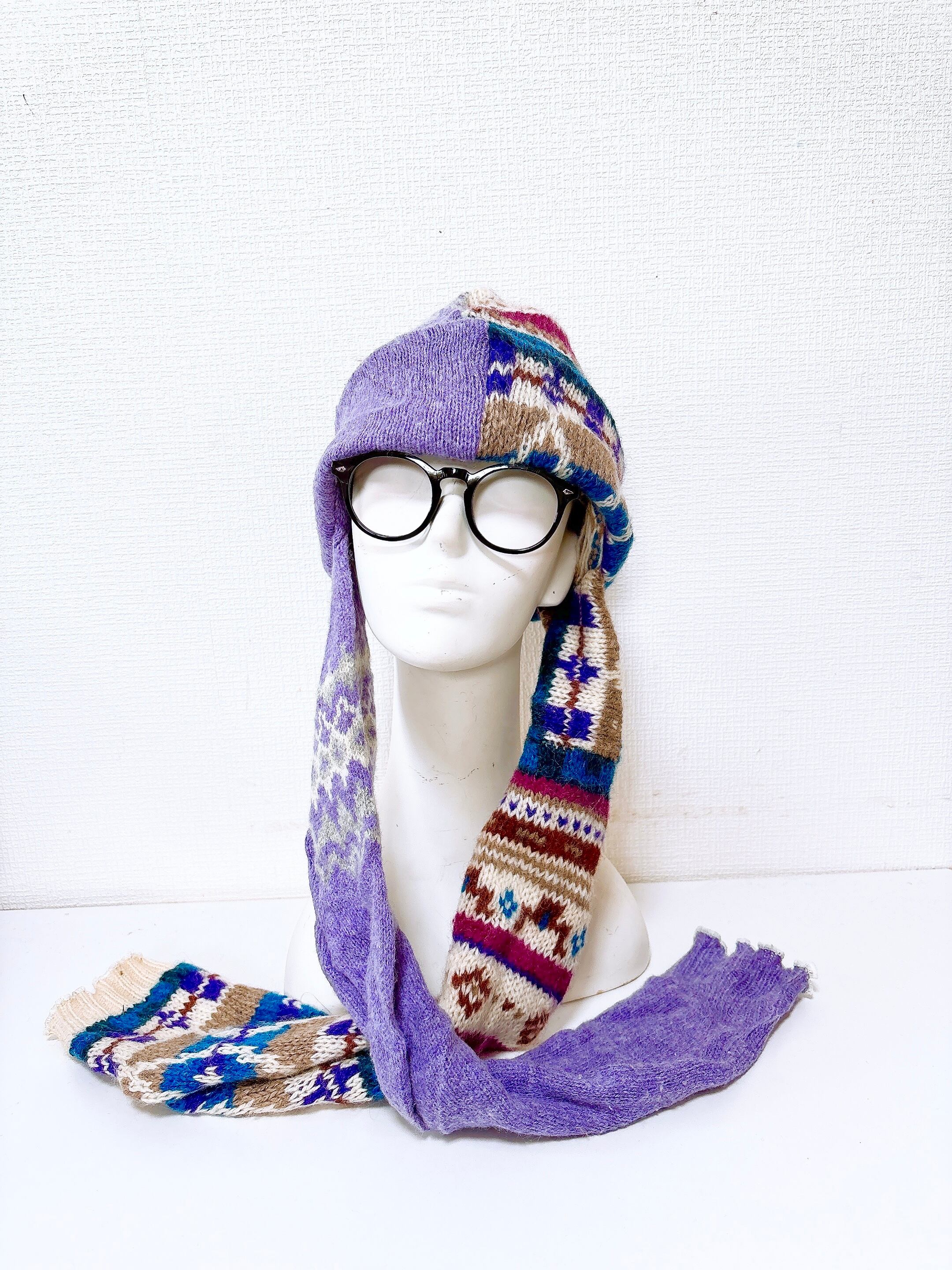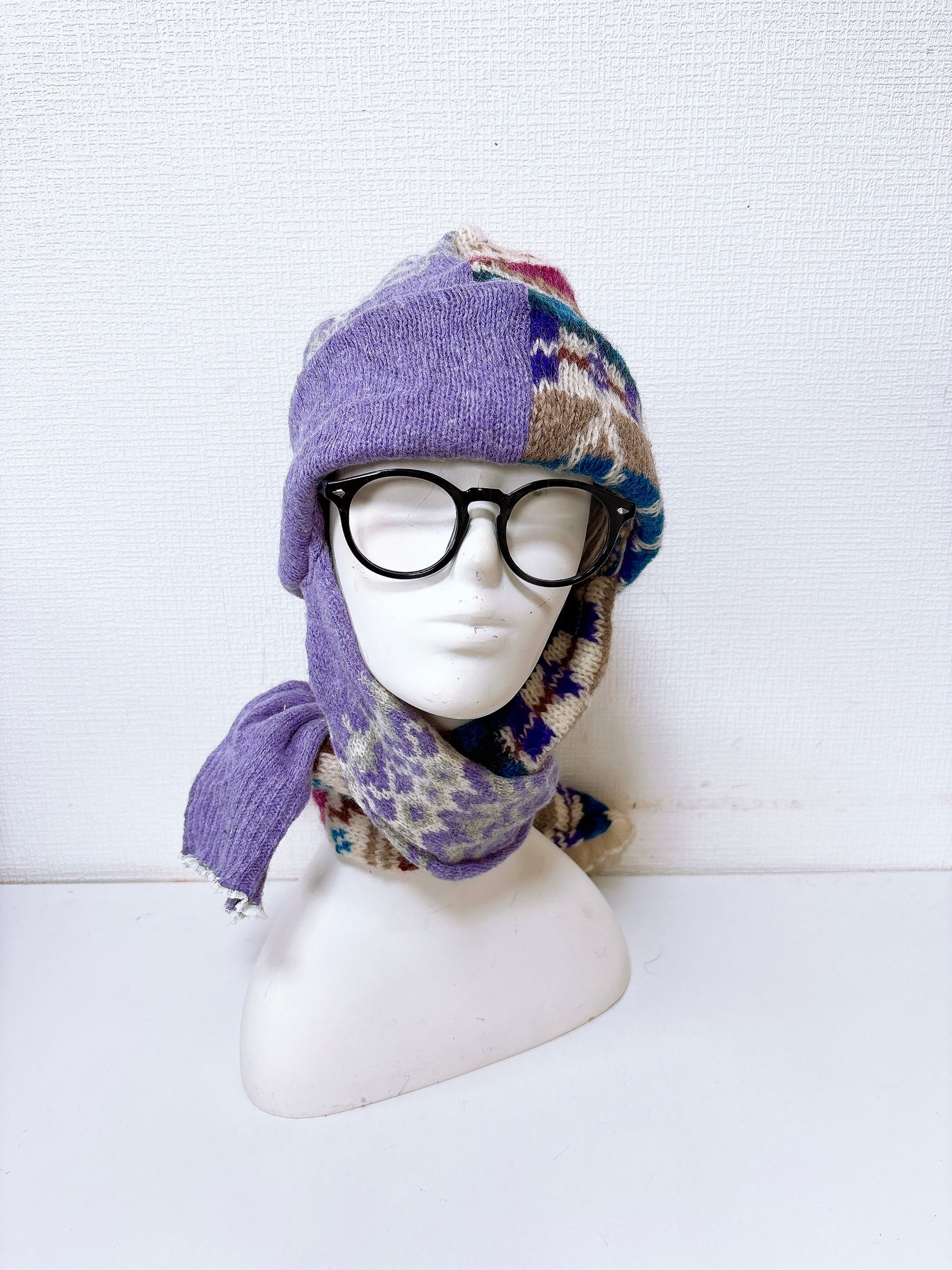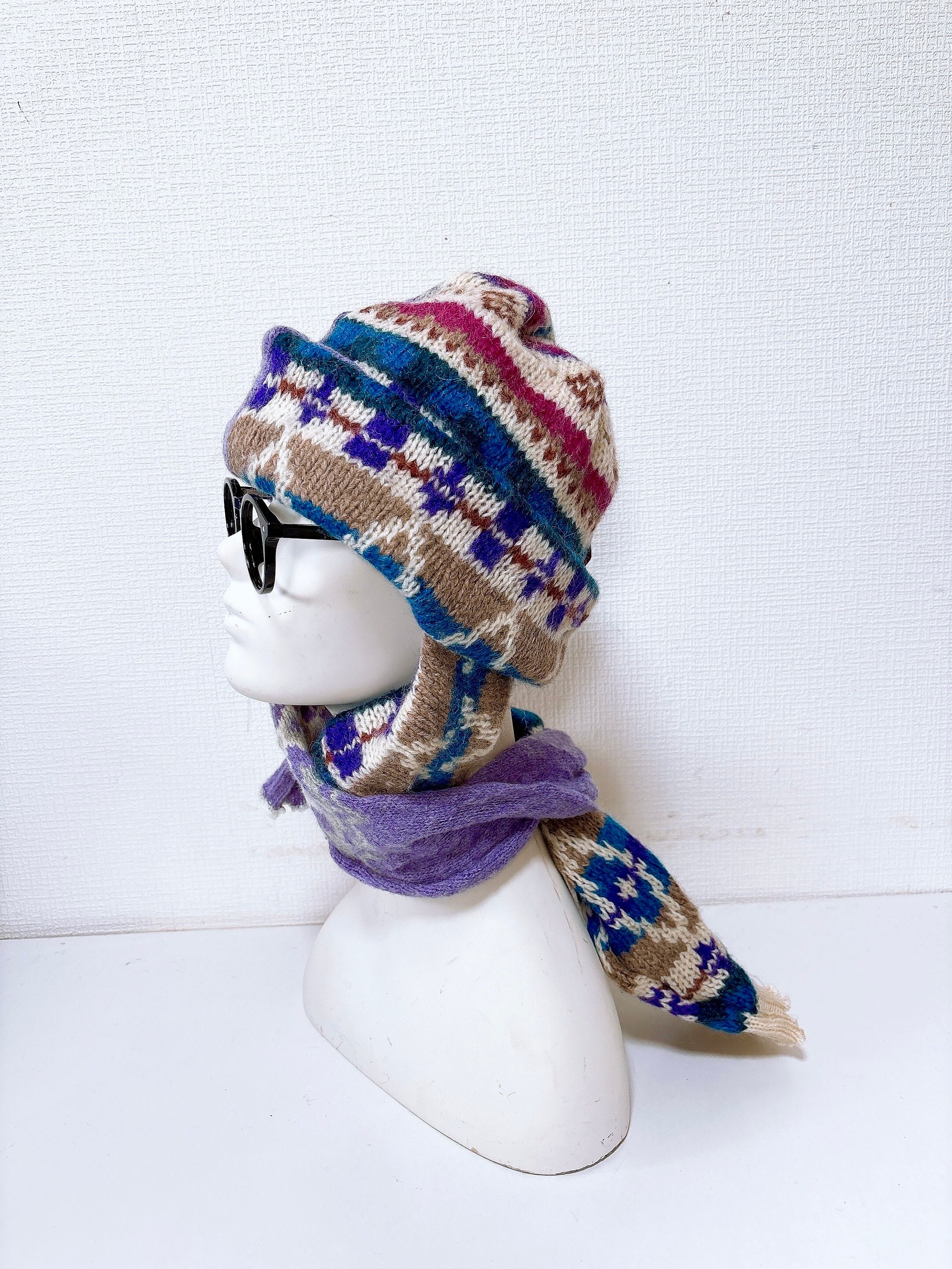 マフラー付きニット帽です。