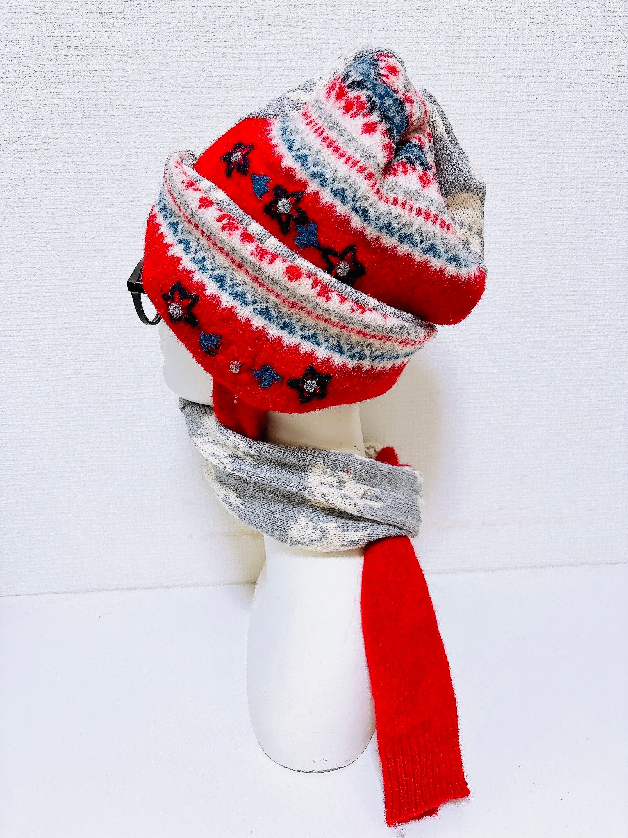 beanie with scarf 羊と花