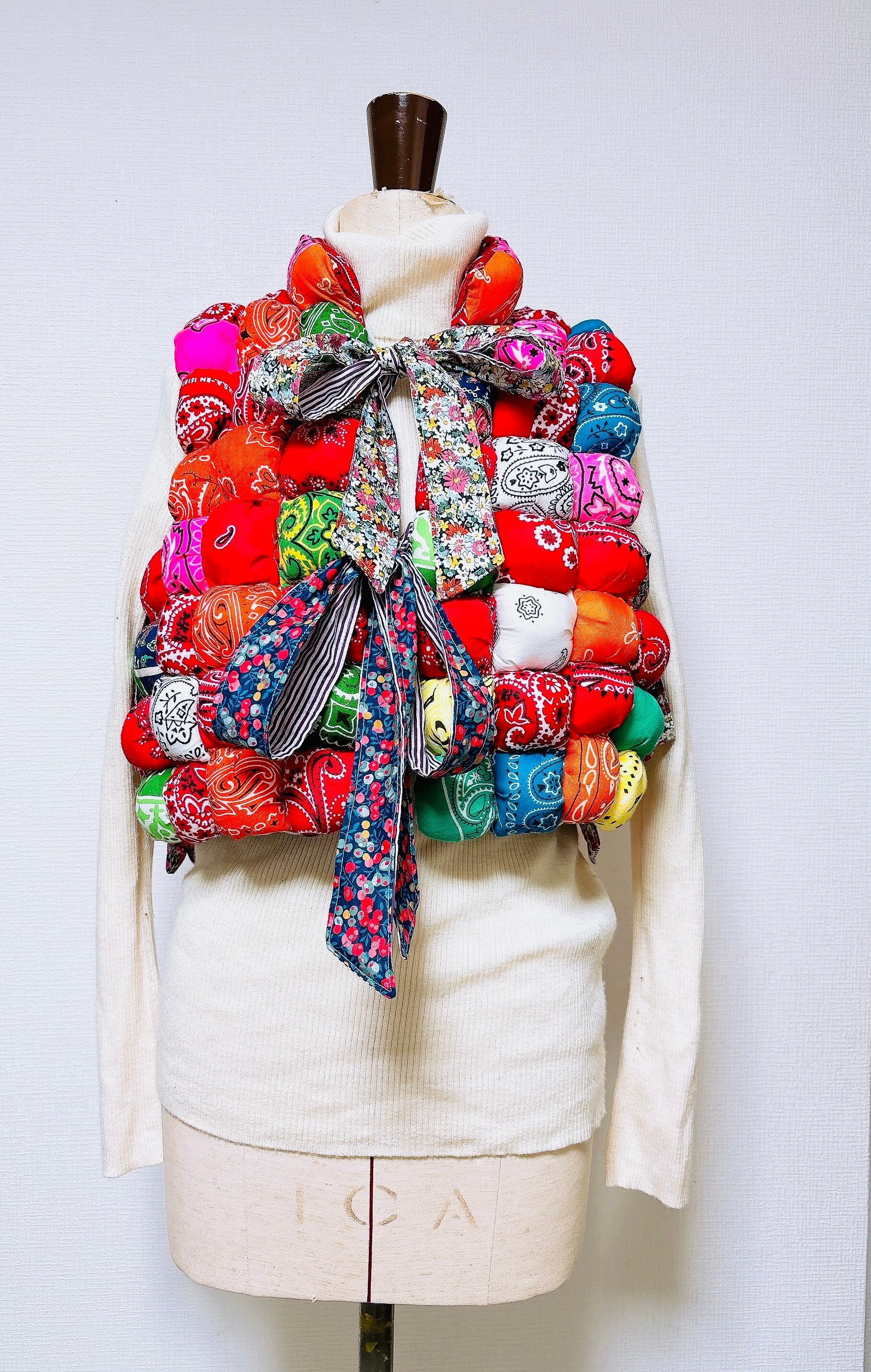 ヴィンテージバンダナ中綿バブルベスト