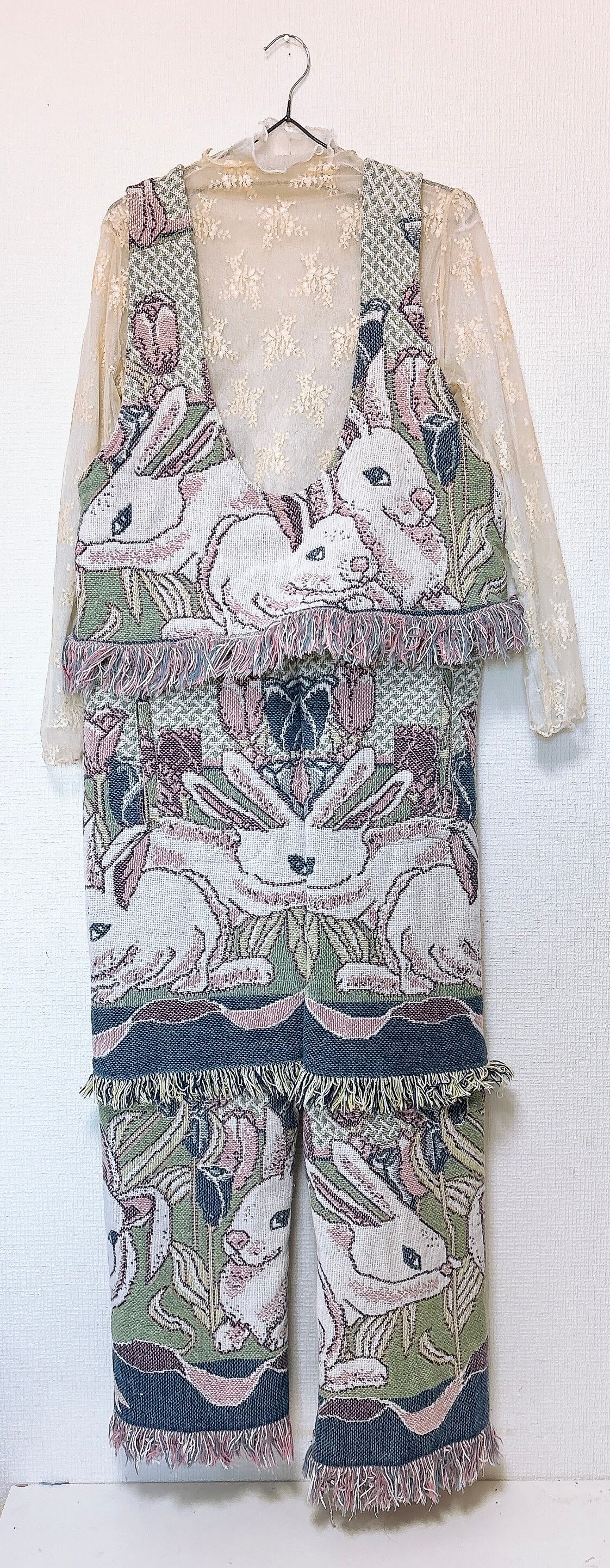 vintage rug overalls Bunny gathering